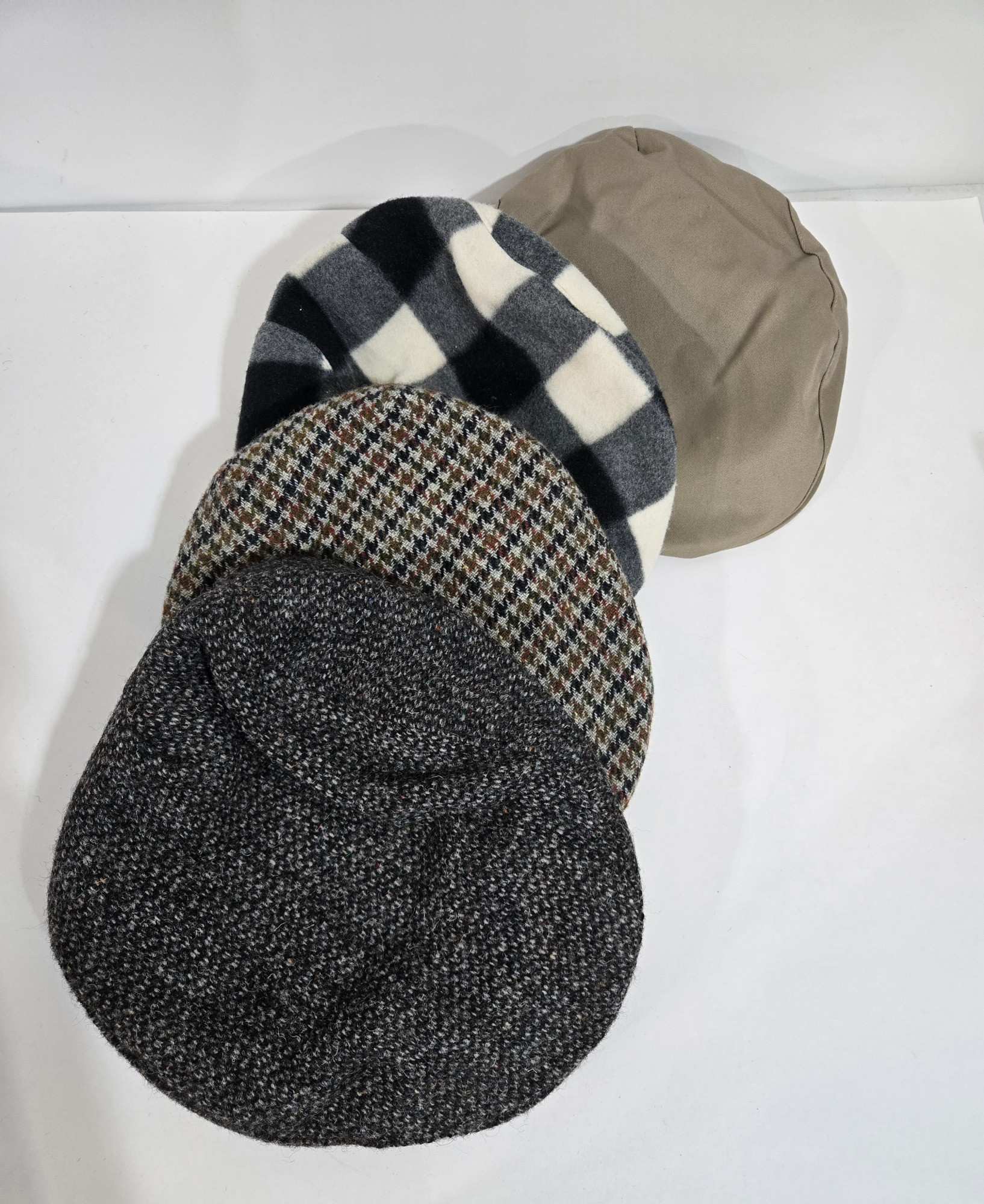 This is a collection of stylish vintage and modern flat caps, including brands such as Eddie Bauer and Harrison Tweed. Each cap features classic materials like wool, tweed, and plaid fabric, offering a timeless look. Details: Includes a mix of classic and contemporary designs Various materials including wool, tweed, and cotton blends Some caps feature satin or quilted lining for comfort Authentic vintage pieces with unique craftsmanship
