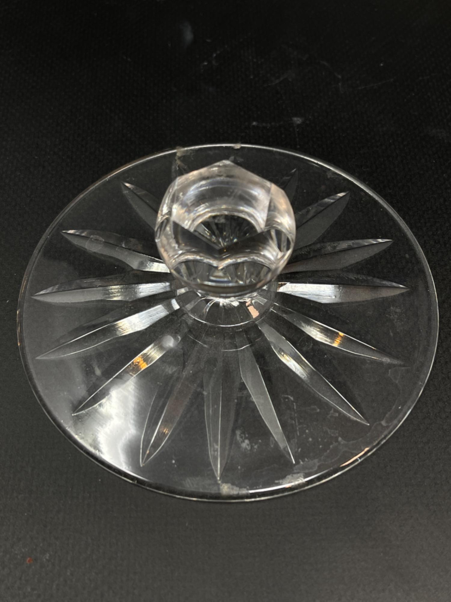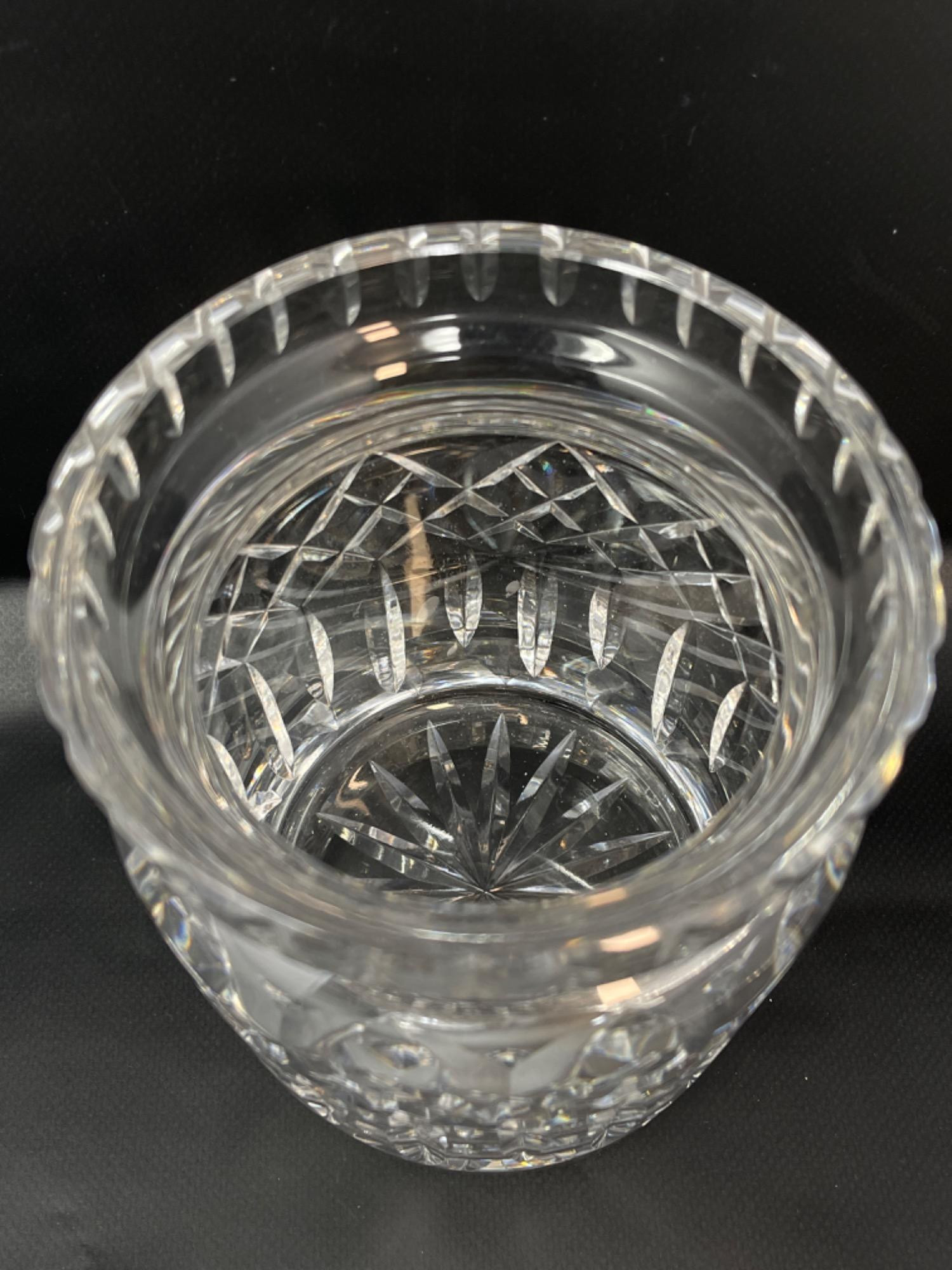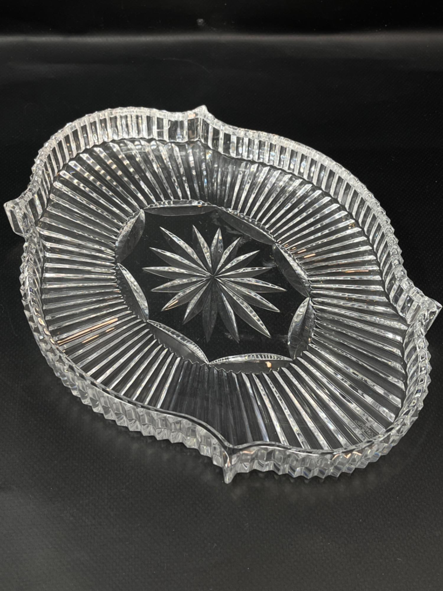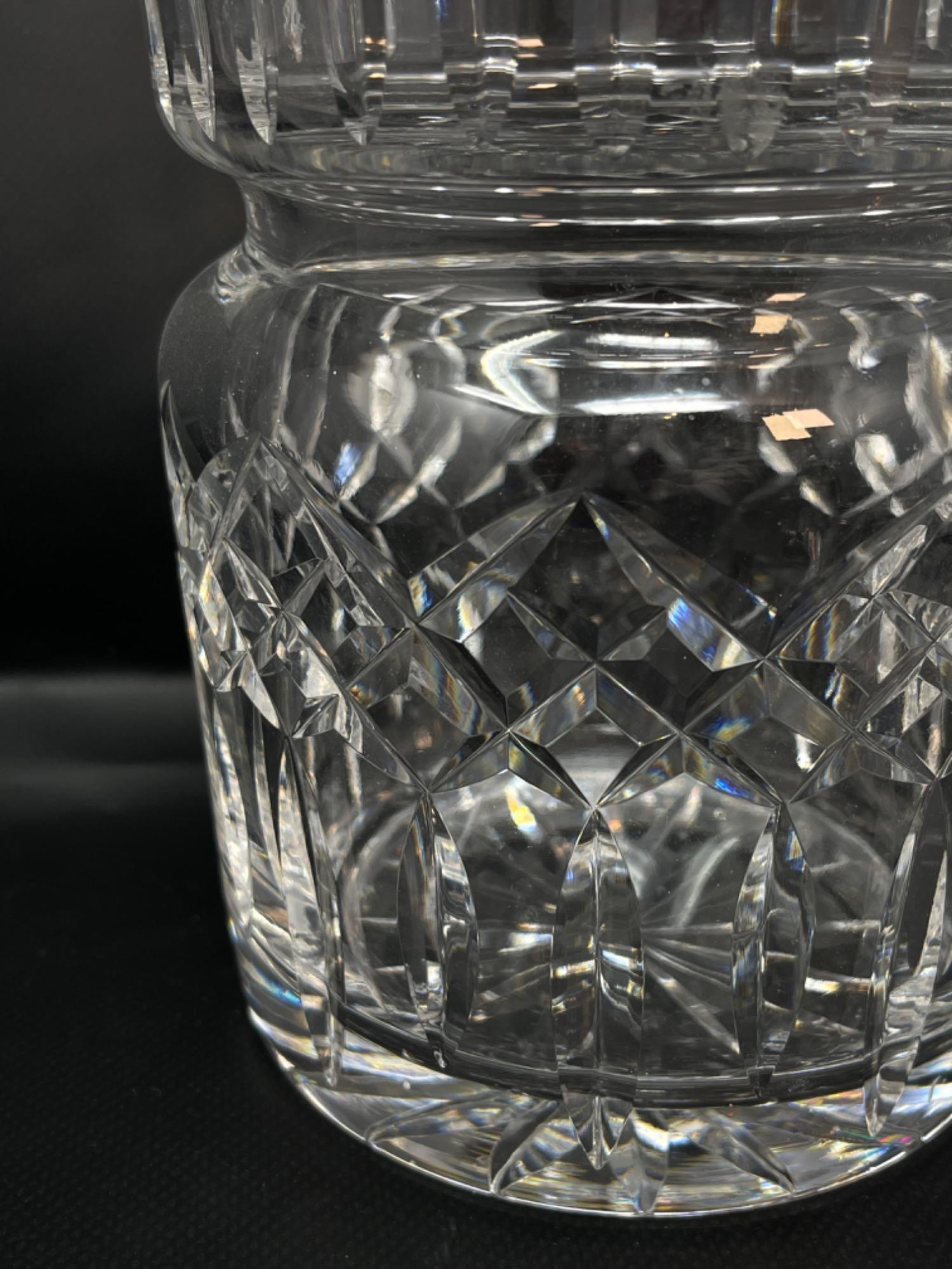 Waterford Crystal Biscuit Barrel & Vanity Tray – Elegant Cut Crystal Set Enhance your home with the refined elegance of this stunning Waterford Crystal Biscuit Barrel and Vanity Tray set. Crafted with precision, both pieces feature intricate cut patterns that capture and reflect light beautifully, showcasing the timeless quality of Waterford crystal. Biscuit Barrel: This lidded jar boasts a classic diamond and wedge-cut design, complete with a faceted finial, making it perfect for storing biscuits, cookies, or small treats. Its luxurious craftsmanship makes it a stunning centerpiece for any table or display. Vanity Tray: With a starburst center and fluted edges, this tray is perfect for holding jewelry, perfumes, or decorative items, adding a touch of sophistication to any vanity or dresser. Condition: Both pieces are in excellent condition, with no visible chips, cracks, or damage, ensuring their brilliance and beauty remain intact. Biscuit Barrel: 6.5” H Vanity Tray: 10” W