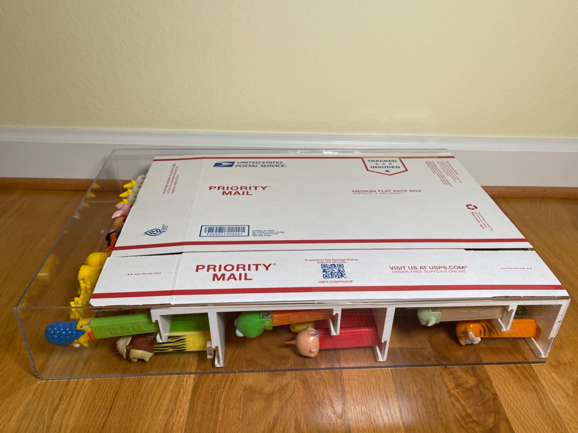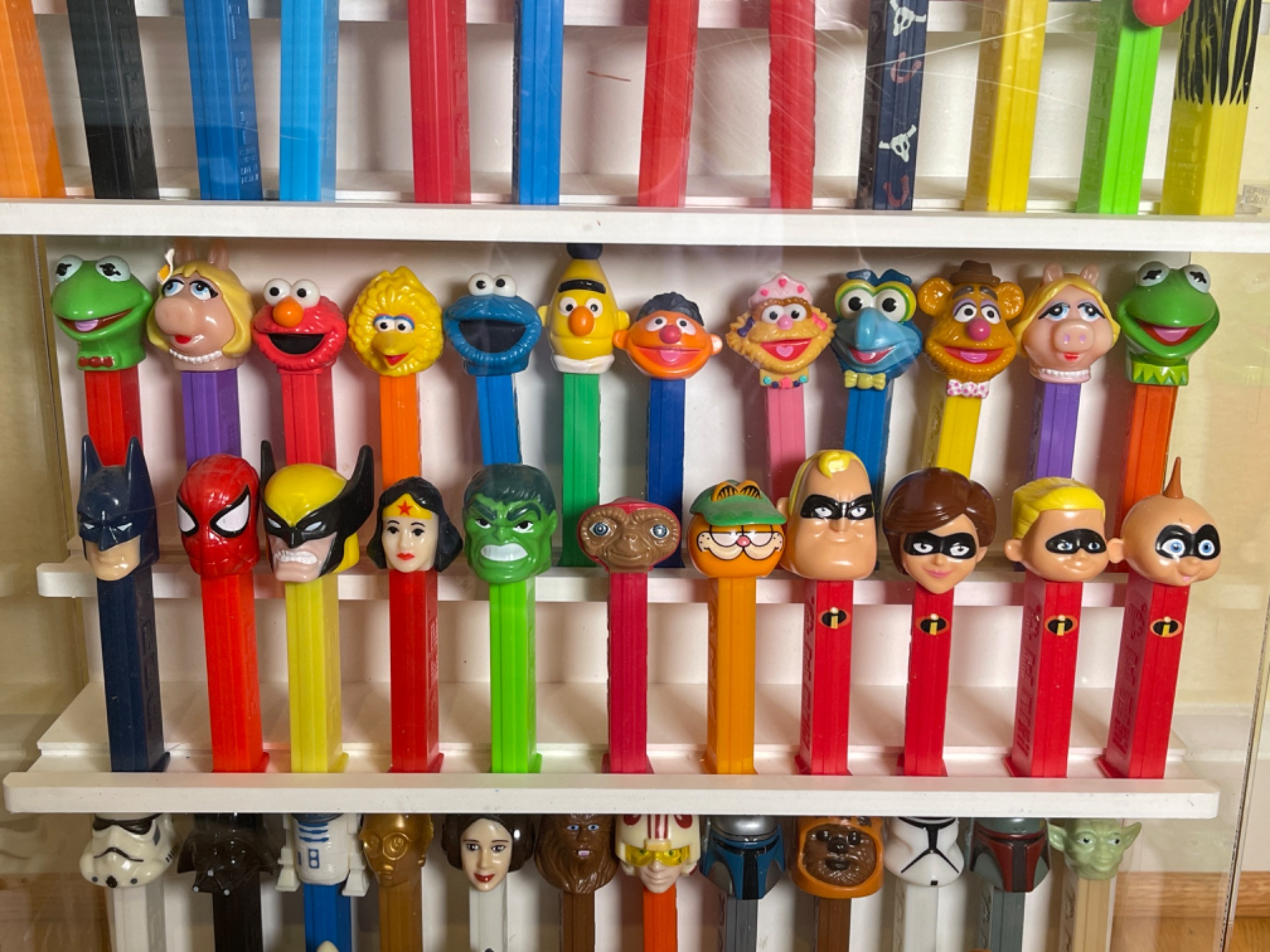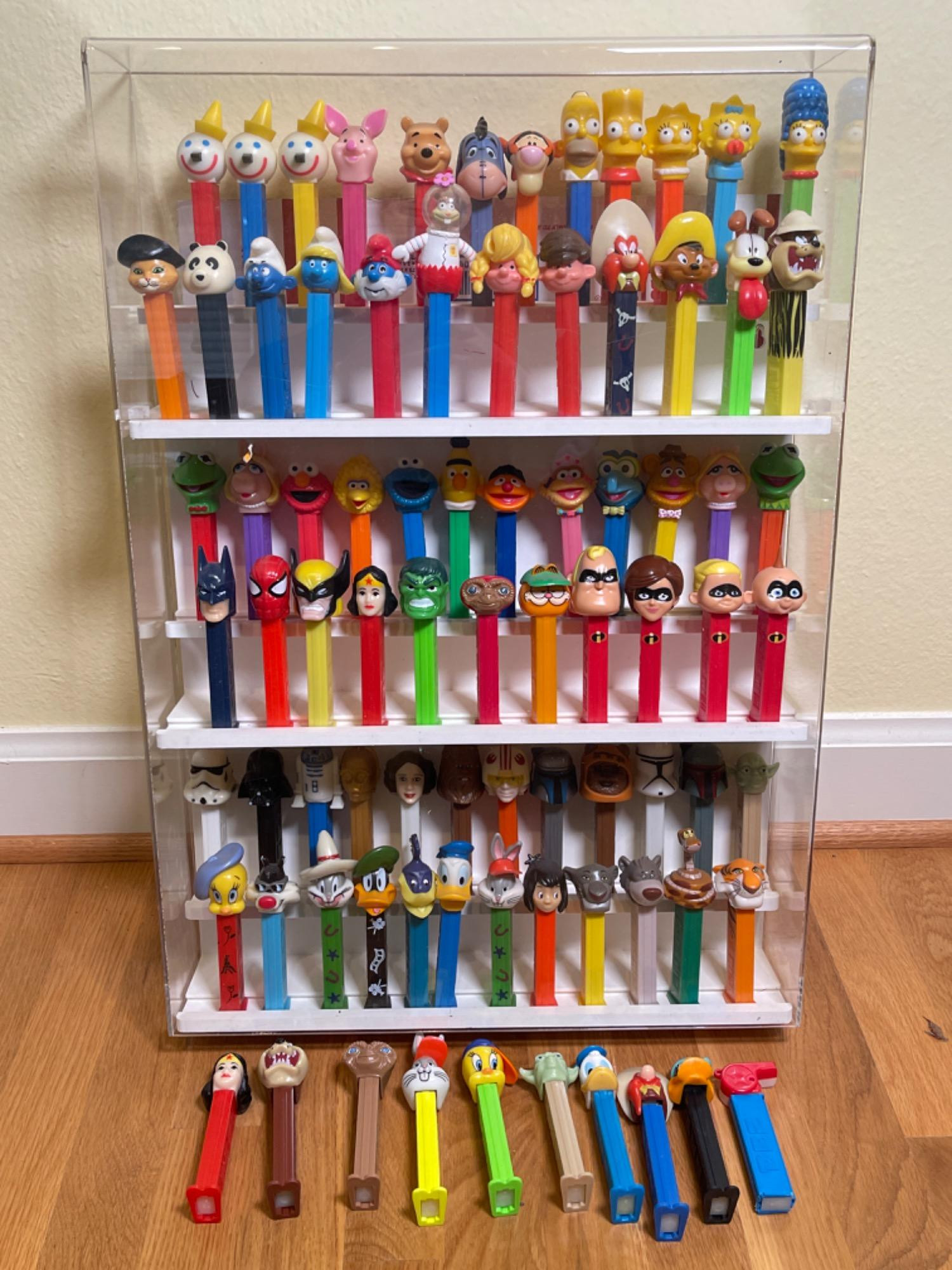 Large PEZ Dispenser Collection with Hand Made Display Case