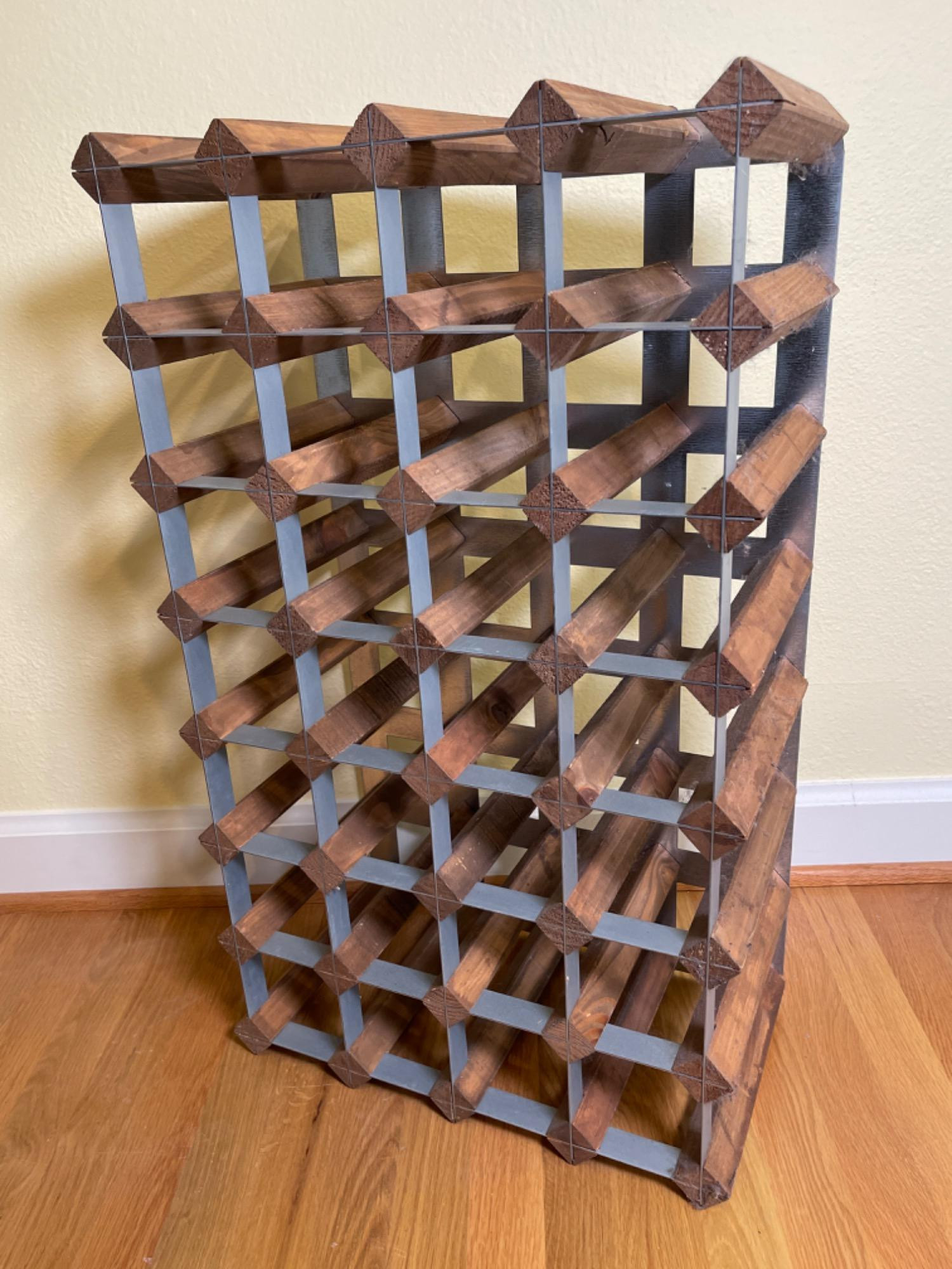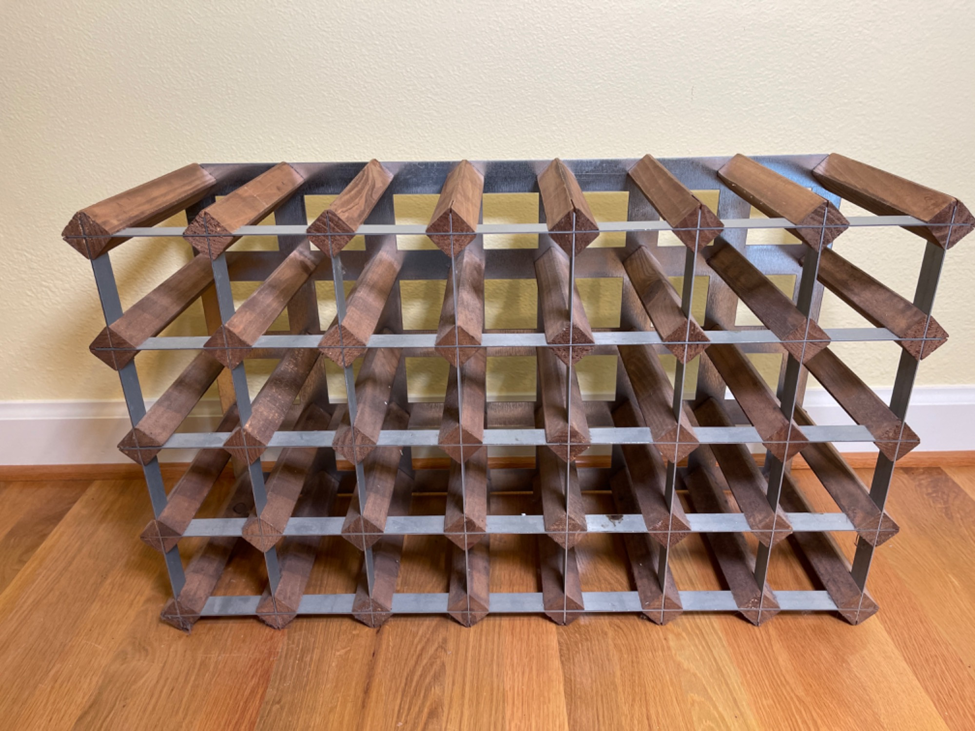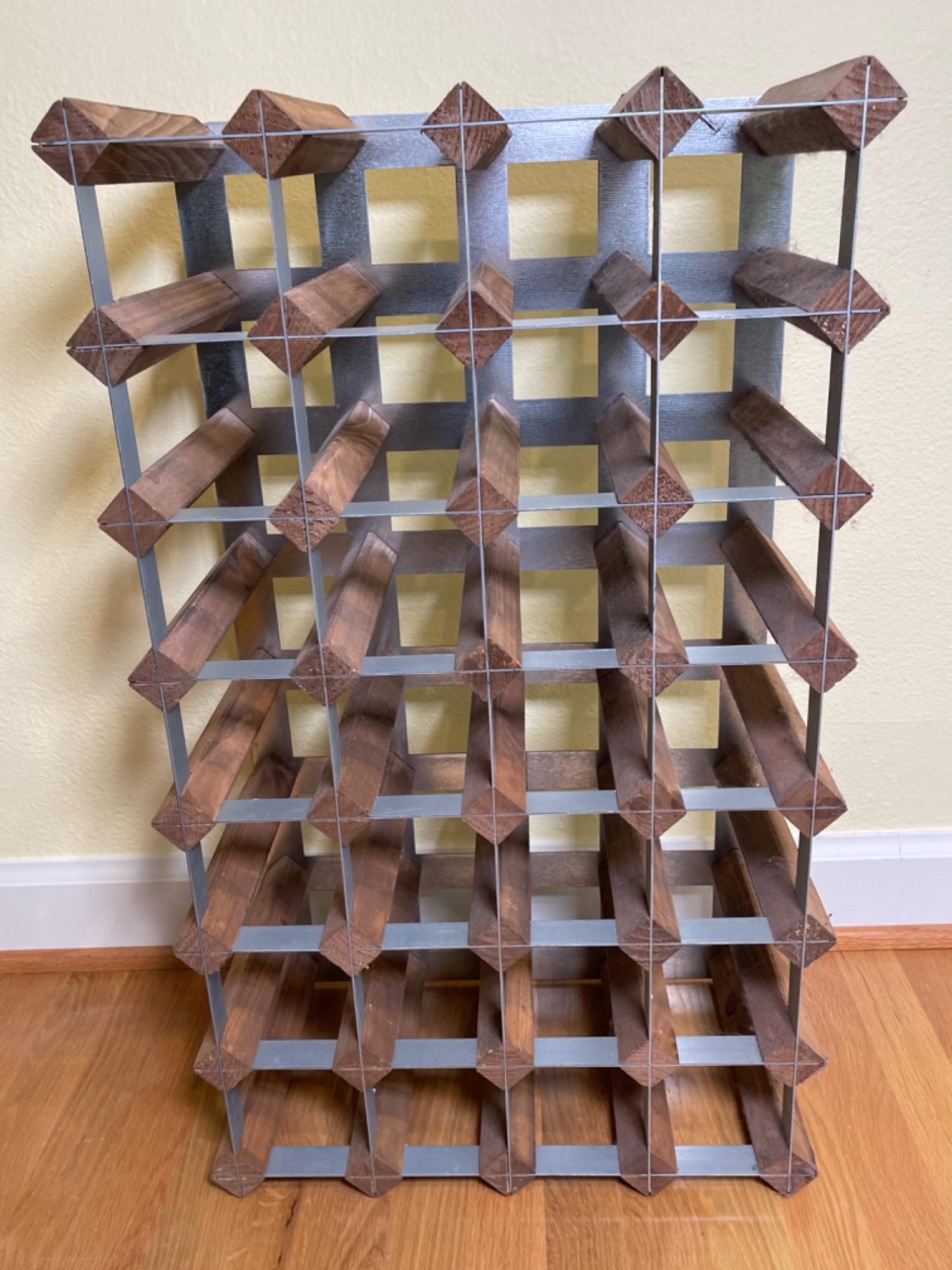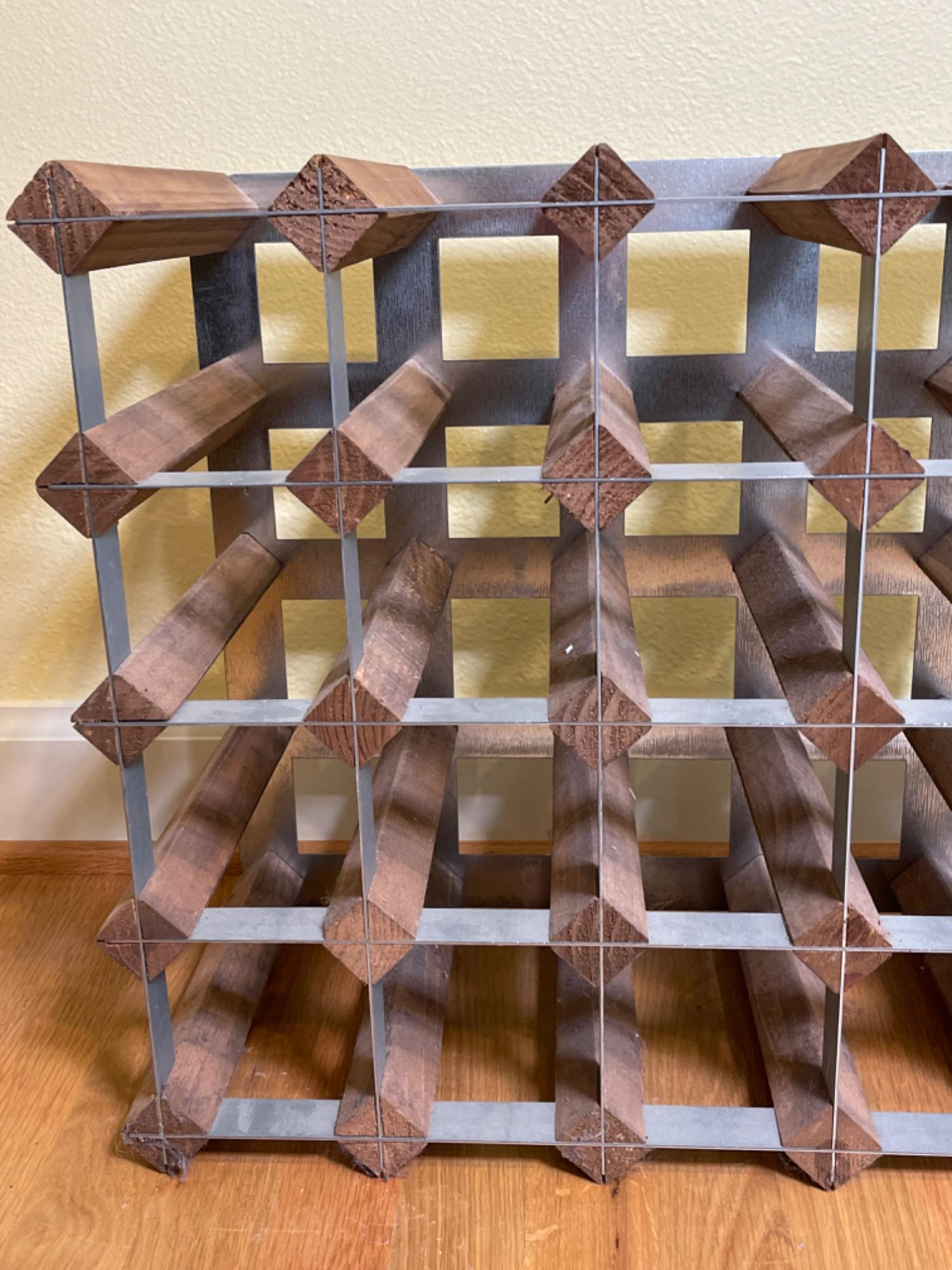 World Market Metal & Wood Wine Rack – Industrial & Rustic Design This metal and wood wine rack from World Market is the perfect blend of industrial and rustic charm, offering both functionality and stylish appeal. Designed to hold multiple bottles, this freestanding rack features a sturdy metal frame with warm-toned wooden supports, creating a modern yet timeless look that complements a variety of décor styles. With its open, geometric design, this rack allows for easy access while securely storing your wine collection. The combination of raw metal and natural wood adds a warm, vintage-inspired feel, making it an ideal piece for kitchens, dining rooms, or home bars. Condition: Sturdy. Likely needs cleaning. Minor scuffs and stains from use. Please see photos.