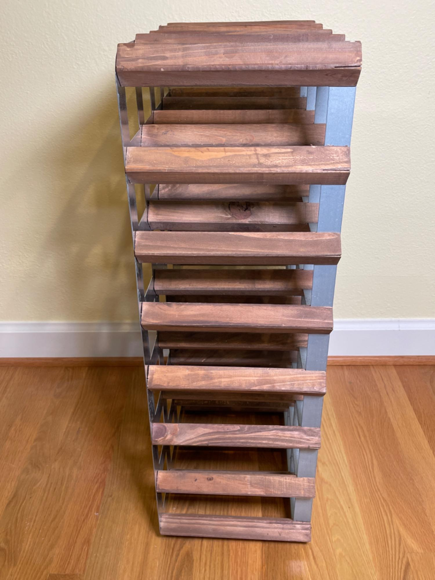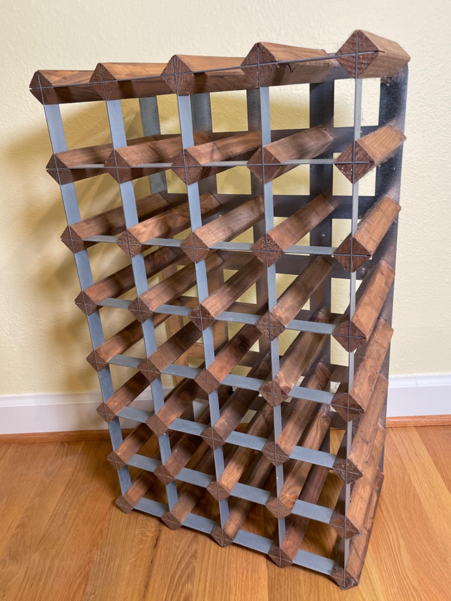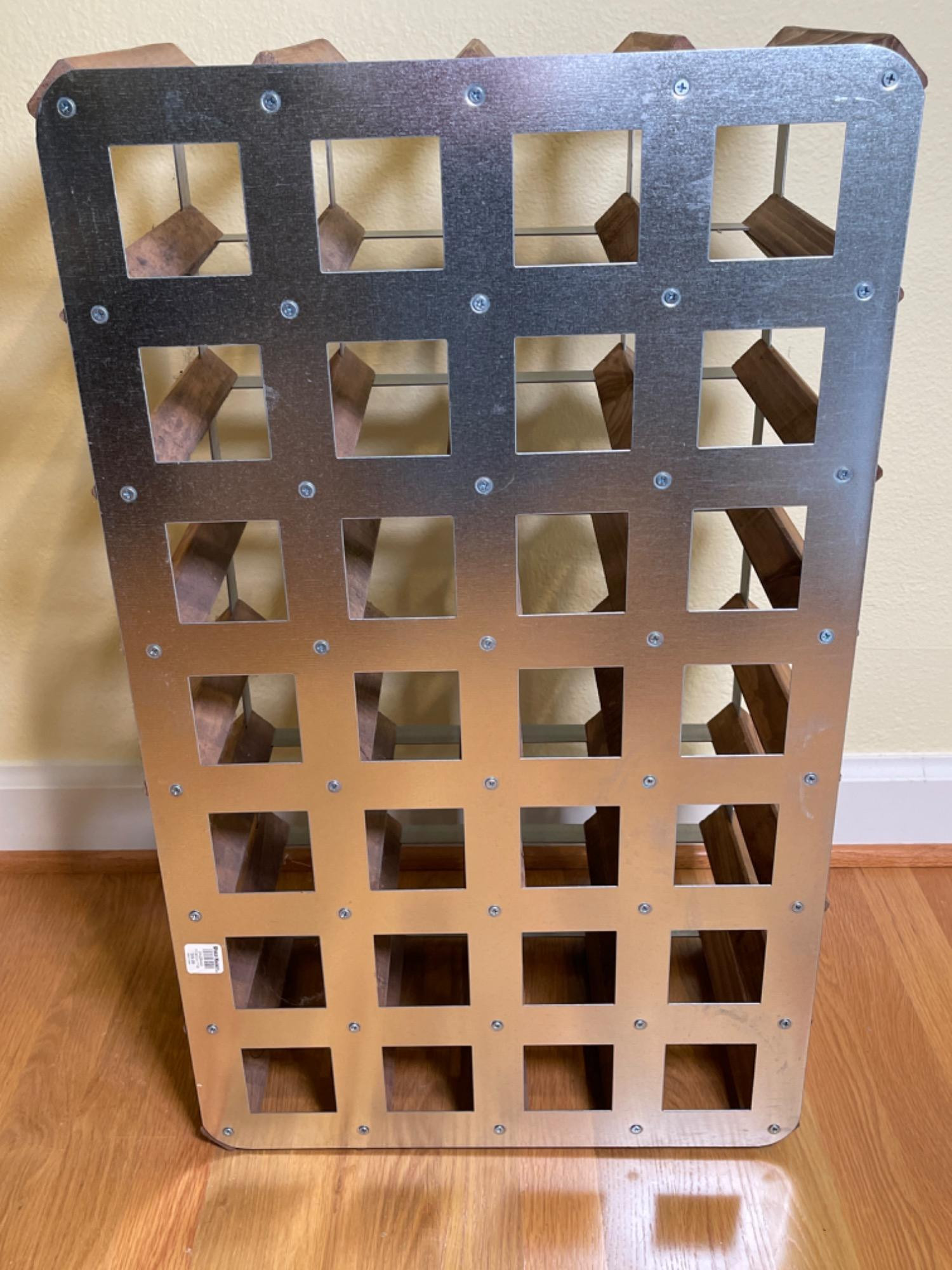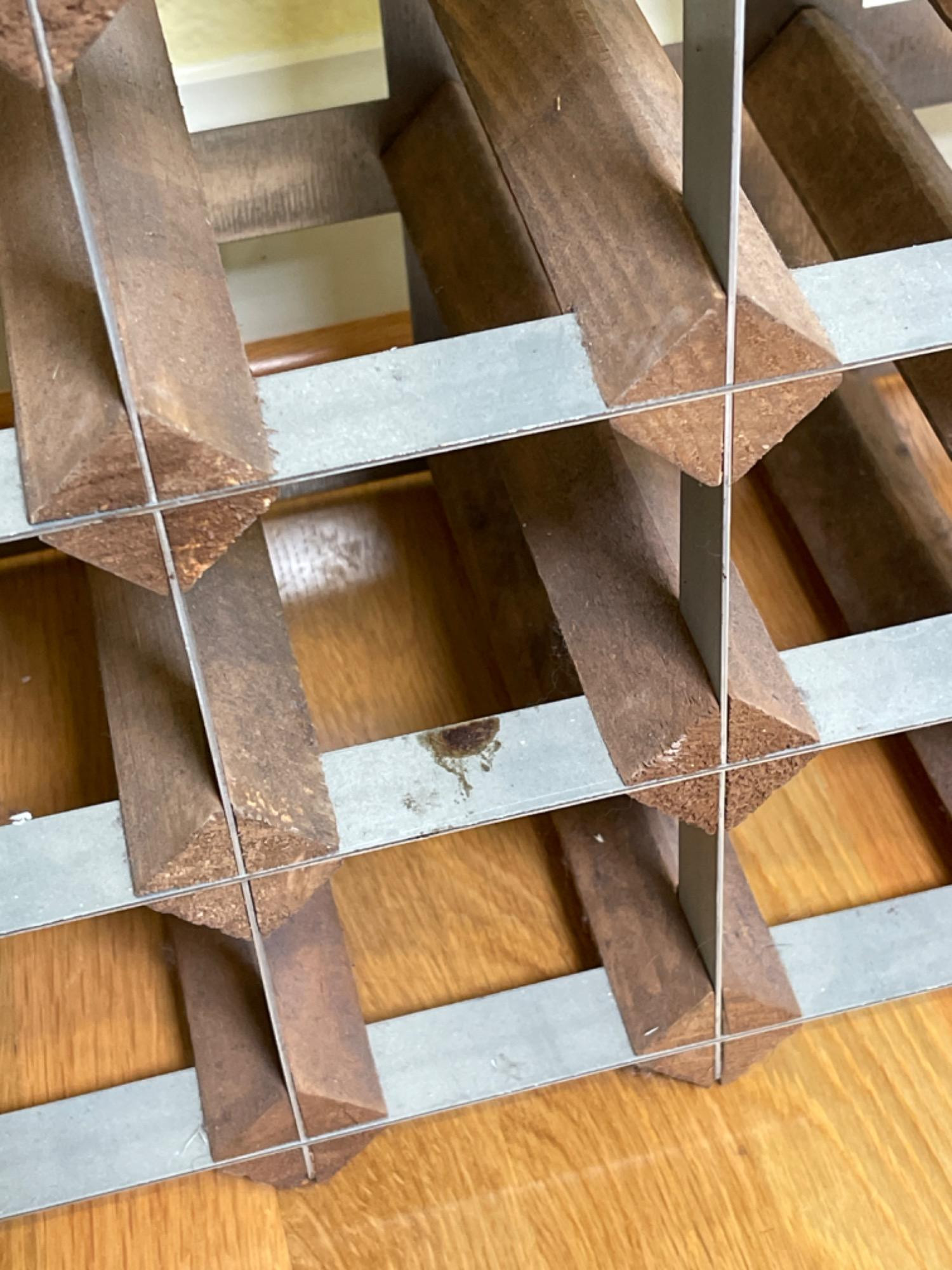 World Market Metal & Wood Wine Rack – Industrial & Rustic Design This metal and wood wine rack from World Market is the perfect blend of industrial and rustic charm, offering both functionality and stylish appeal. Designed to hold multiple bottles, this freestanding rack features a sturdy metal frame with warm-toned wooden supports, creating a modern yet timeless look that complements a variety of décor styles. With its open, geometric design, this rack allows for easy access while securely storing your wine collection. The combination of raw metal and natural wood adds a warm, vintage-inspired feel, making it an ideal piece for kitchens, dining rooms, or home bars. Condition: Sturdy. Likely needs cleaning. Minor scuffs and stains from use. Please see photos.