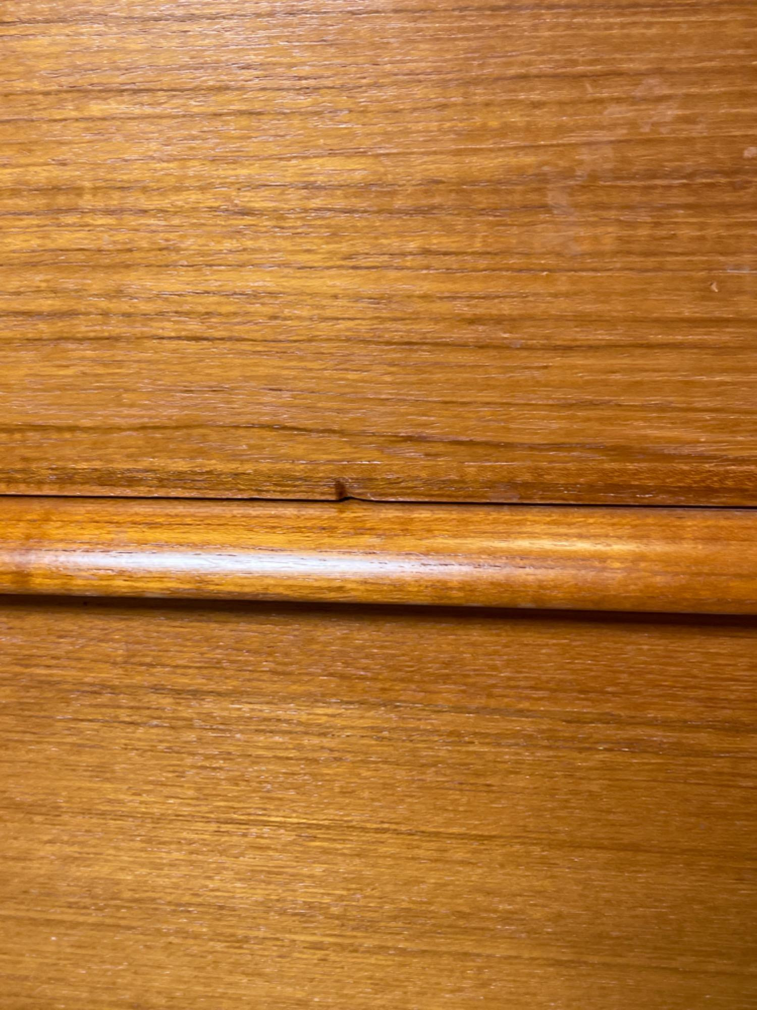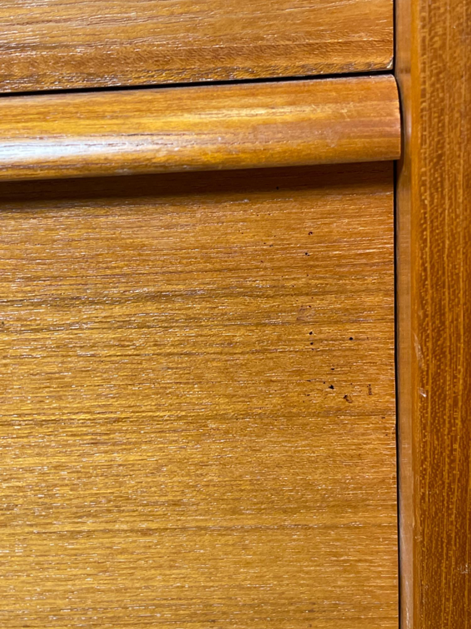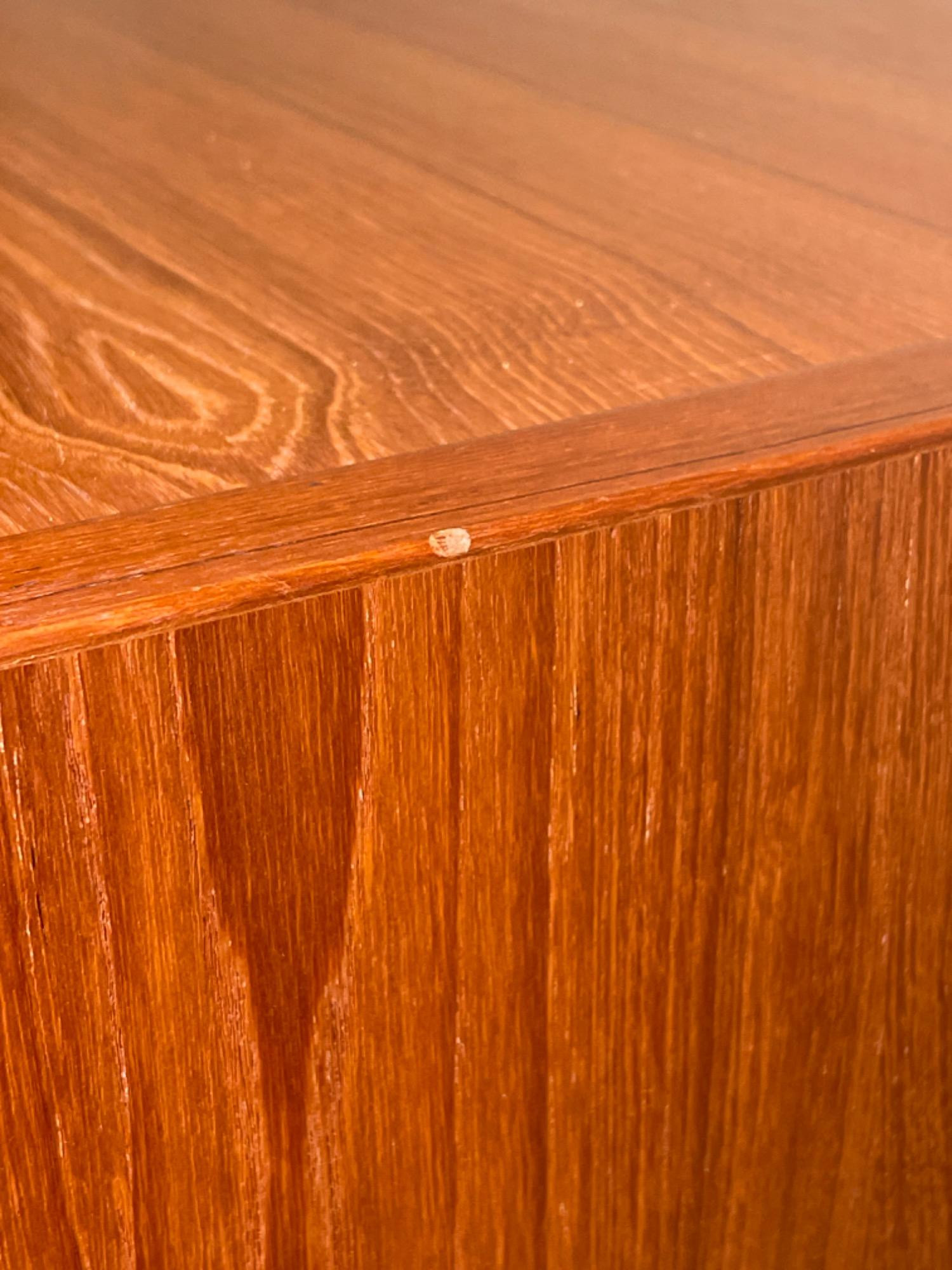 Vintage Teak Veneer 3-Drawer Dresser – Mid-Century Modern Style This vintage teak-veneered dresser embodies the timeless elegance of mid-century modern design, featuring a sleek, minimalist silhouette with integrated drawer pulls. With three spacious drawers, it provides both style and functionality, making it a perfect fit for bedrooms, living spaces, or offices. Condition: