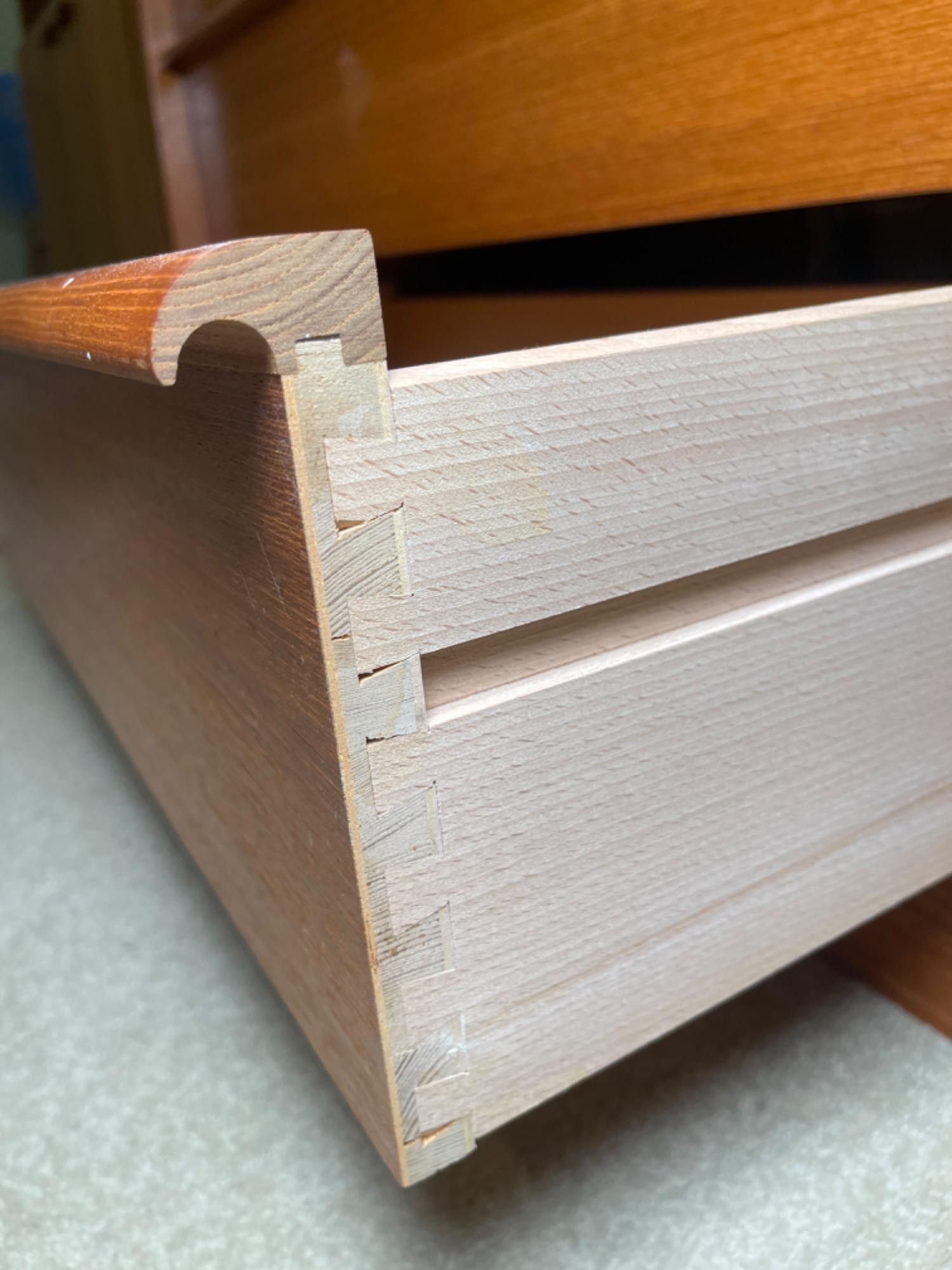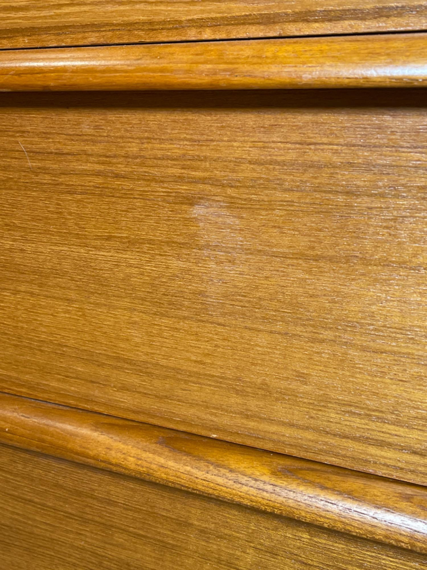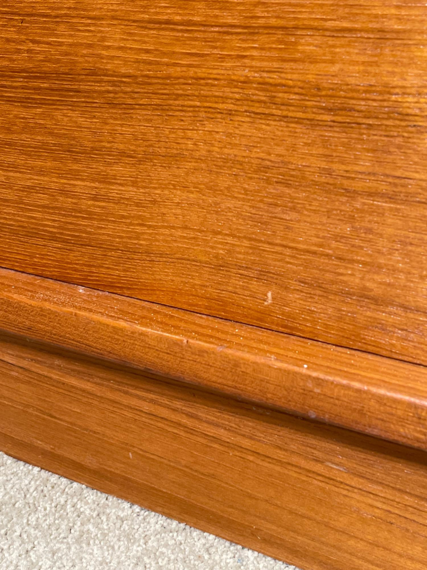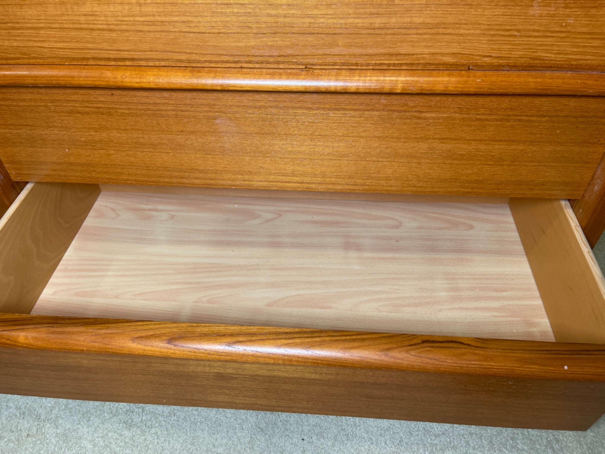 Vintage Teak Veneer 3-Drawer Dresser – Mid-Century Modern Style This vintage teak-veneered dresser embodies the timeless elegance of mid-century modern design, featuring a sleek, minimalist silhouette with integrated drawer pulls. With three spacious drawers, it provides both style and functionality, making it a perfect fit for bedrooms, living spaces, or offices. Condition: