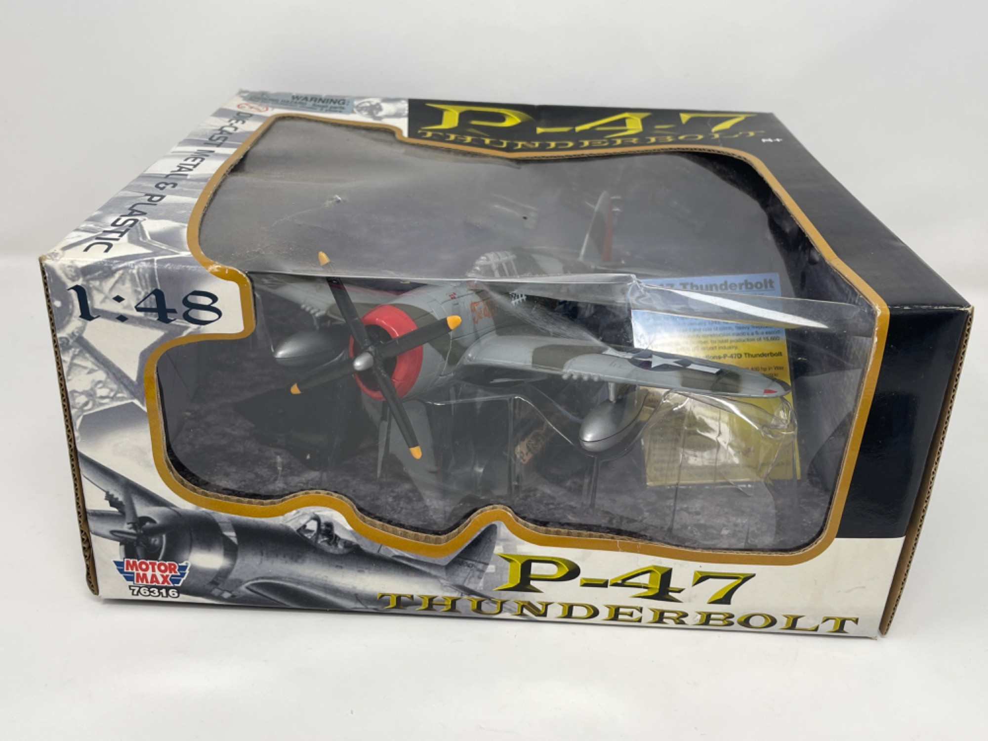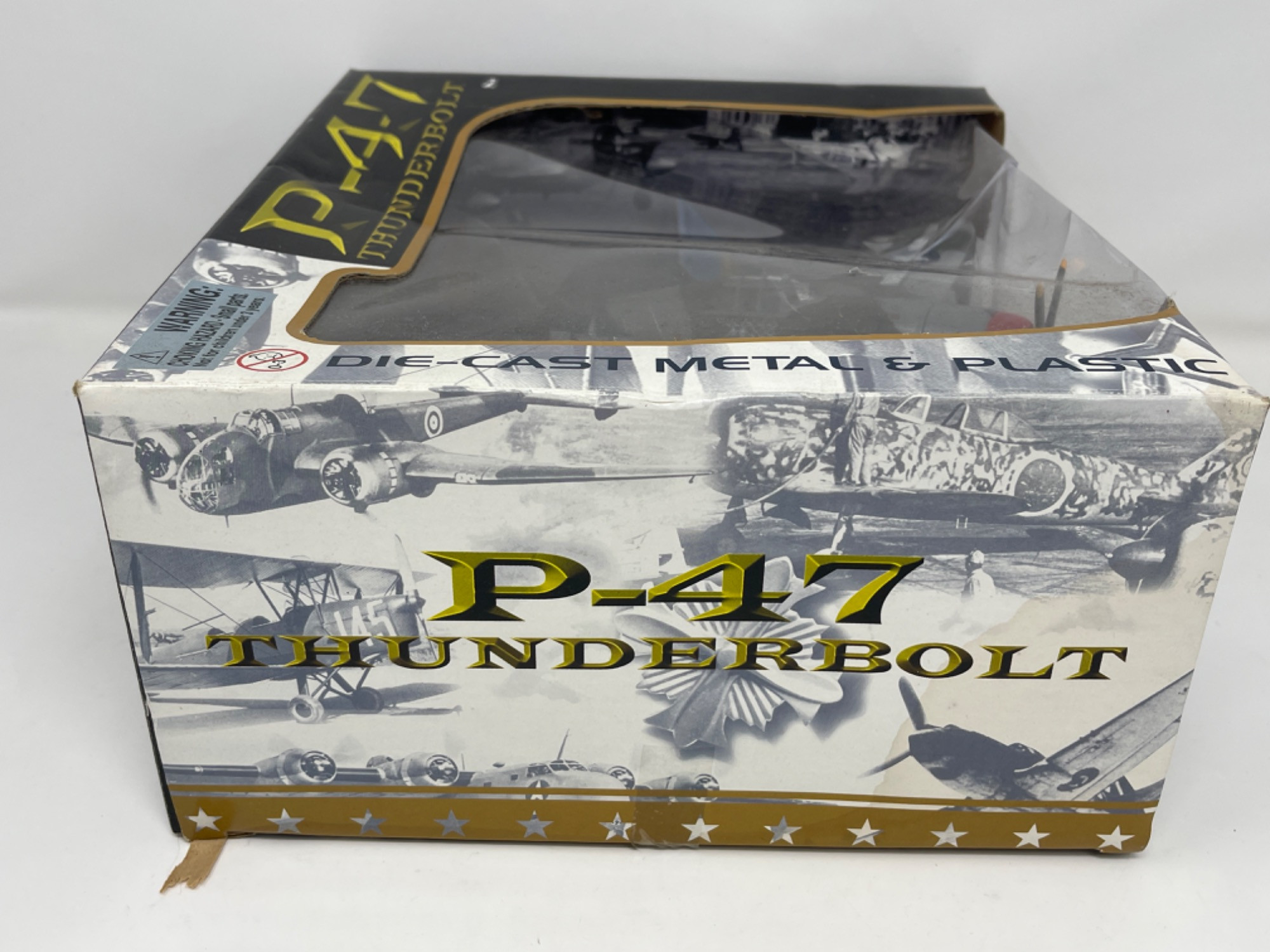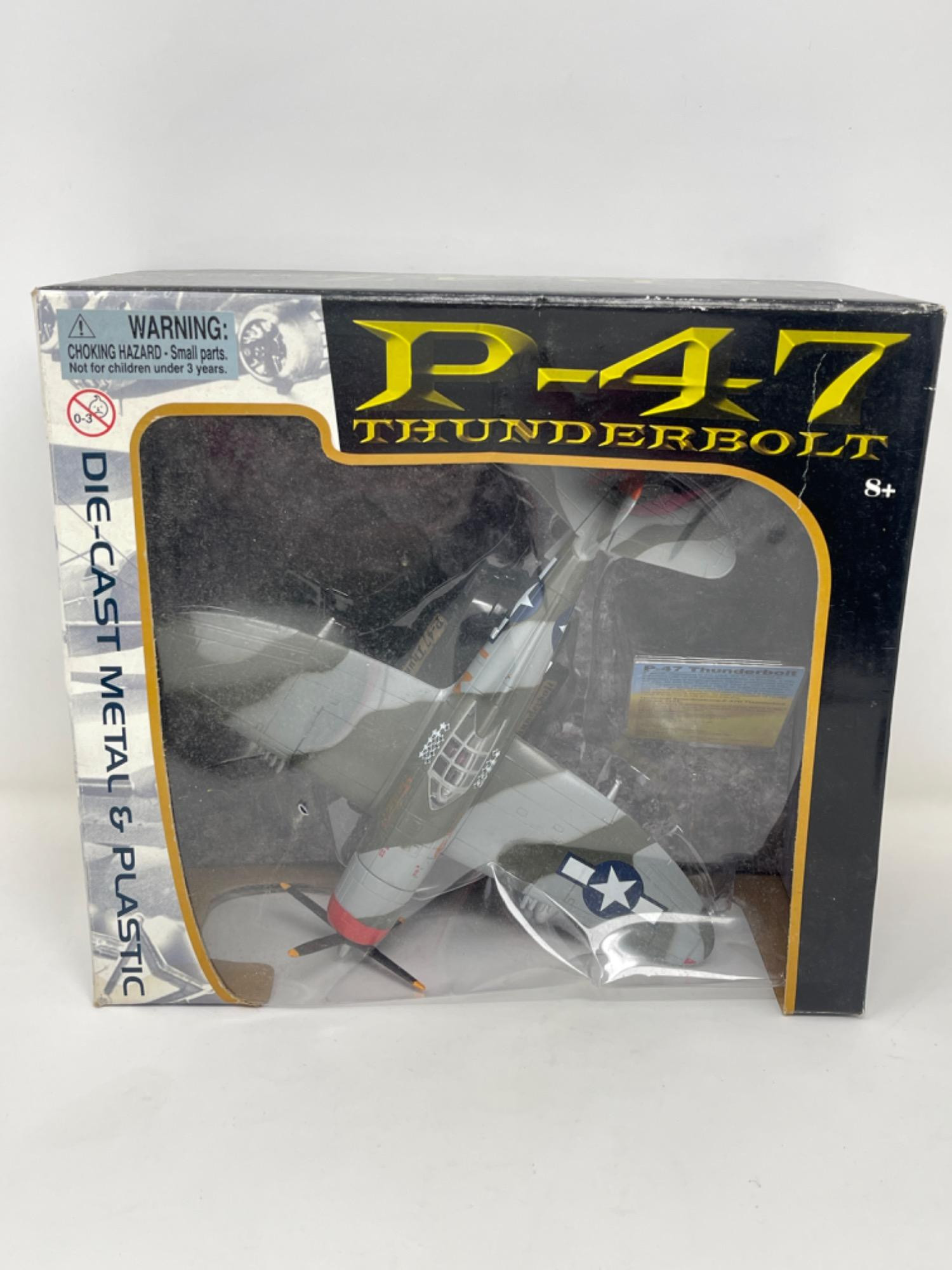 P-47 Thunderbolt Die-Cast Metal & Plastic Model – Unopened with Box Wear This P-47 Thunderbolt die-cast metal and plastic model is a must-have for aviation enthusiasts and collectors alike. Designed with intricate details and authentic markings, this model captures the power and history of the legendary WWII fighter aircraft. Condition: Box is 10” H