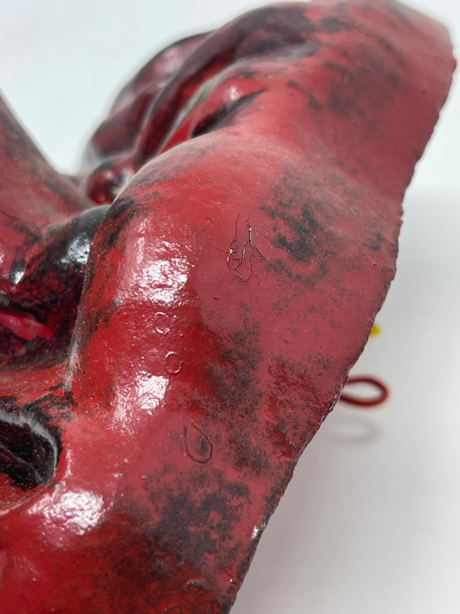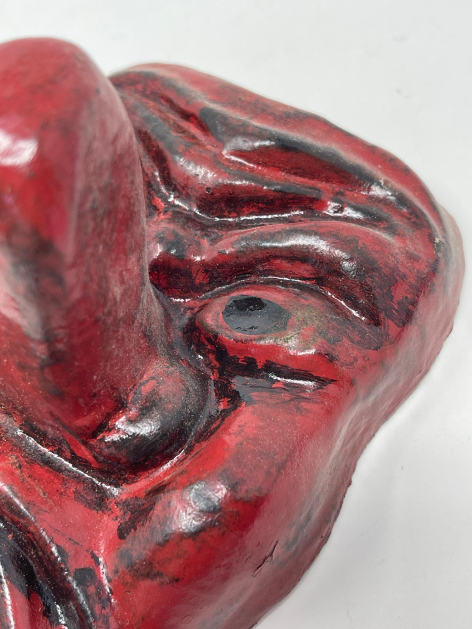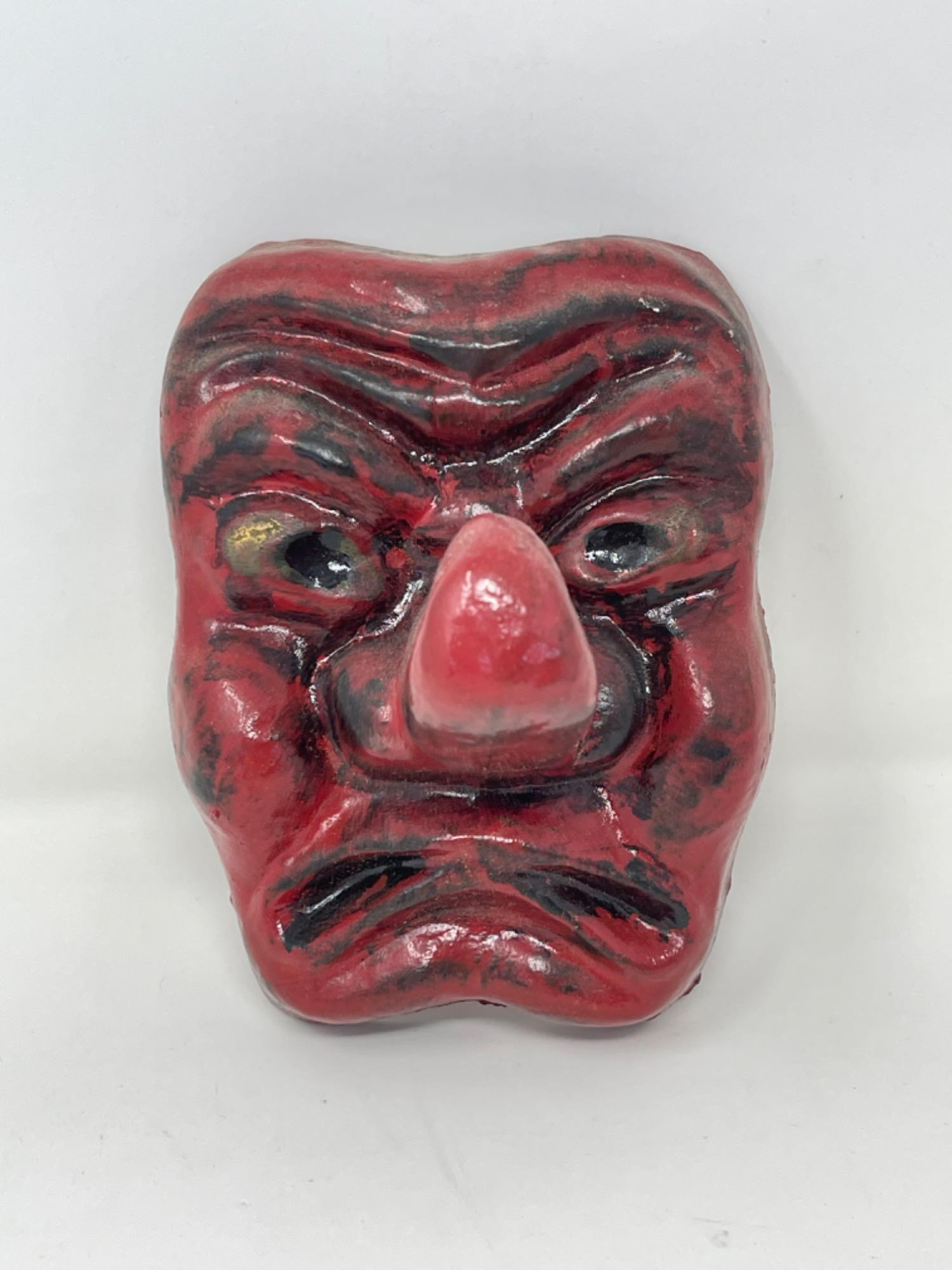 Handcrafted Papier-Mâché Tengu Wall Hanging Décor Add a bold and mythical touch to your space with this striking handcrafted papier-mâché Tengu mask wall hanging. Inspired by traditional Japanese folklore, this expressive red-faced figure embodies strength, mysticism, and legend. Condition: Very dusty