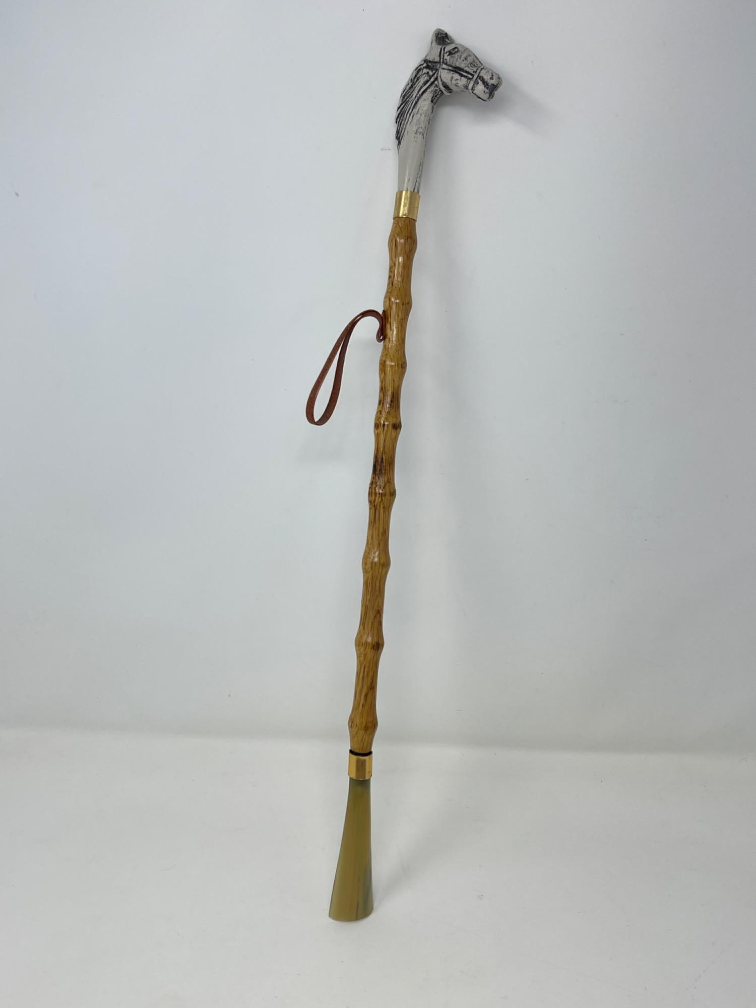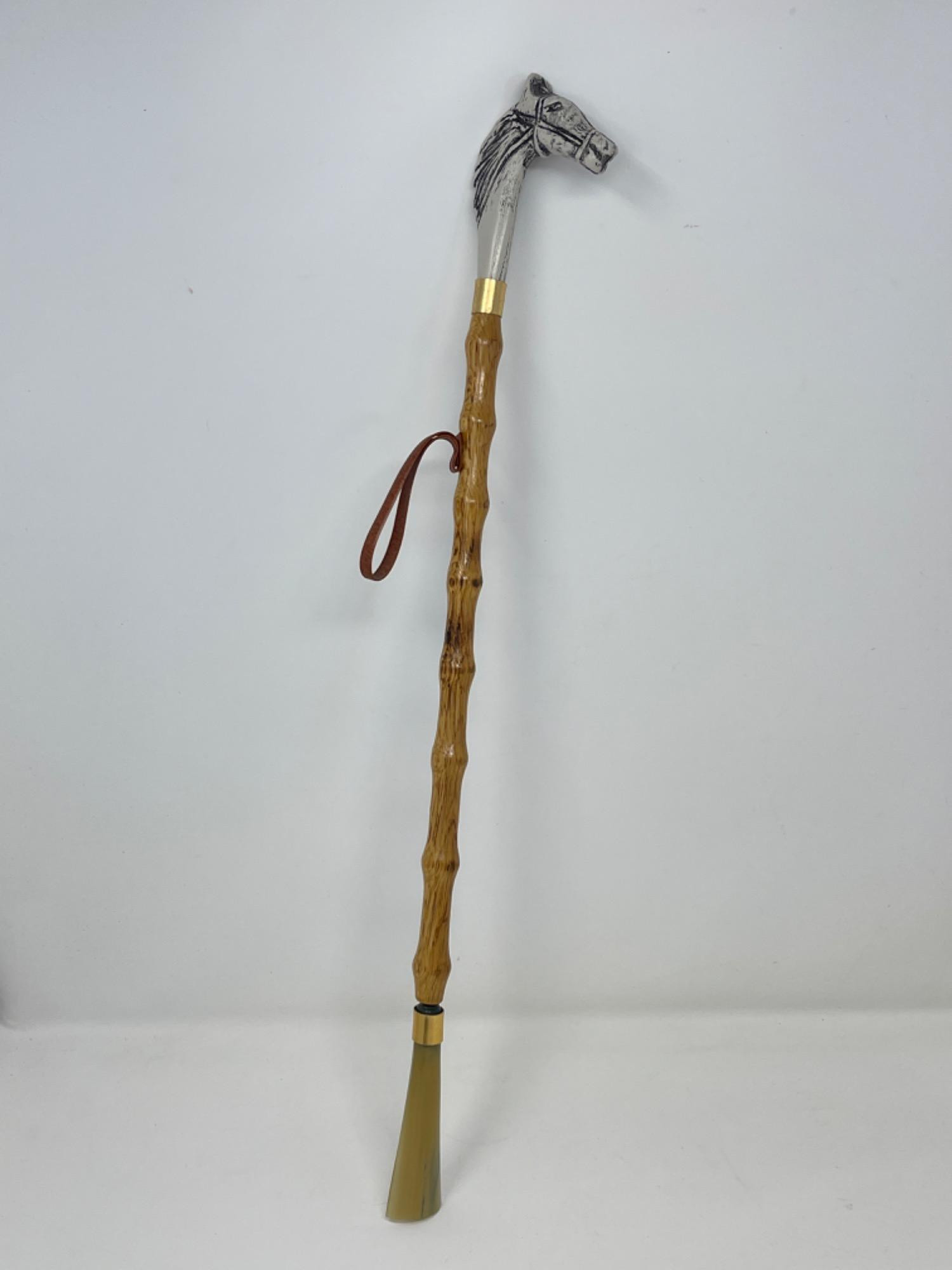 Vintage Horse Head Handle Riding Crop and Boot Horn Enhance your equestrian collection with this vintage-inspired horse head handle riding crop and boot horn, a stunning blend of functionality and craftsmanship. Designed for equestrian enthusiasts and collectors, this unique piece serves as both a stylish accessory and a practical tool.