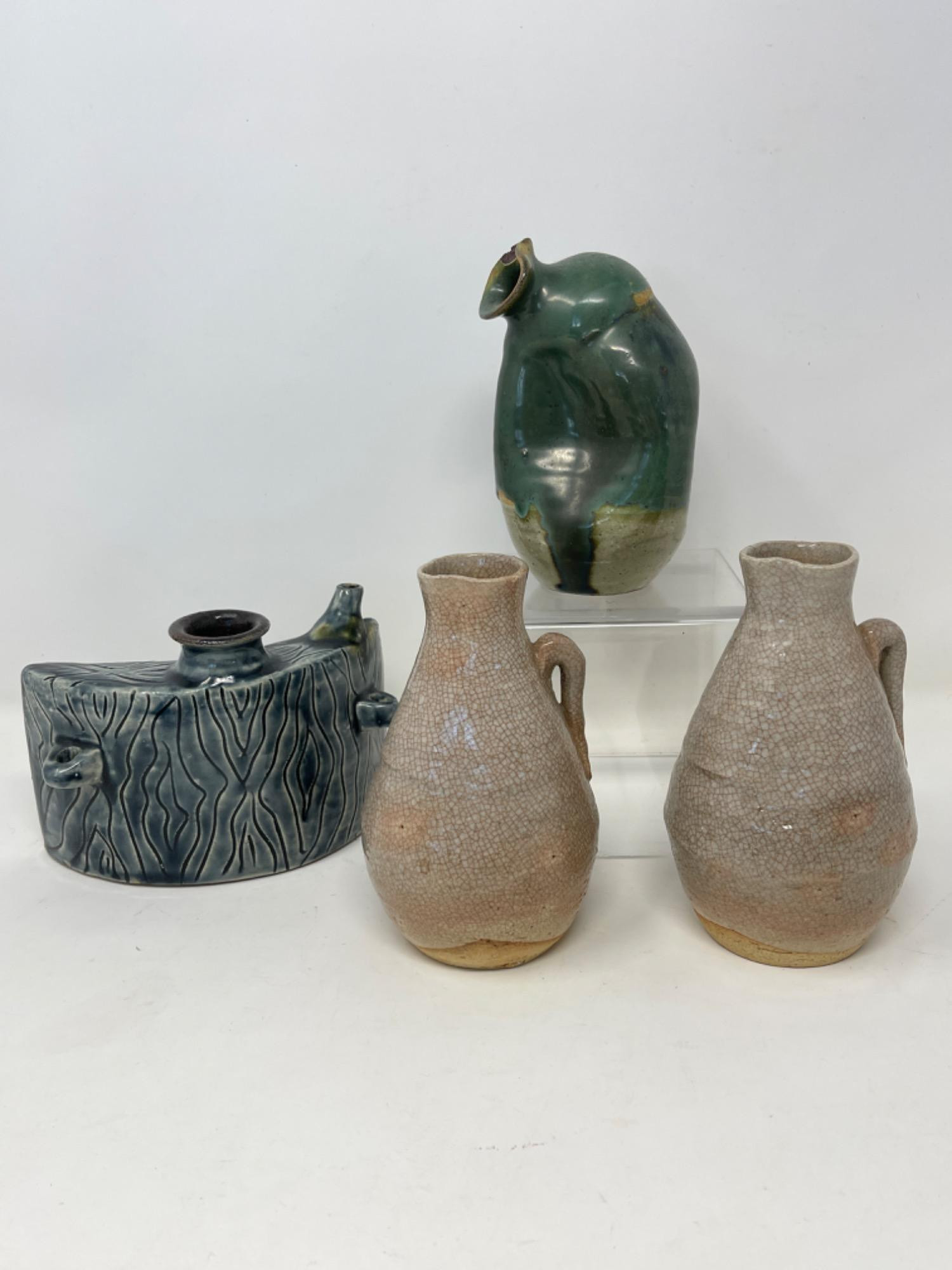 Lot # 48 - Set of 4 Artisan Pottery Vessels – Handcrafted, Unique Glazes