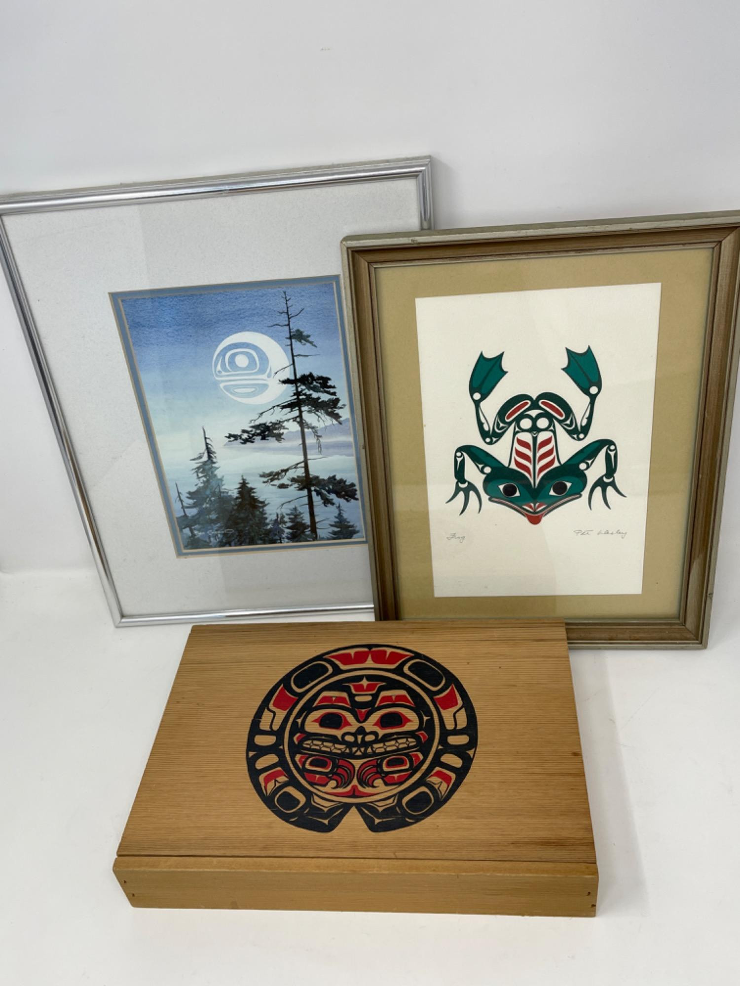 Lot # 58 - Northwest Coast Art Collection – Sue Coleman, Pat Wesley, & Salmon Box