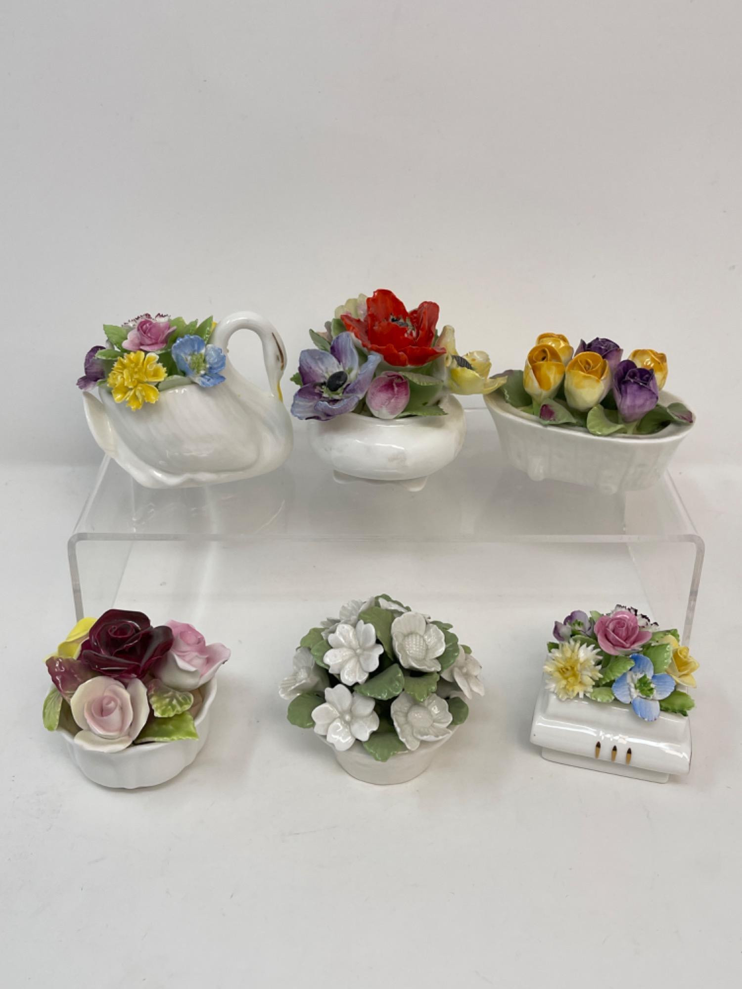 Vintage Royal Adderley, Aynsley & Coalport Porcelain Floral Arrangements – Set of 6