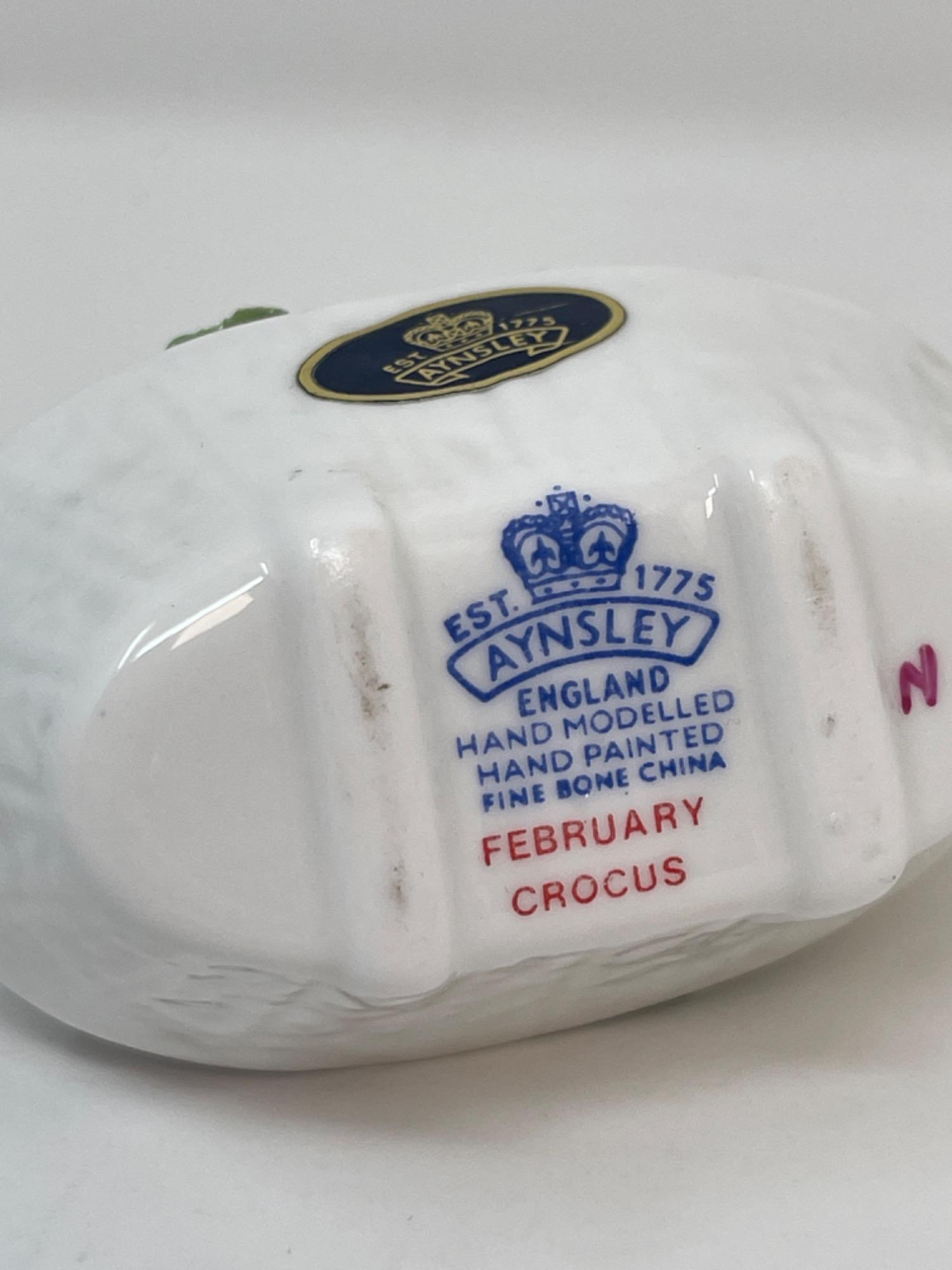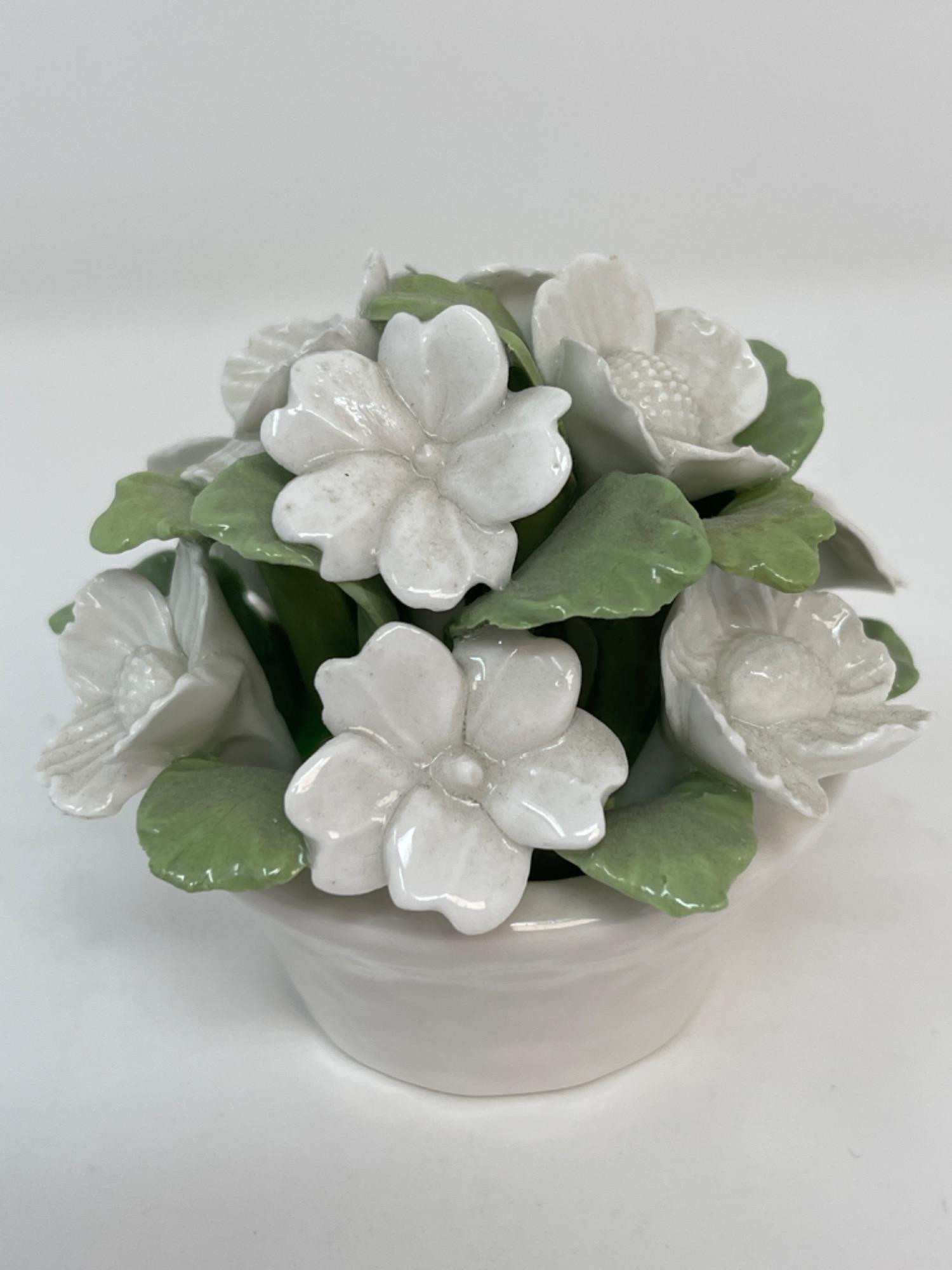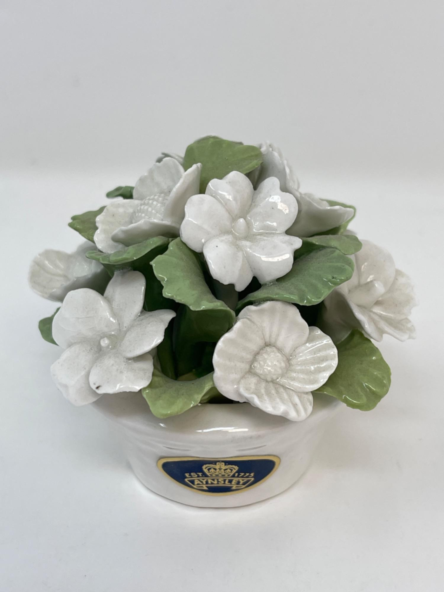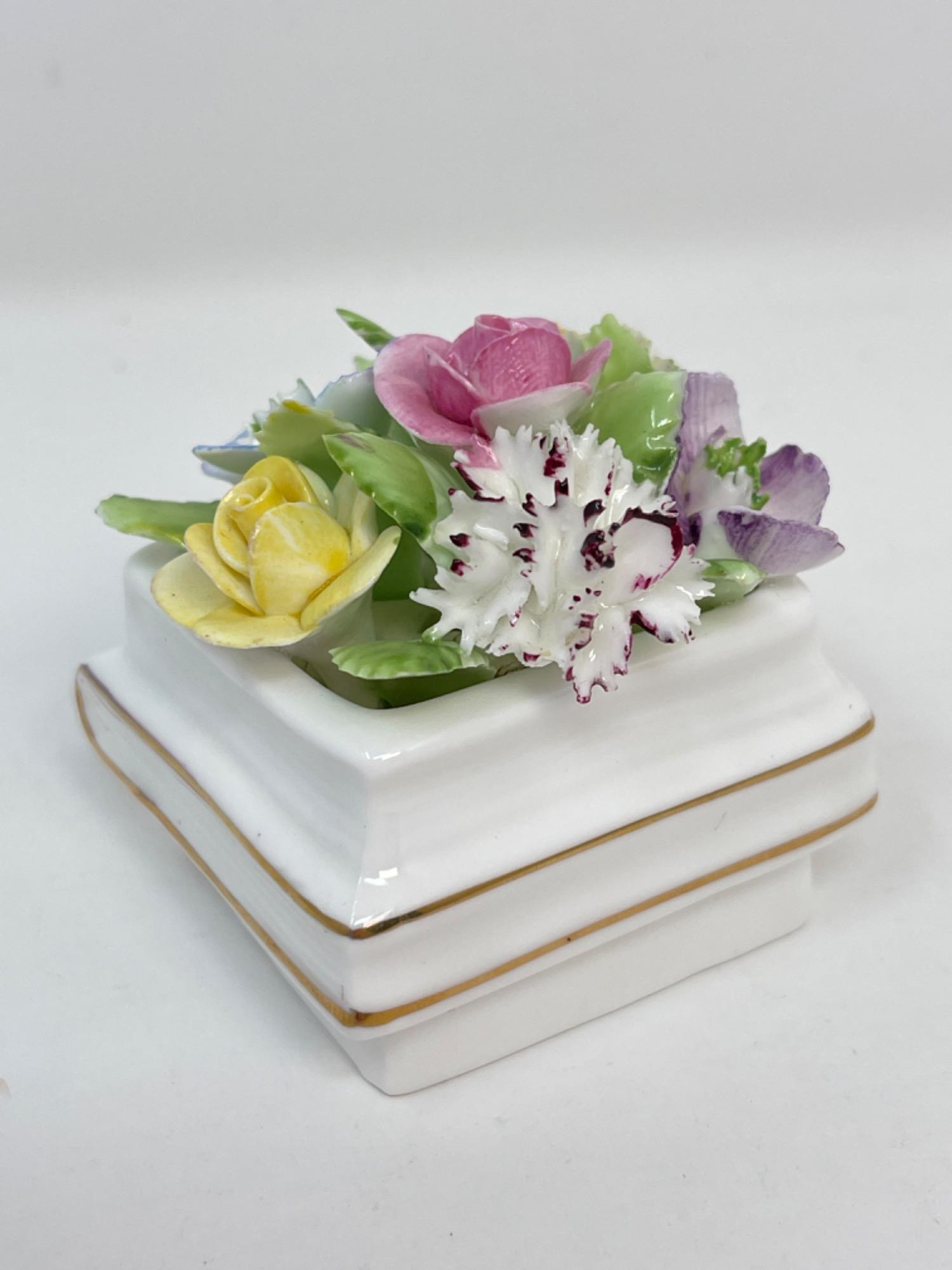 This exquisite collection of vintage hand-crafted porcelain floral arrangements includes pieces from renowned English makers Royal Adderley, Aynsley, and Coalport. Each delicate piece showcases the fine artistry and attention to detail that these brands are known for, featuring intricate flowers in vibrant hues, beautifully arranged in elegant white ceramic bases. Condition: - A few minor chips and staining. Good used condition. Tallest: 2.75” H