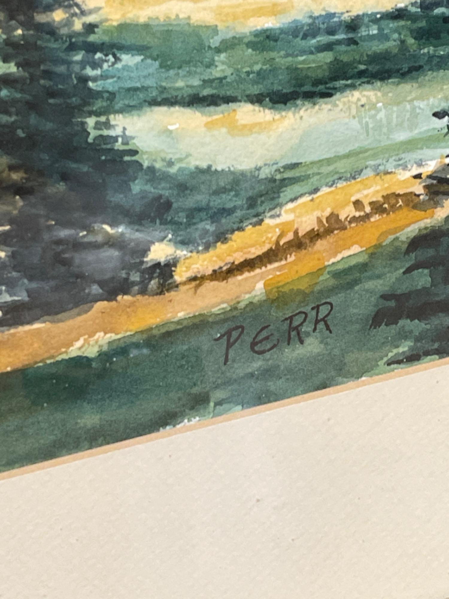 Lot # 75 - Framed Signed Watercolor Landscape Painting – Vintage Artwork by Perr