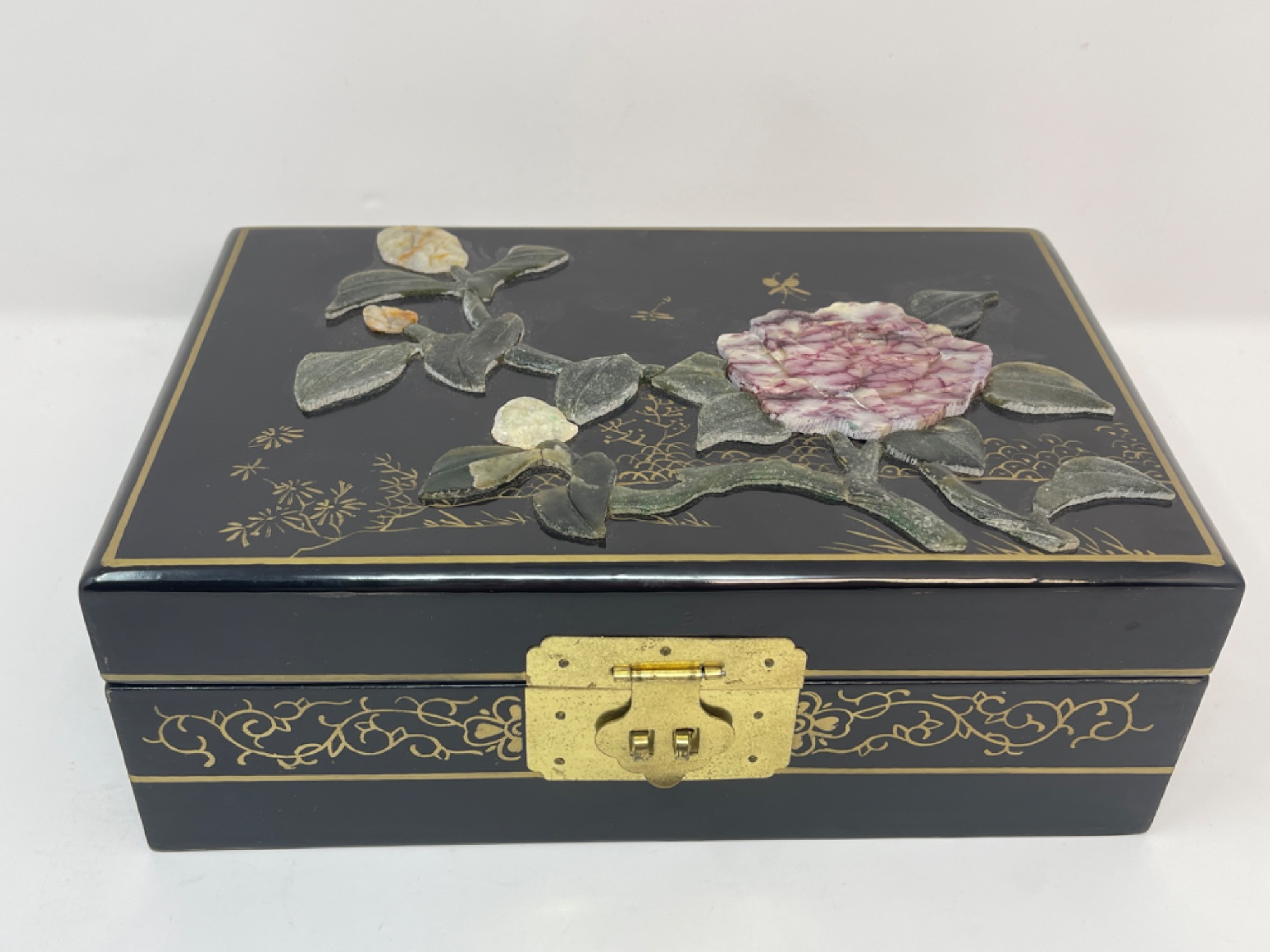Lot # 85 - Vintage Singapore Lacquered Jewelry Box with Stone Inlay & Silk Lining