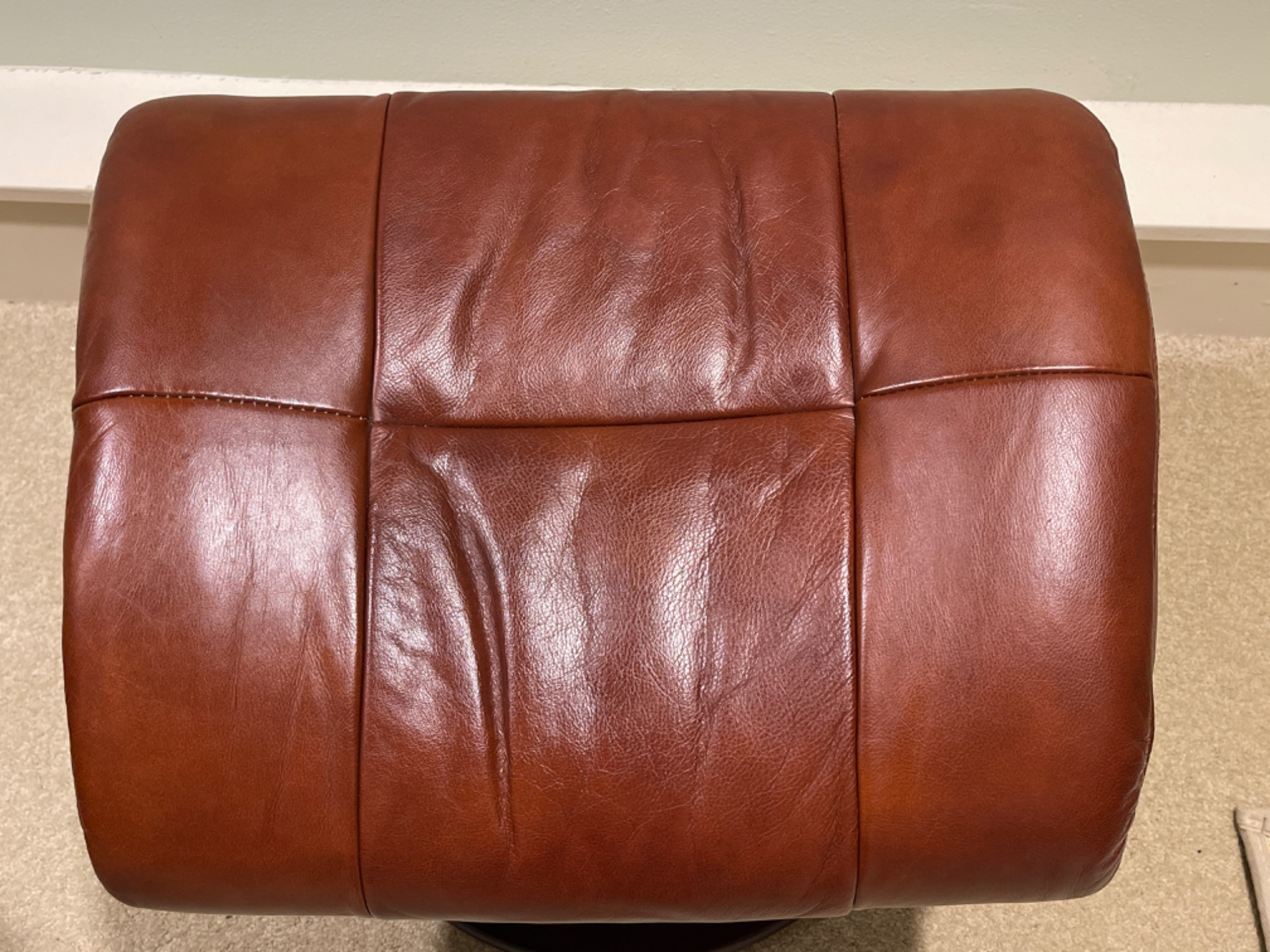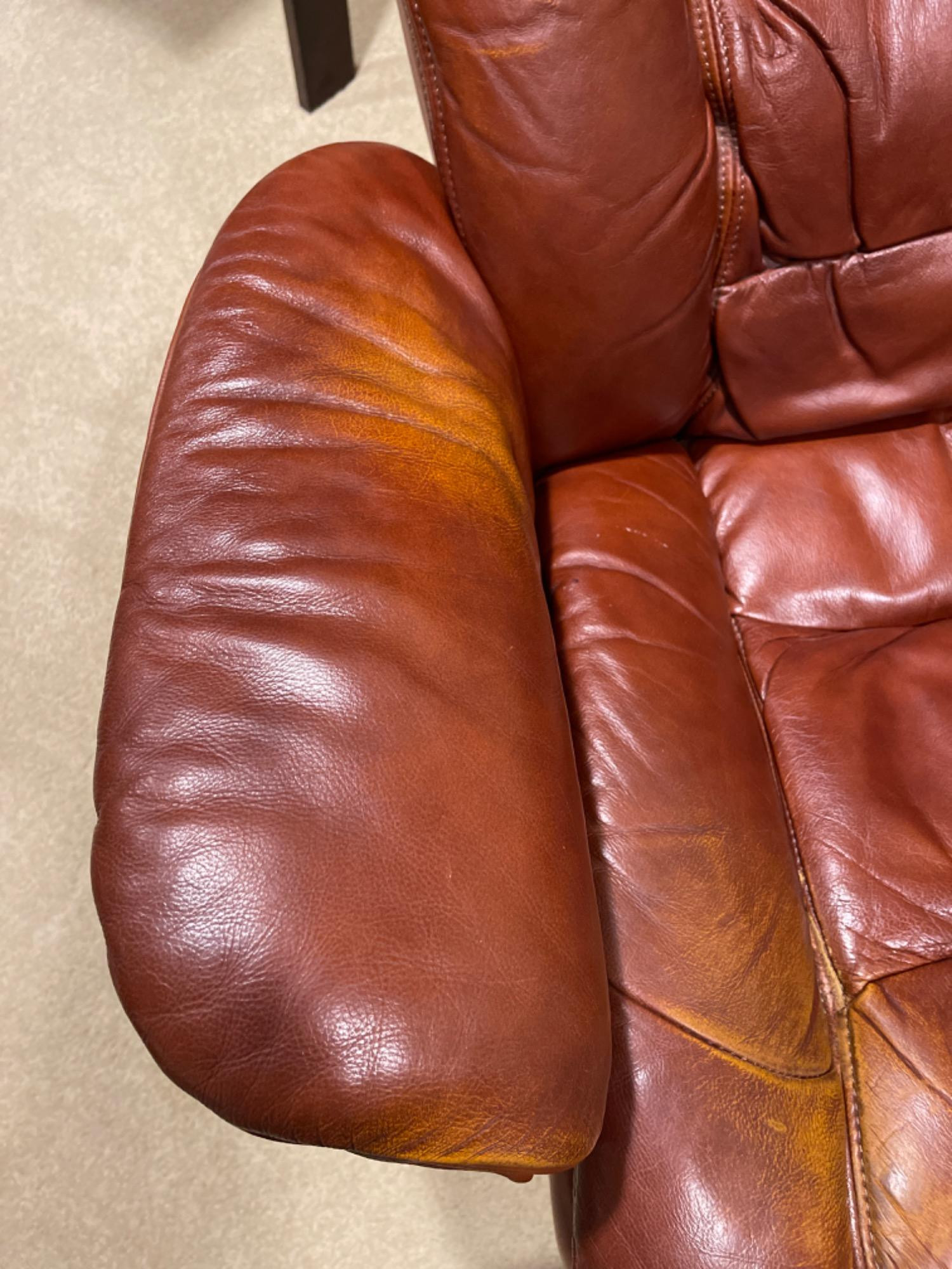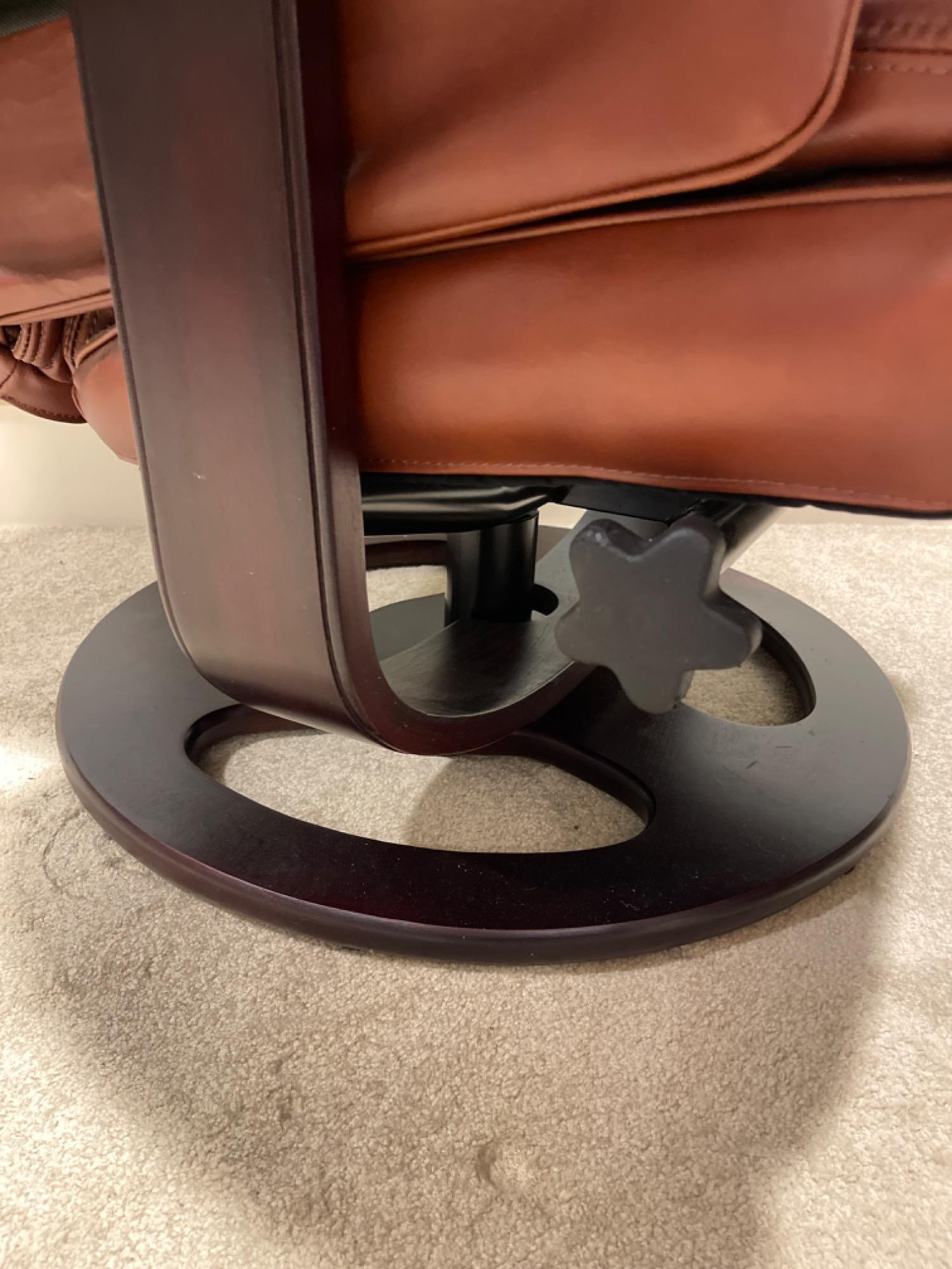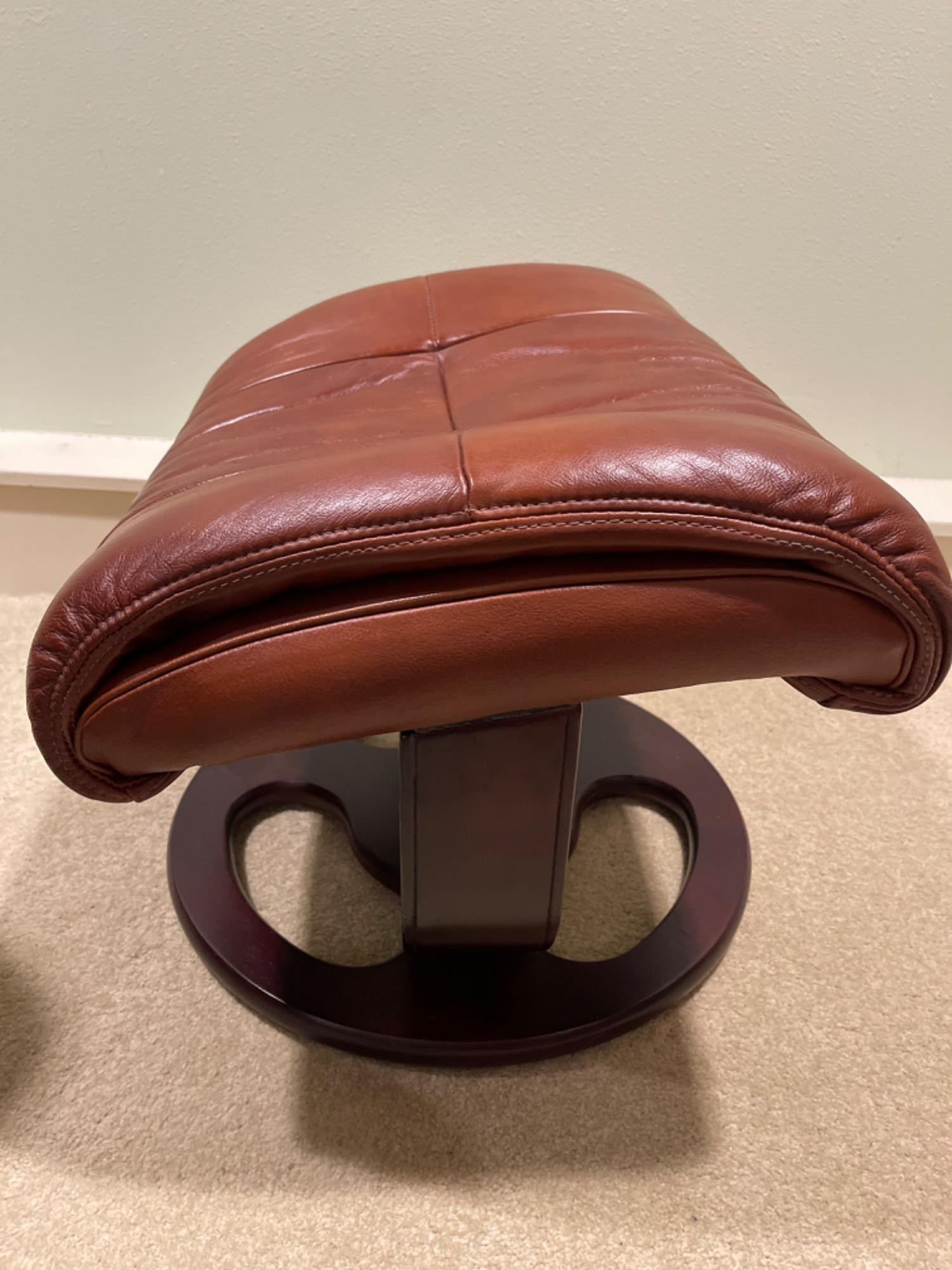 Lane Furniture Red Recliner And Ottoman – Well-Loved Condition Experience the enduring comfort and classic design of this Lane Furniture red recliner. Renowned for their commitment to quality and ergonomic support, Lane Furniture has been a trusted name in the industry since 1912. Condition Notes: Visible Wear: The recliner exhibits multiple stains and scratches, indicative of extensive use. Cushioning: The cushions are noticeably worn in, reflecting frequent usage over time. Unknown if real leather. Dimensions: Chair: 34" L x 34" W x 38" H Ottoman: 22" L x 18.5" W x 16" H