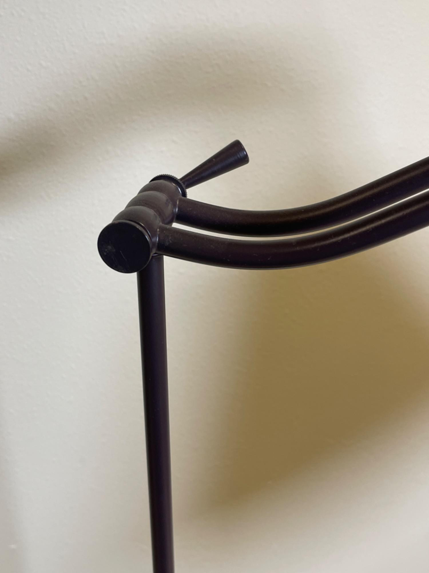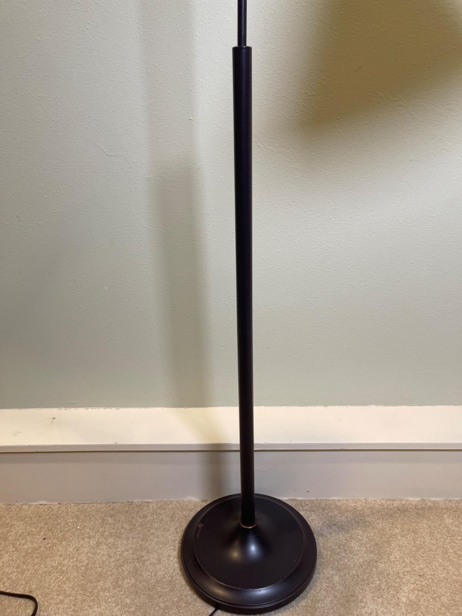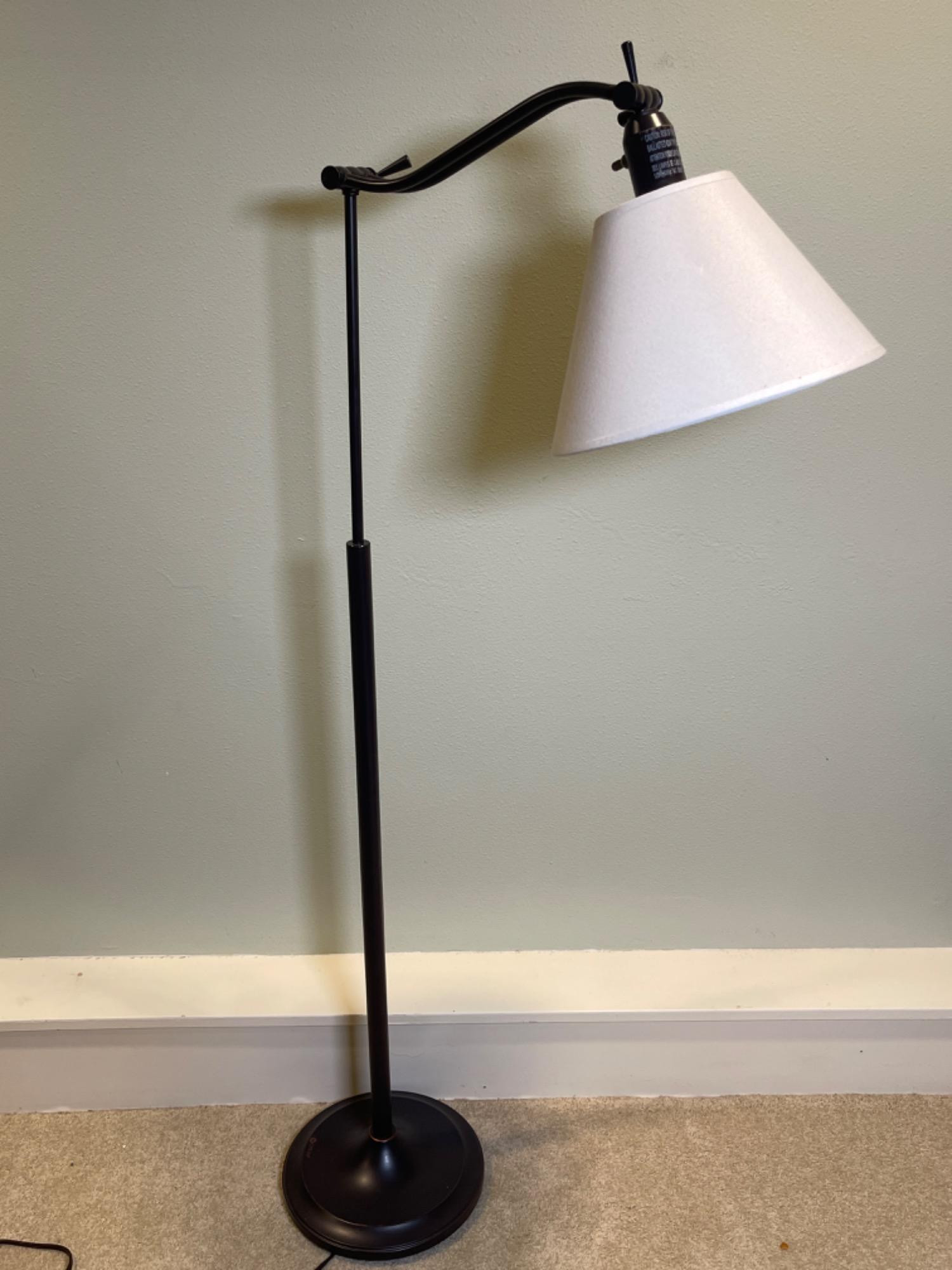 OttLite adjustable floor lamp with a sleek black metal design and a conical shade. Ideal for task lighting, reading, or crafting with its flexible arm for directing light where needed.