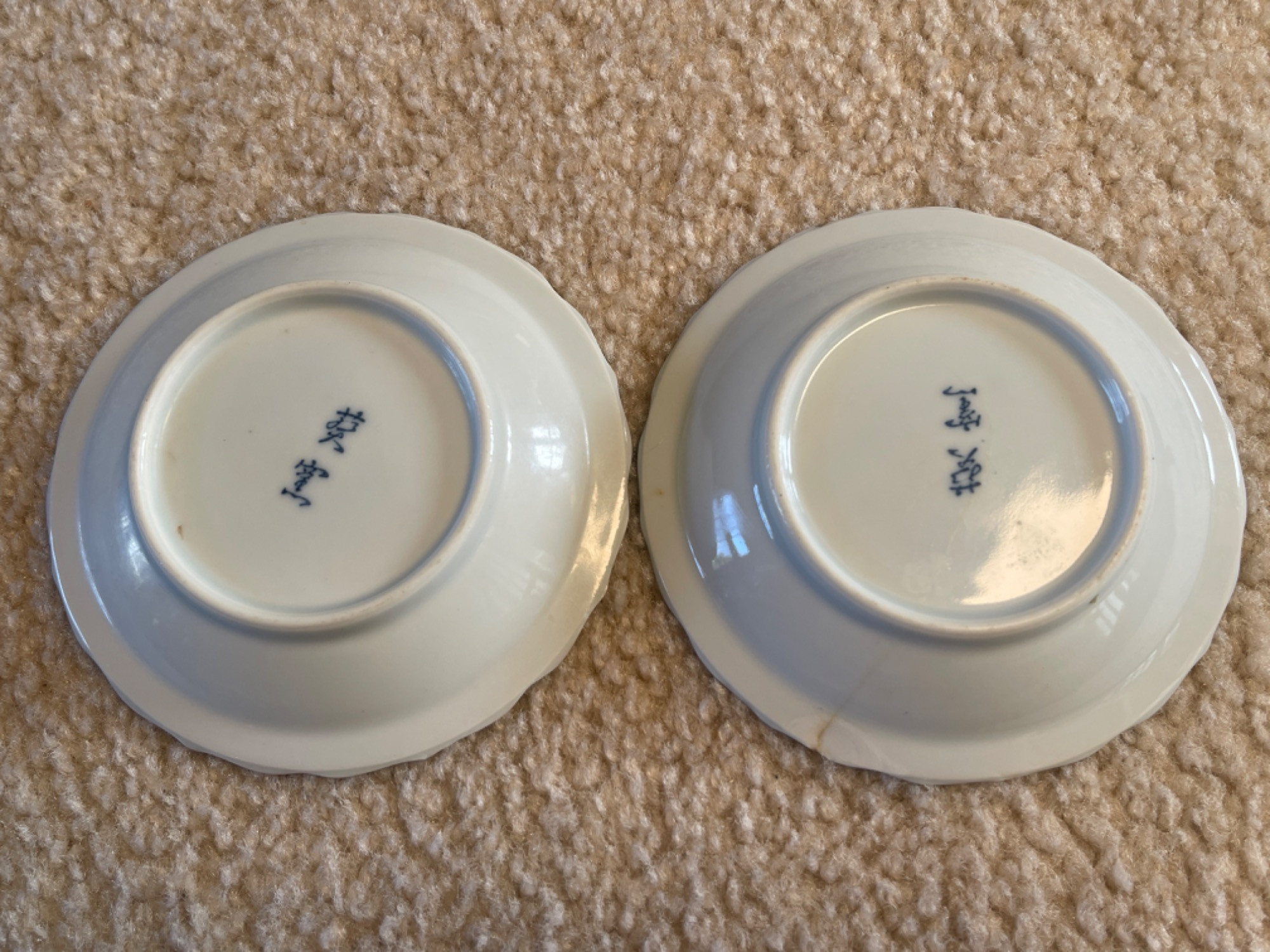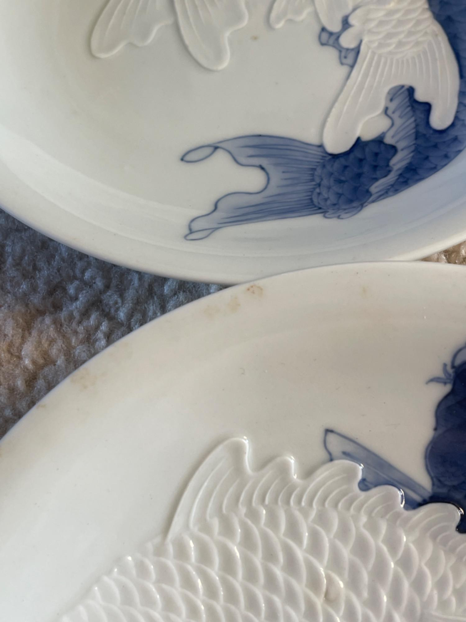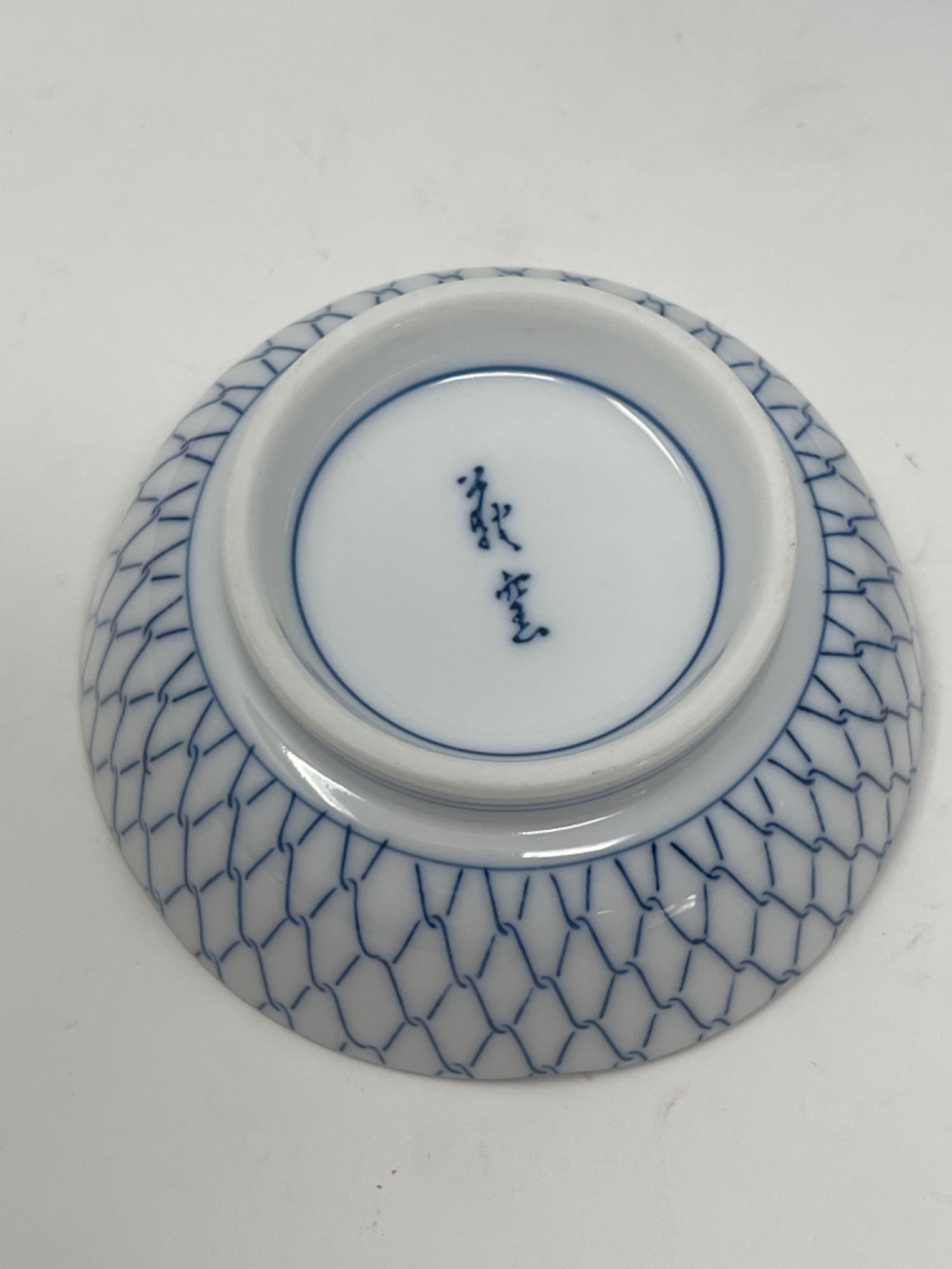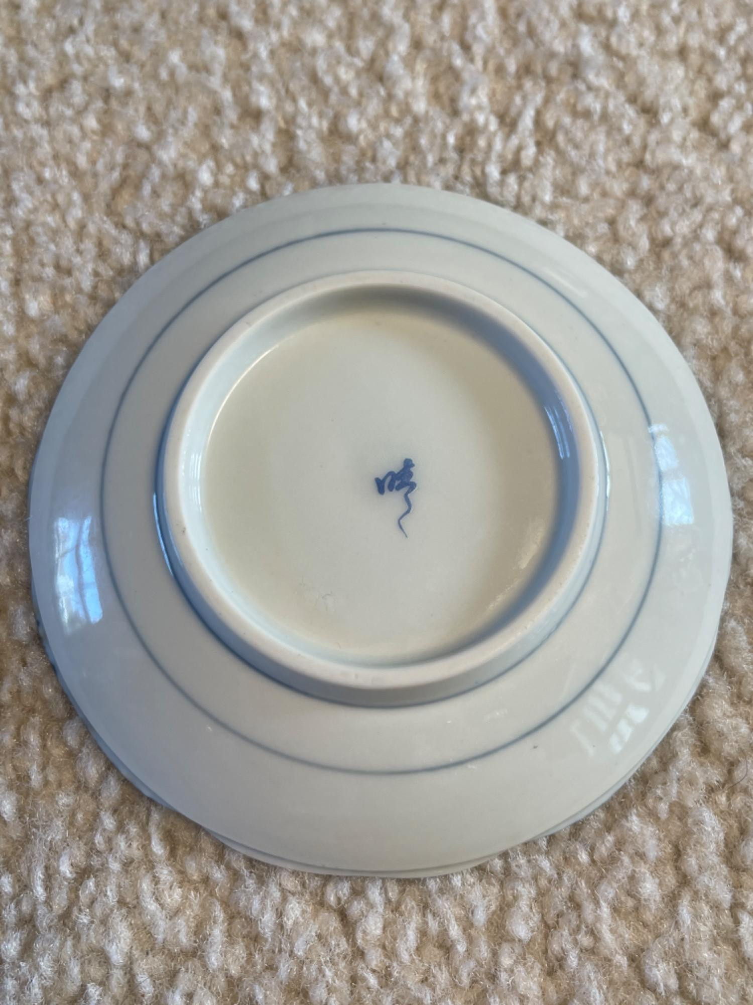 Beautiful collection of vintage Japanese blue and white porcelain and ceramic dishes, featuring a variety of intricate patterns and traditional designs. Many pieces are signed or stamped, showcasing craftsmanship and authenticity.