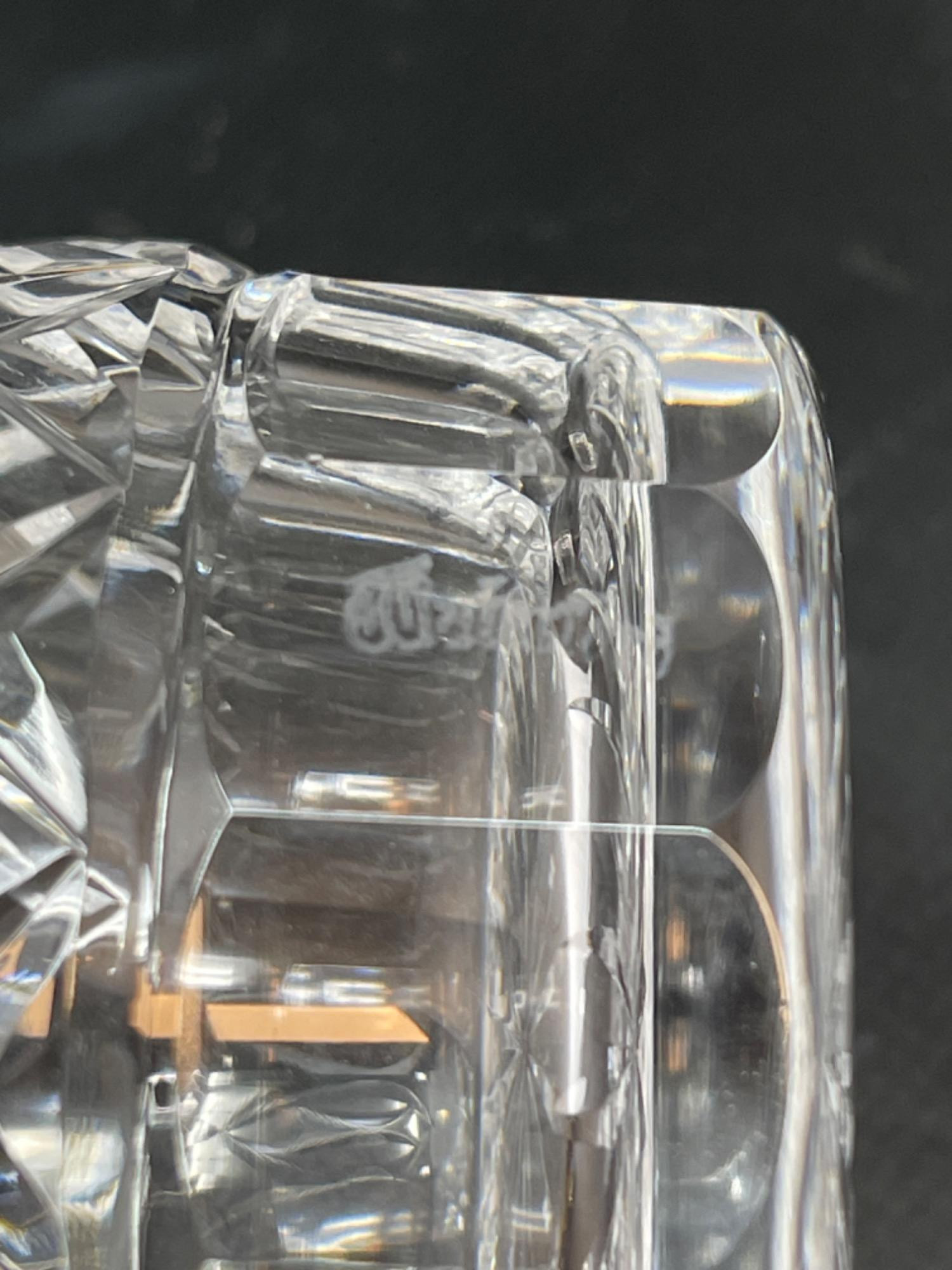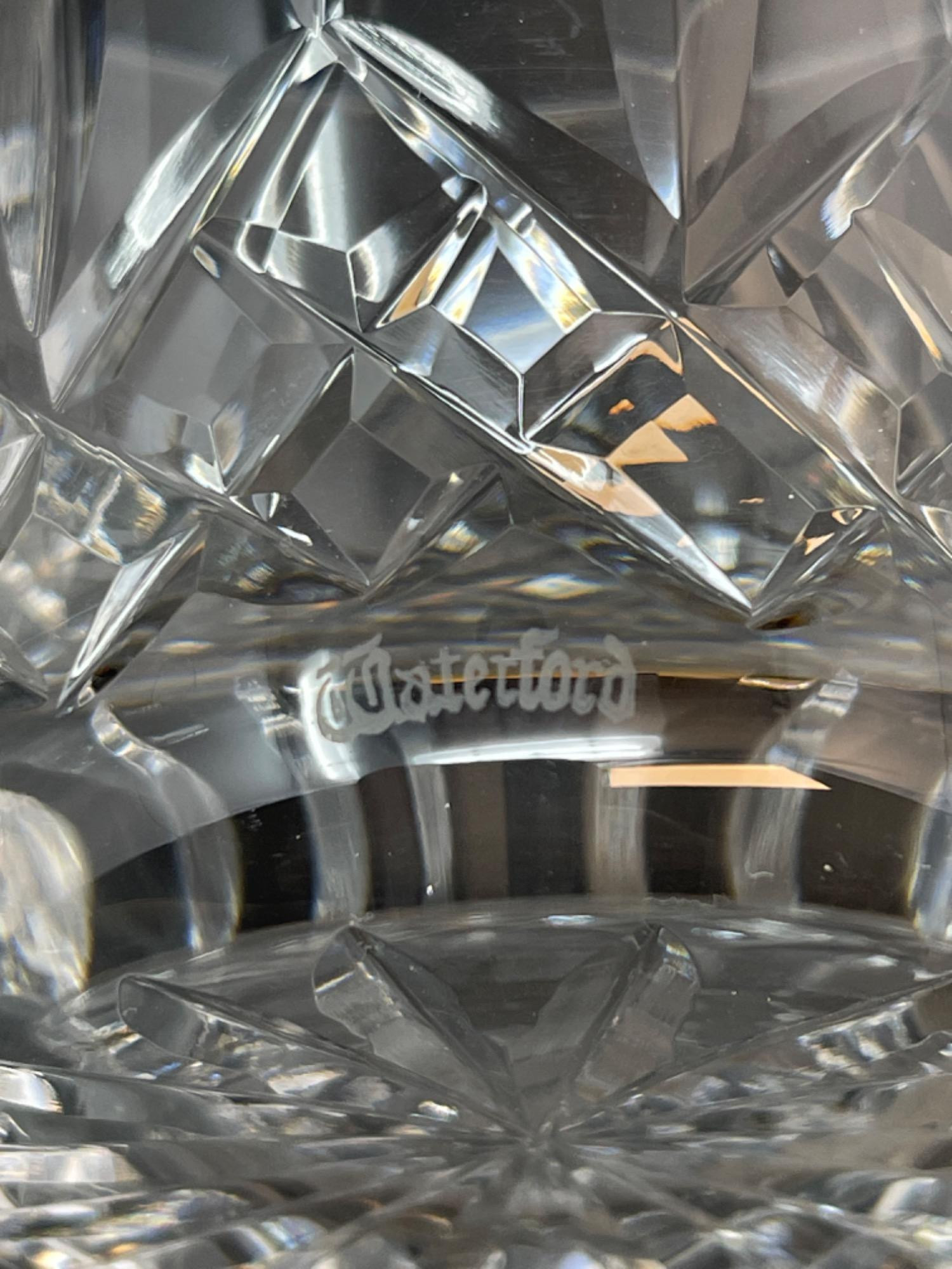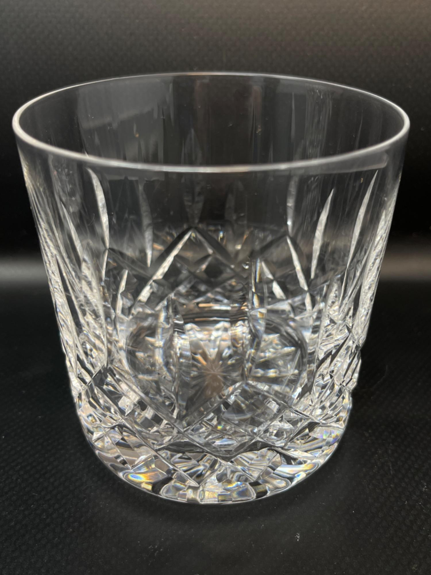 Elegant Waterford Lismore crystal glasses featuring the iconic diamond and wedge cut pattern that defines this timeless collection. This set of eight includes seven smaller glasses and one larger glass, perfect for adding classic sophistication to your barware collection. (7) Small Glasses – 3.25” H