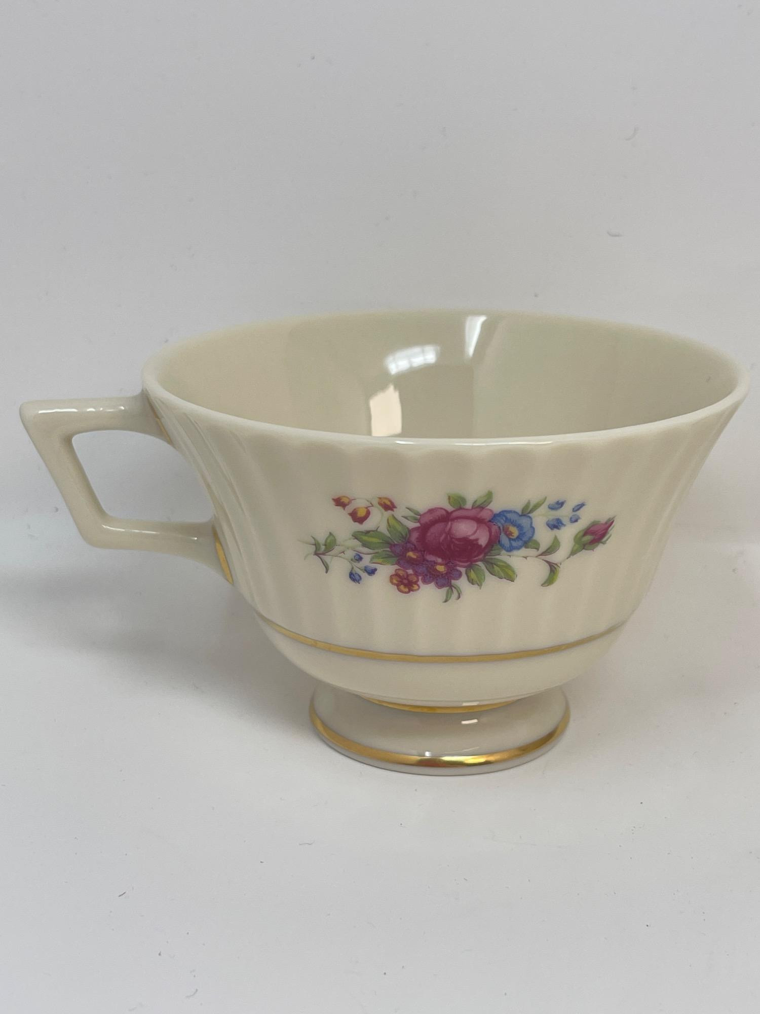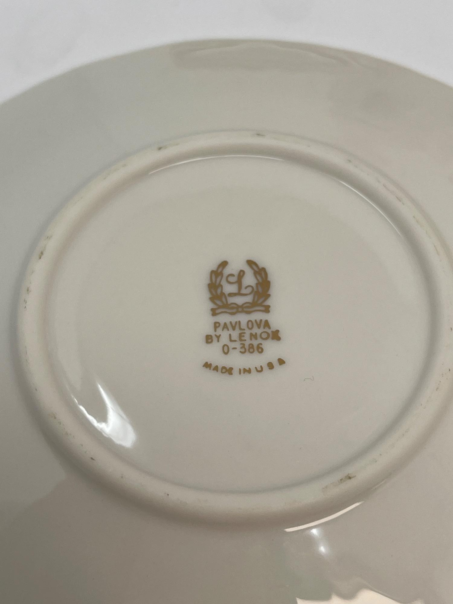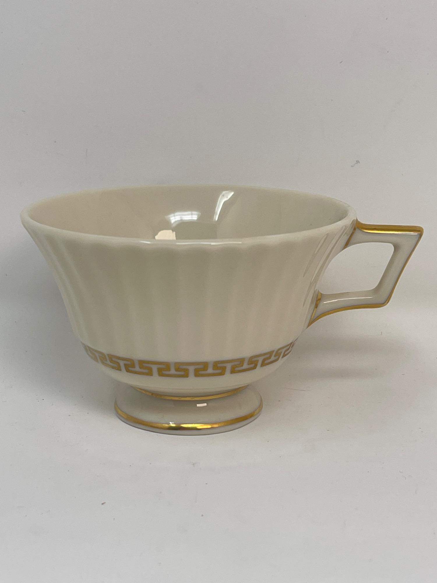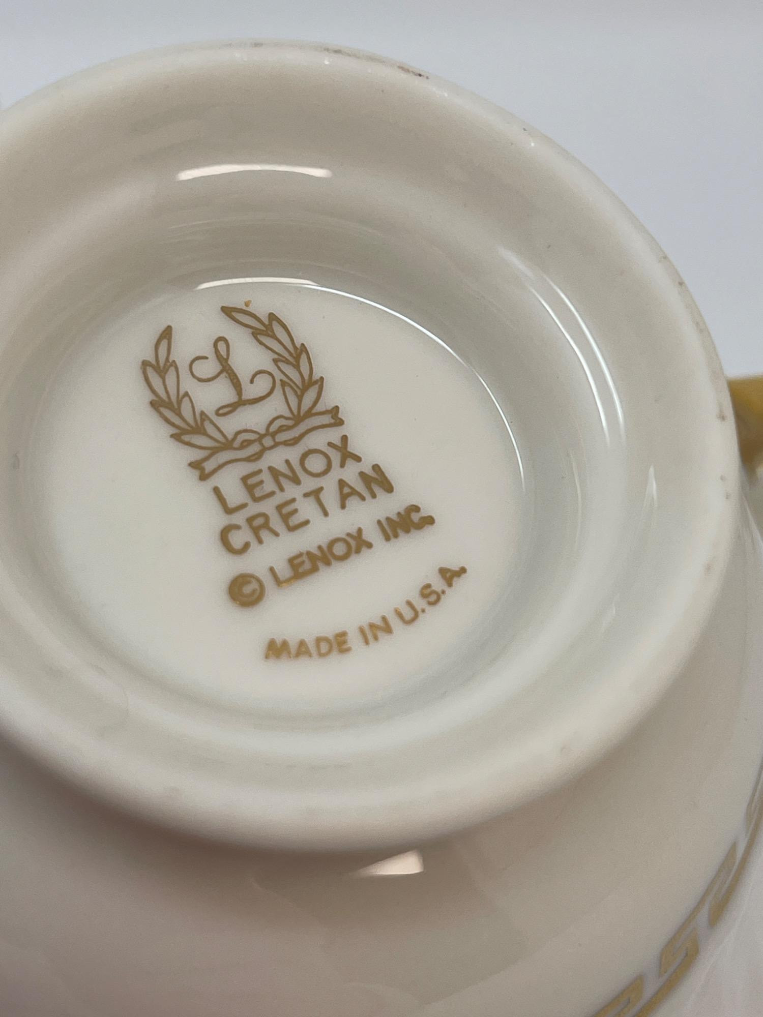 A charming mix of Lenox fine china, this set includes elegant Pavlova and Cretan tea cups along with coordinating saucers (for Pavlova cups). The Pavlova pieces feature a delicate floral motif with gold trim, while the Cretan cups showcase a refined Greek key design, also accented with gold. Each piece embodies the timeless sophistication of Lenox craftsmanship, perfect for collectors or for adding a touch of elegance to your table.