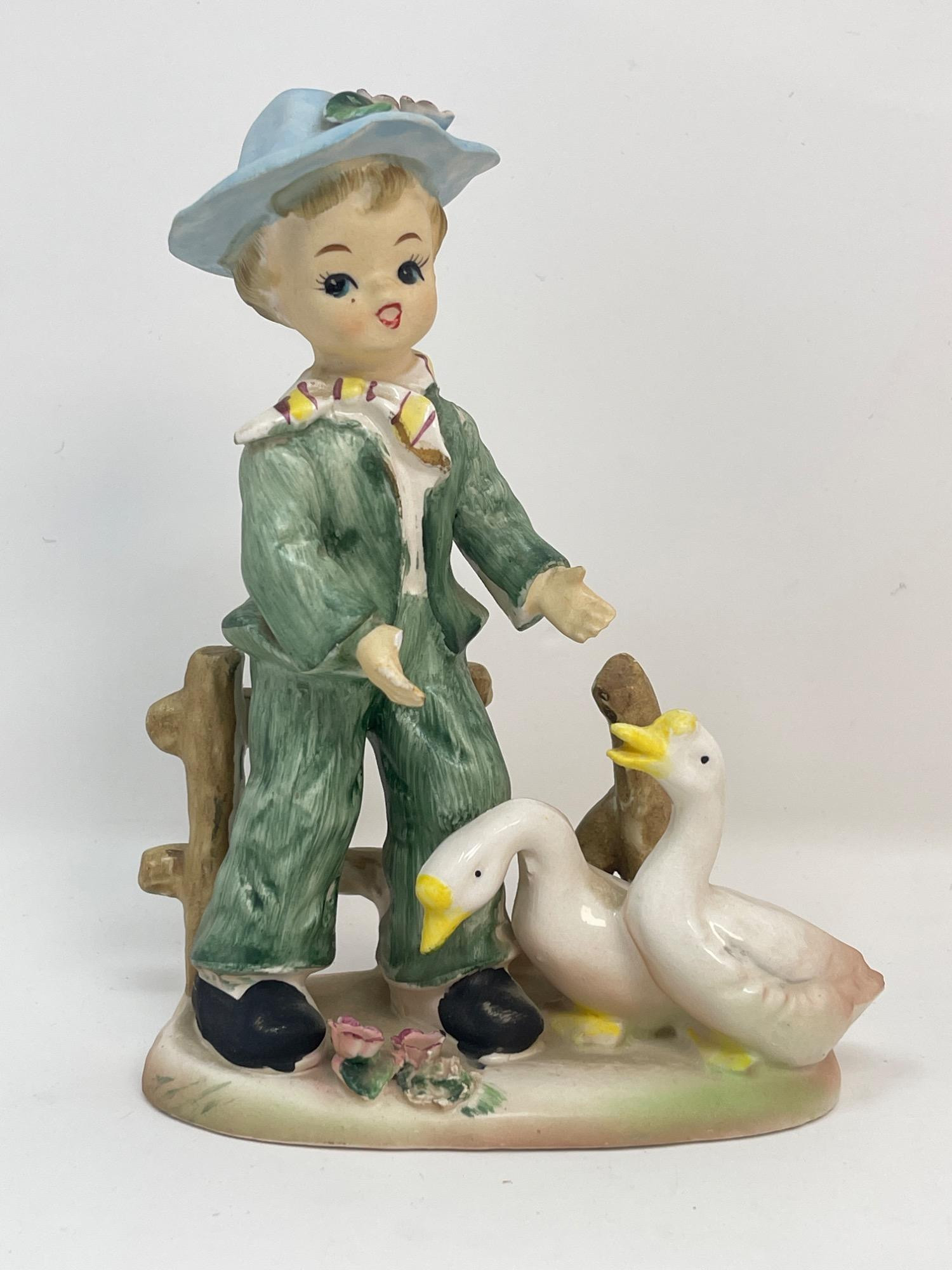 Boy figurine has a couple of small chips but retains its vintage charm.