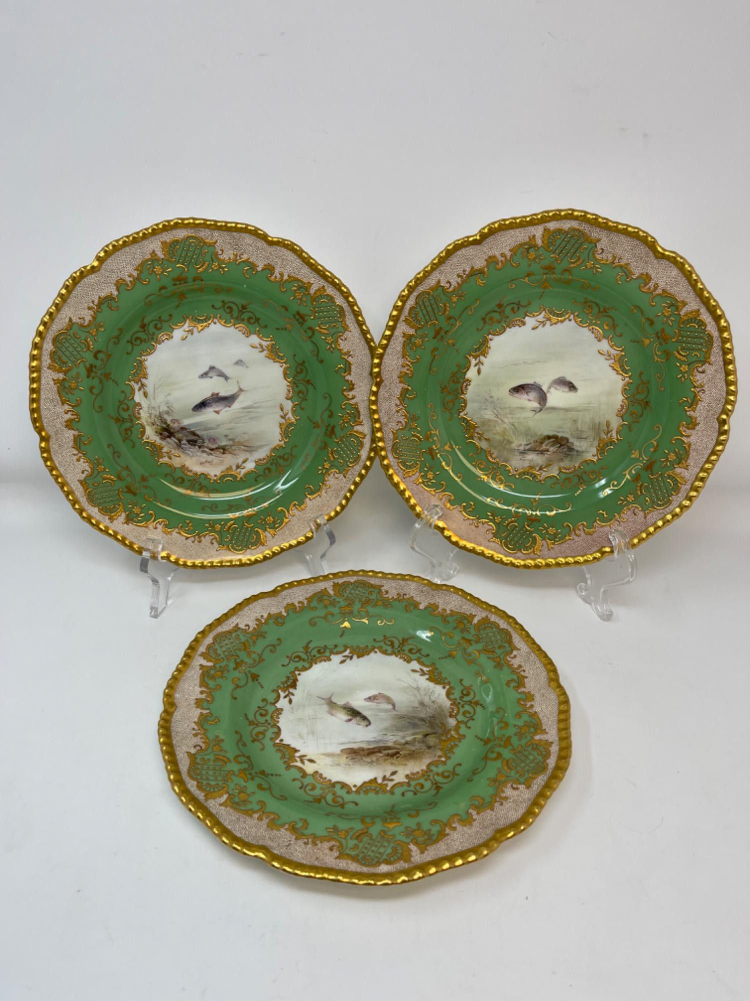 Lot # 133 - Three RARE Antique Coalport England Hand-Painted Fish Plates