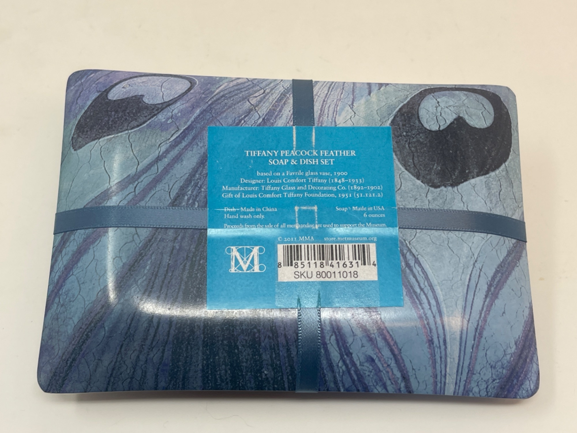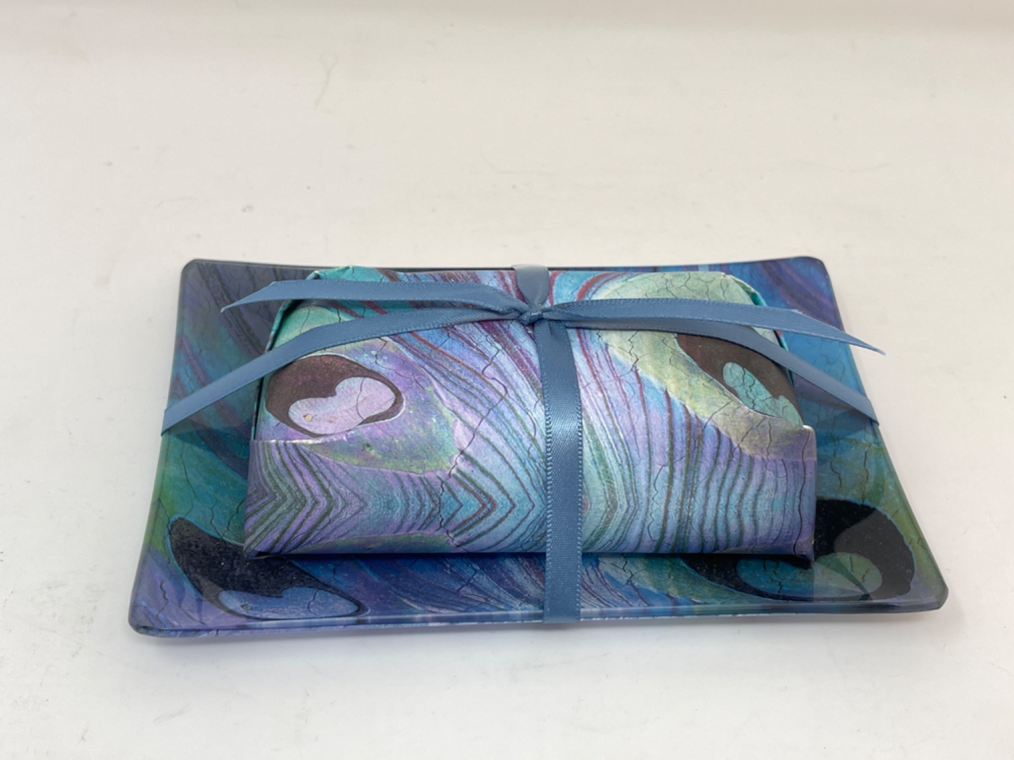 Art Glass Vase, Decorative Tray, and Soap Dish Set