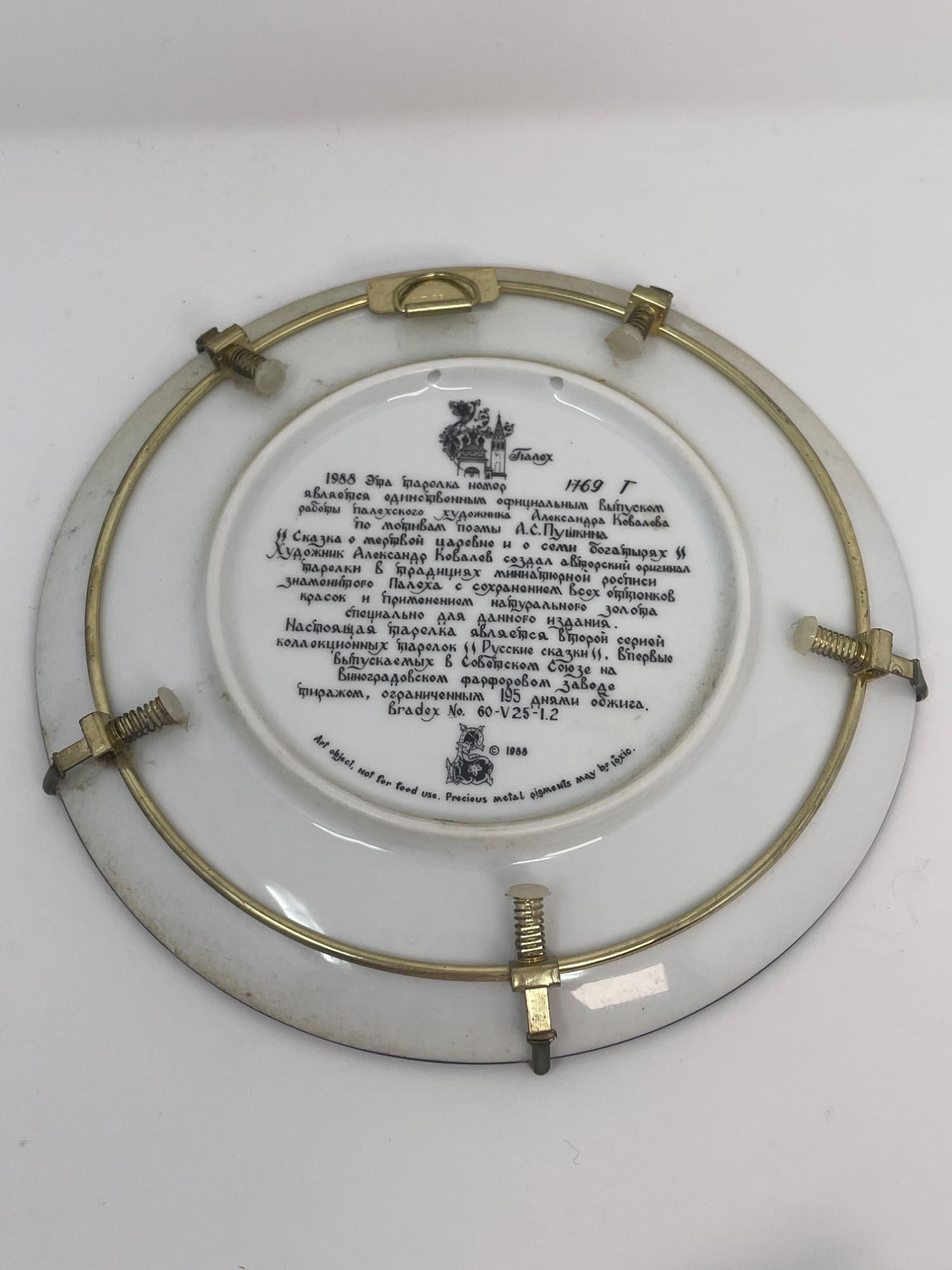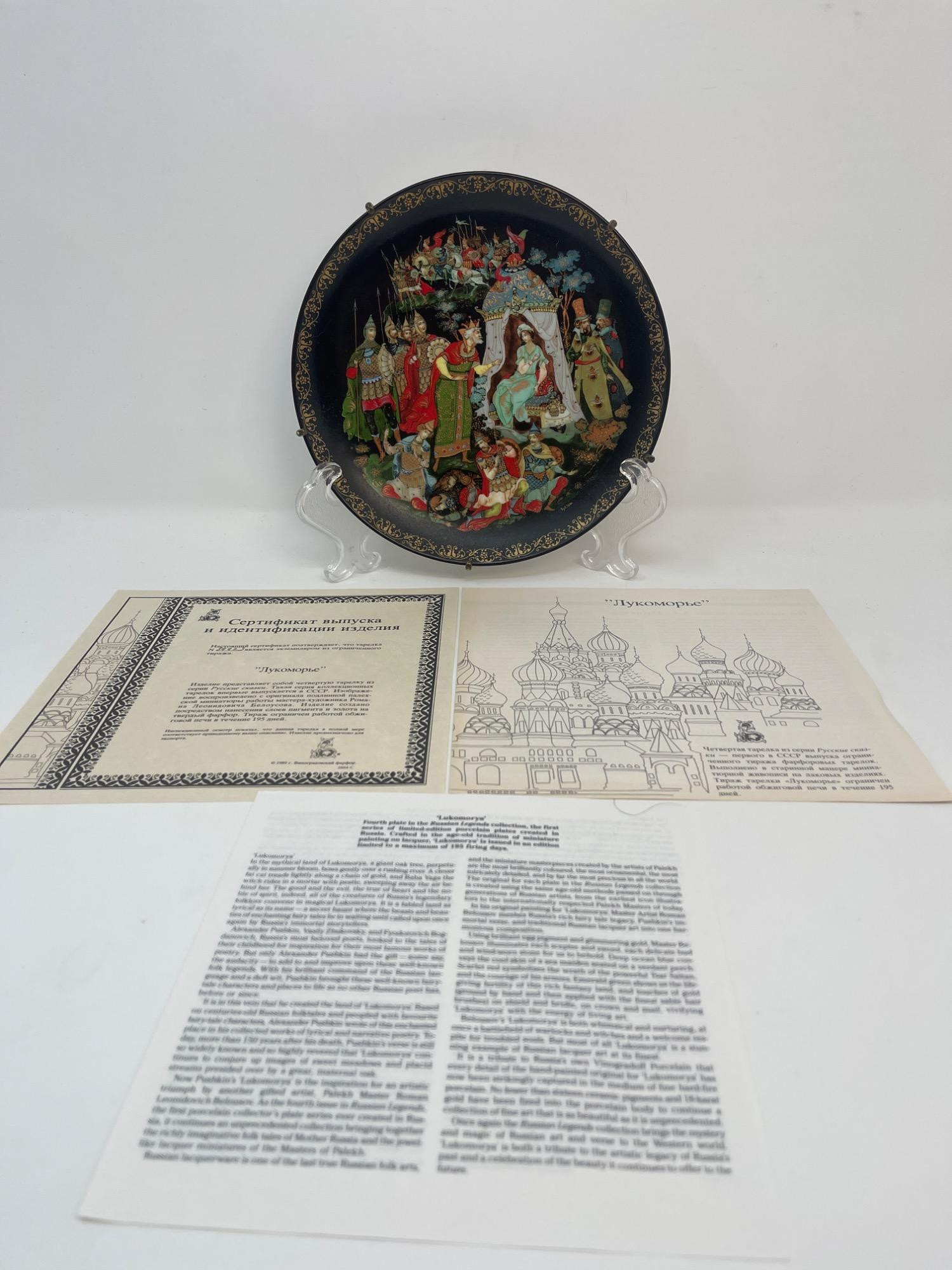 Lomonosov Russian Legends Collector Plates – Complete Set with Original Boxes and COA's A captivating collection of Lomonosov Russian Legends collector plates, each meticulously crafted by the esteemed Lomonosov Porcelain Factory. These plates showcase intricate designs inspired by Russian folklore, adorned with rich colors and gold accents. Each plate is accompanied by its original box and Certificate of Authenticity, ensuring its provenance and value. Condition: