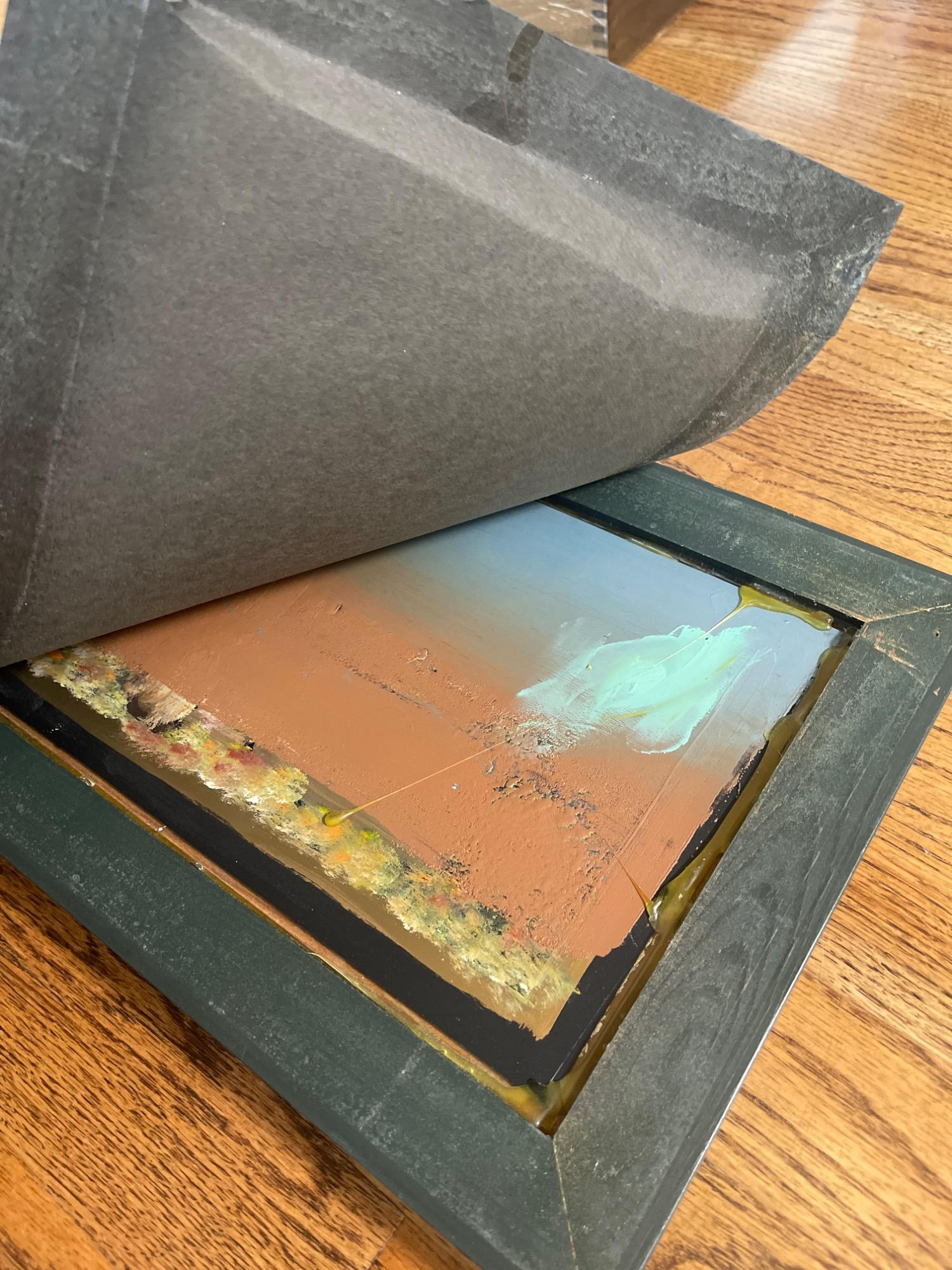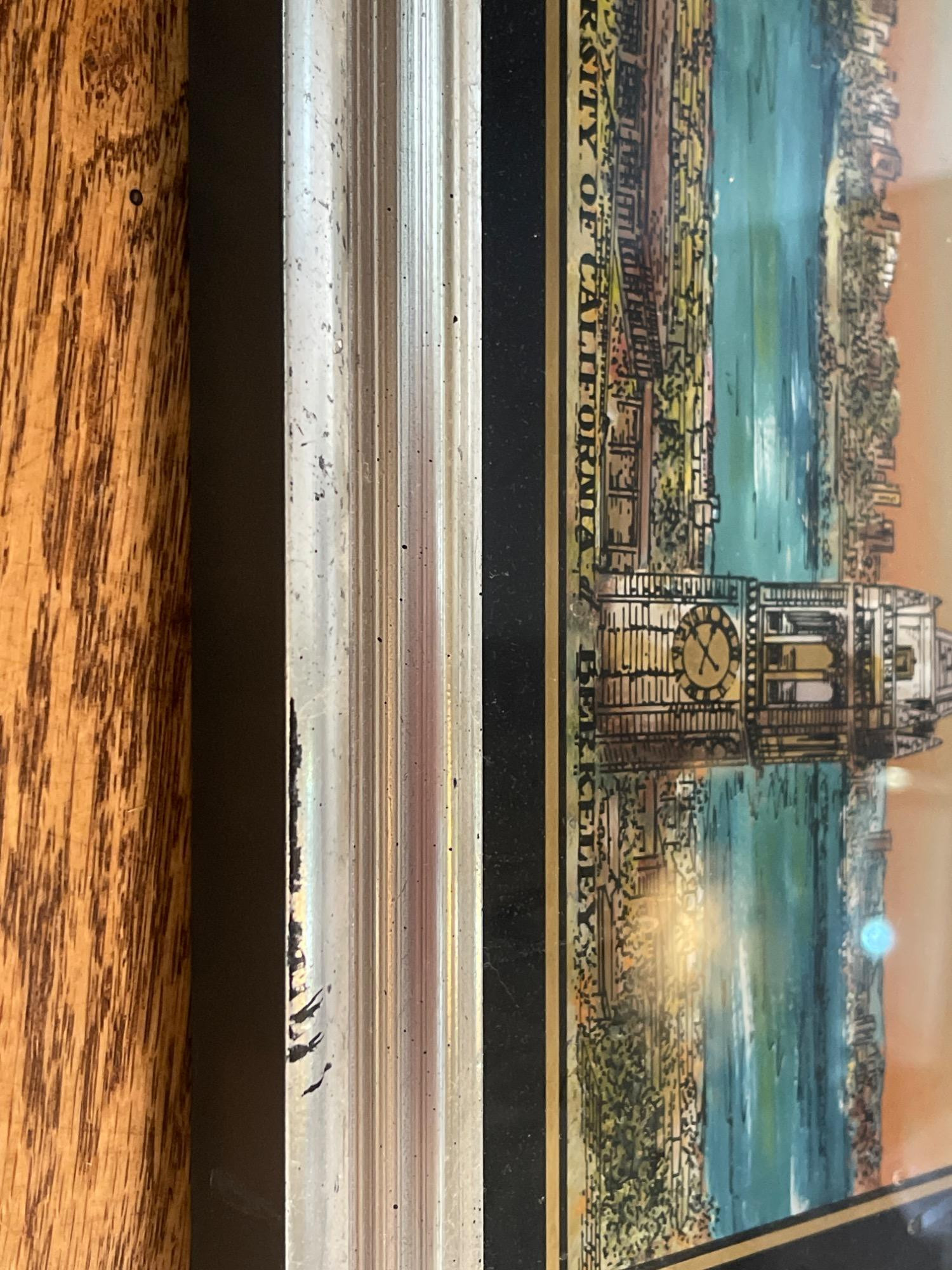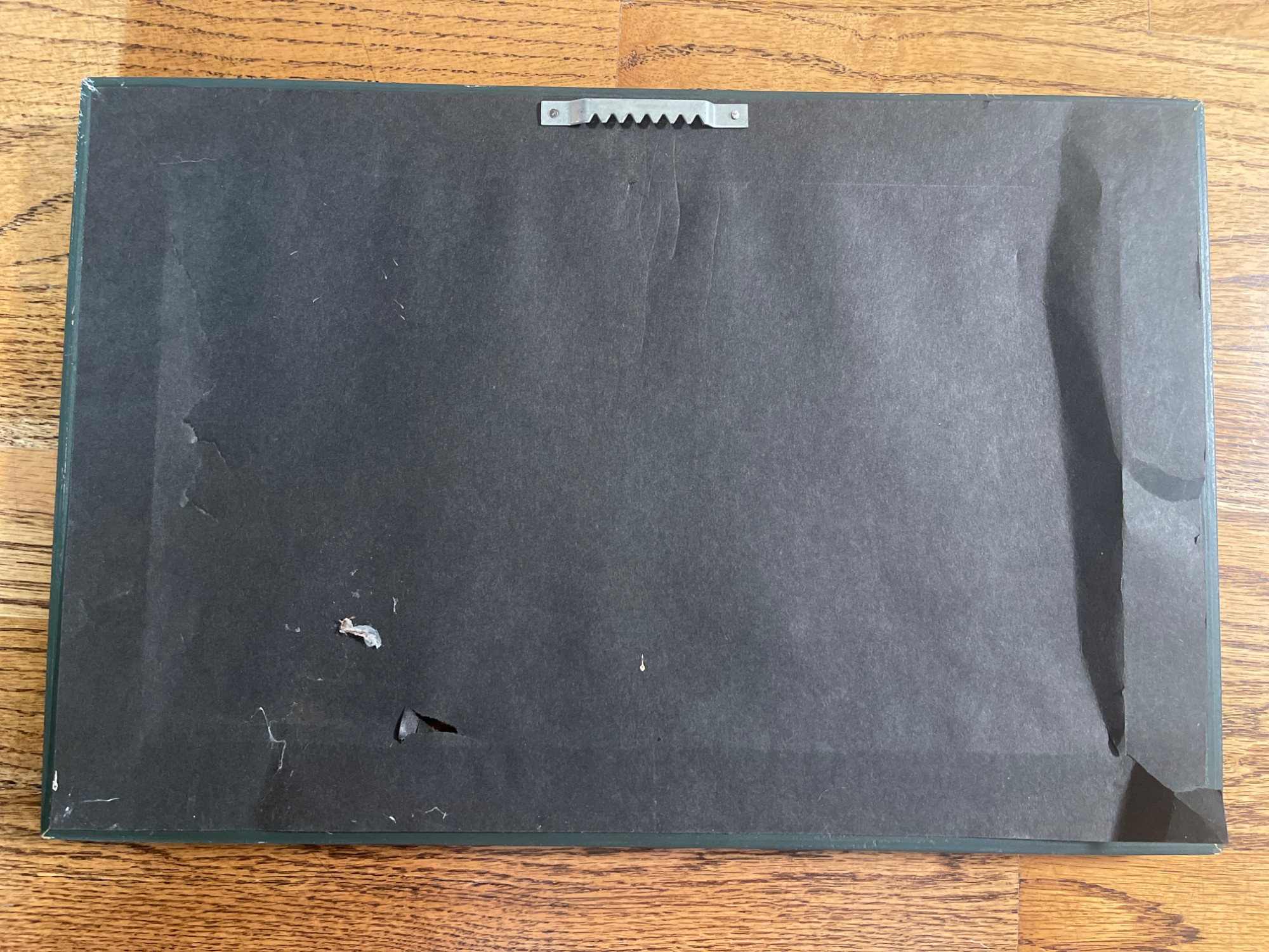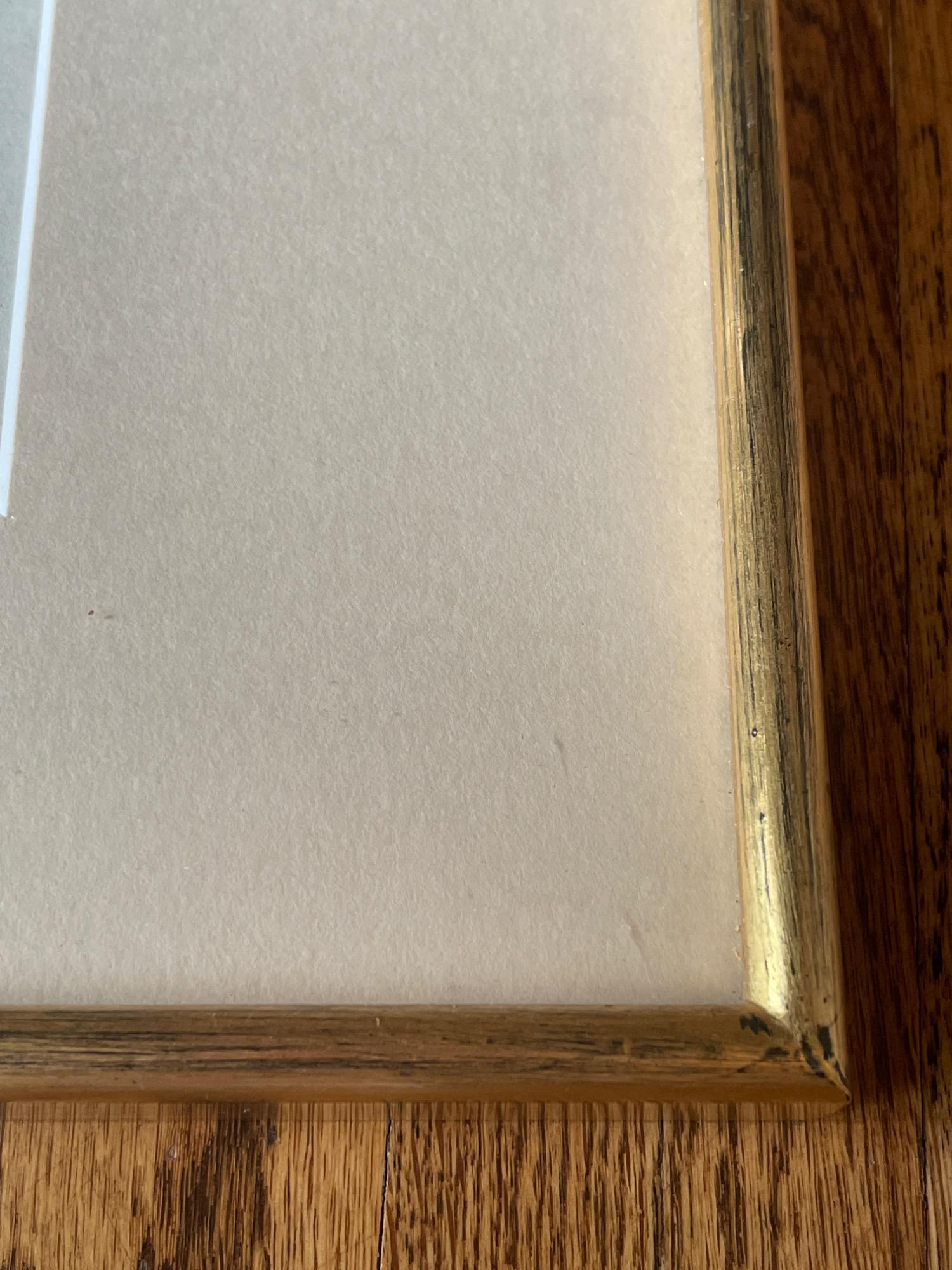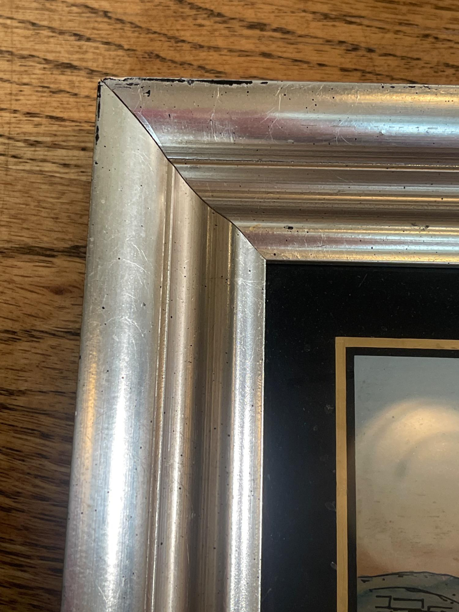 - The small seascape painting has significant breakage to its frame and will require reframing.