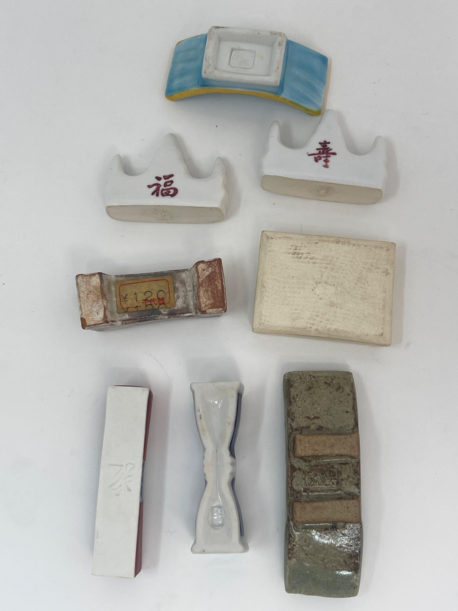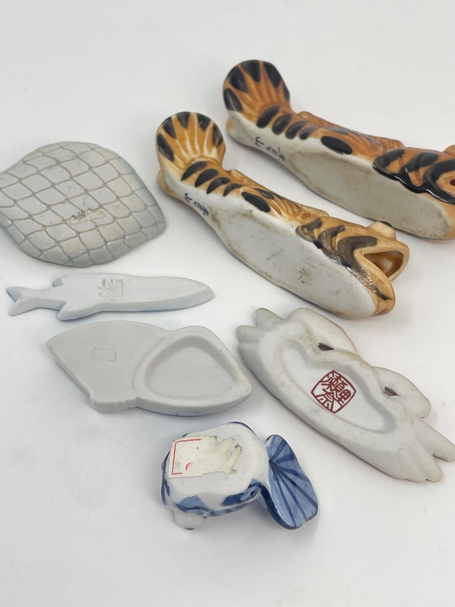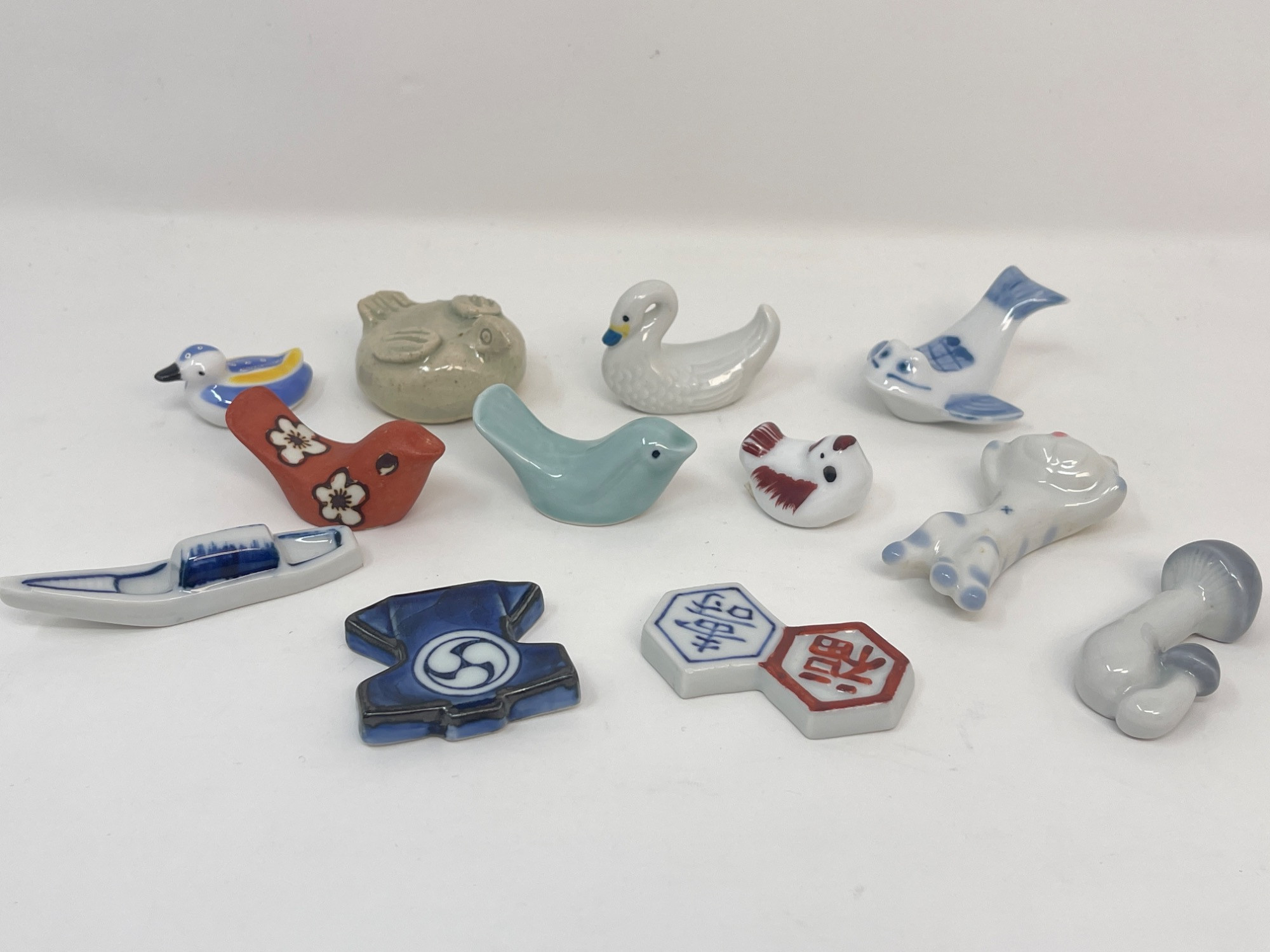 Lot # 144 - Assorted Japanese Porcelain Chopstick Rests & Wooden Miniatures