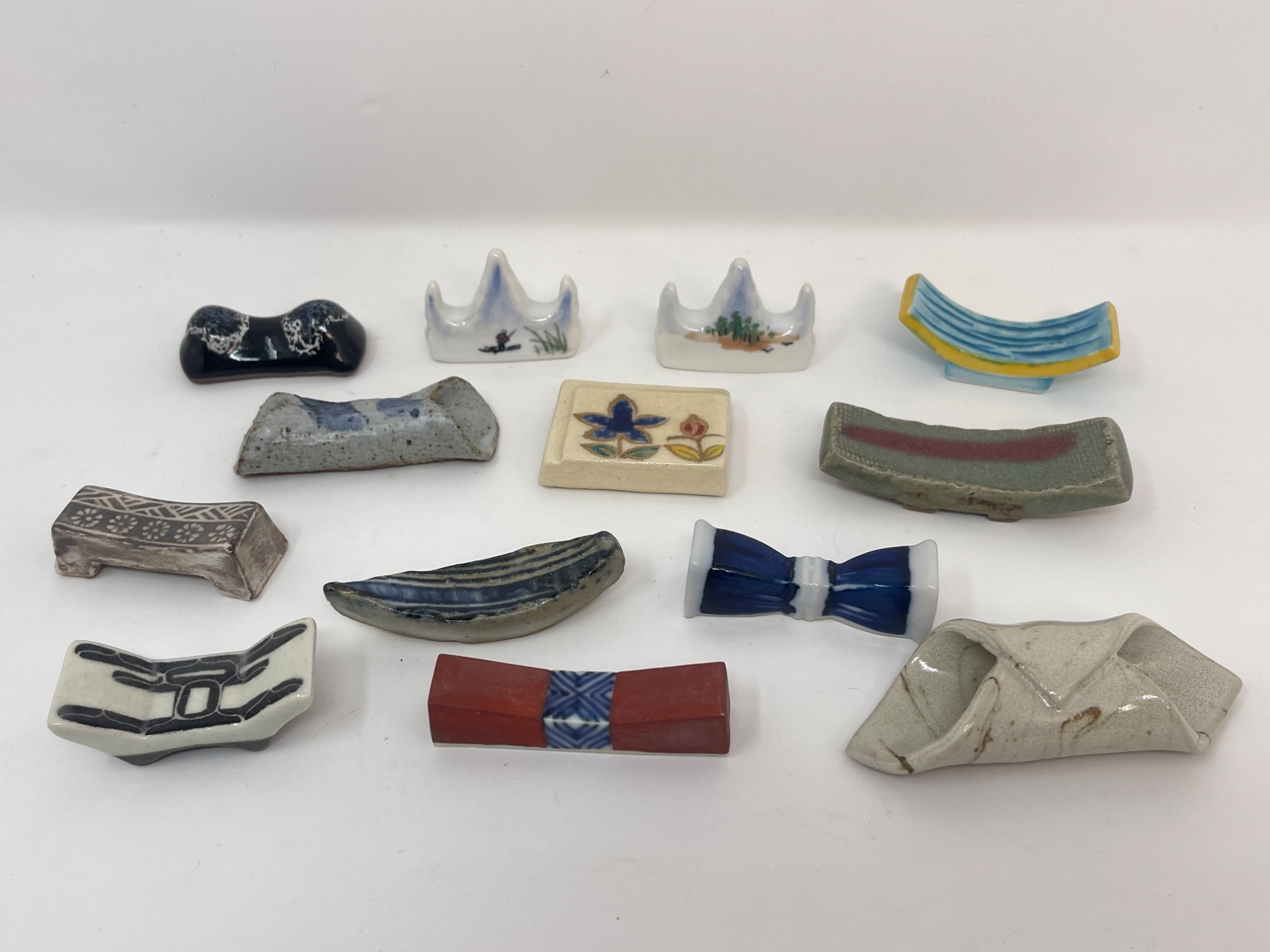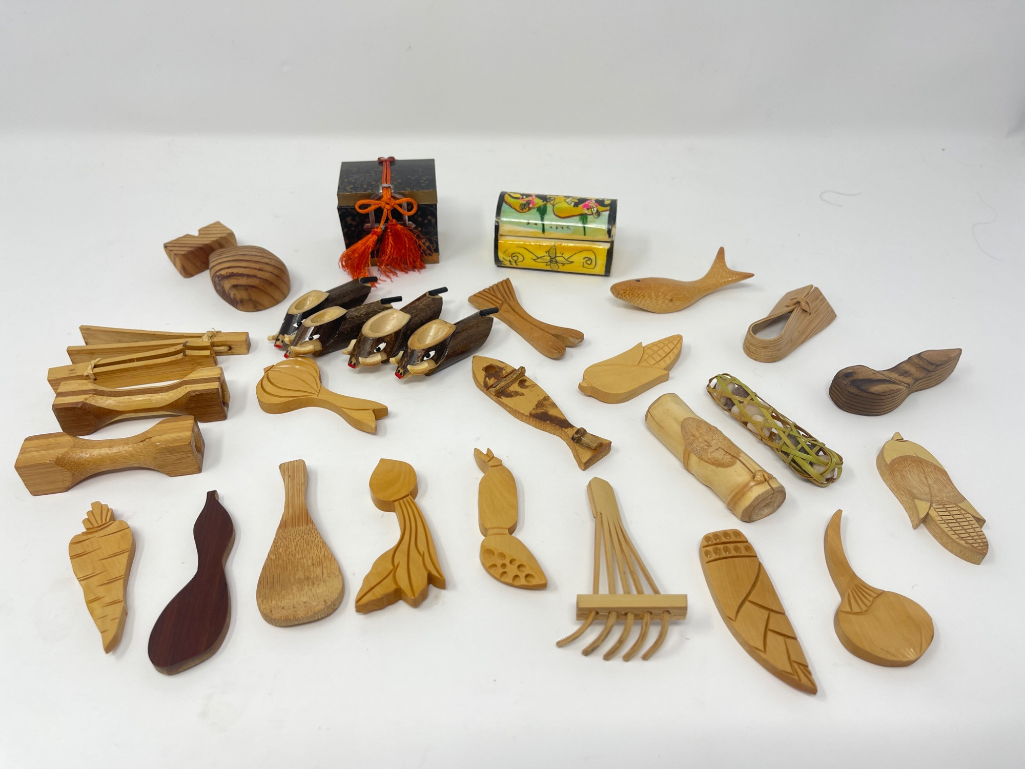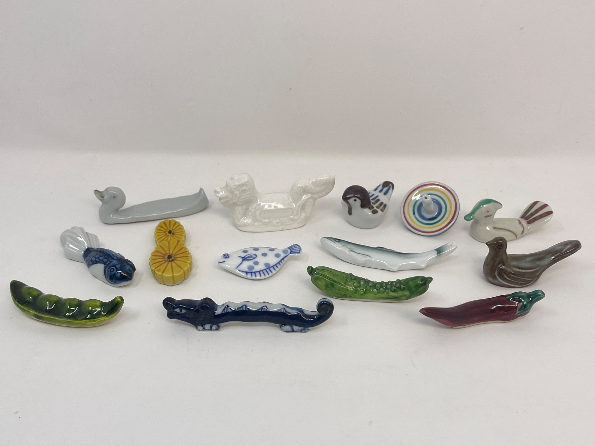 Lot # 144 - Assorted Japanese Porcelain Chopstick Rests & Wooden Miniatures