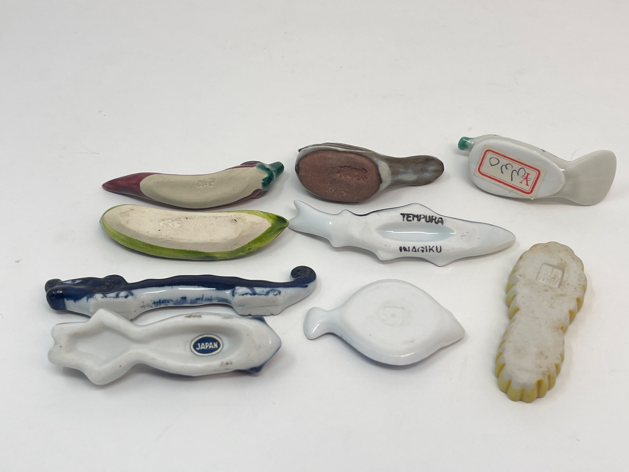 Assorted Japanese Porcelain Chopstick Rests & Wooden Miniatures