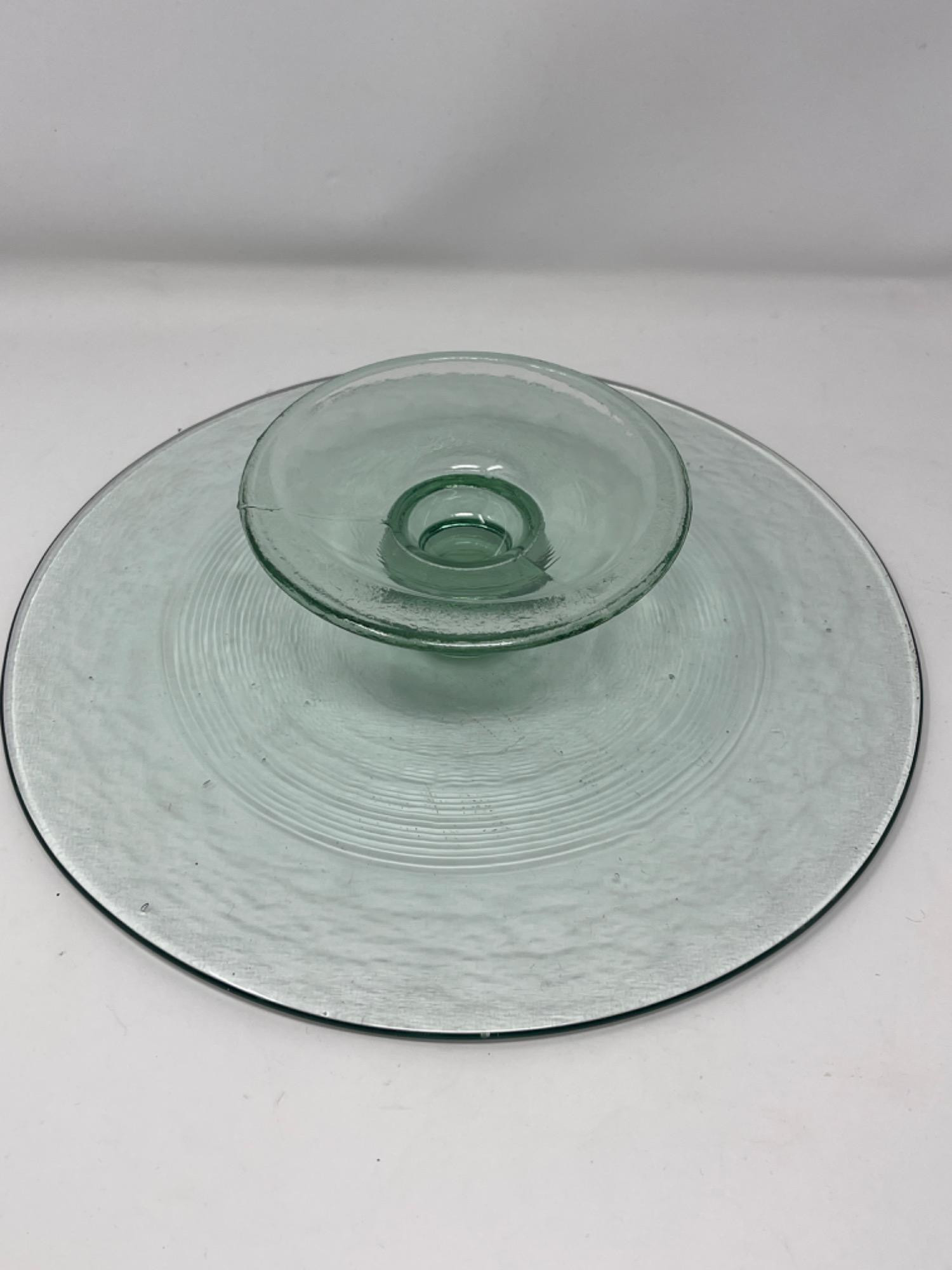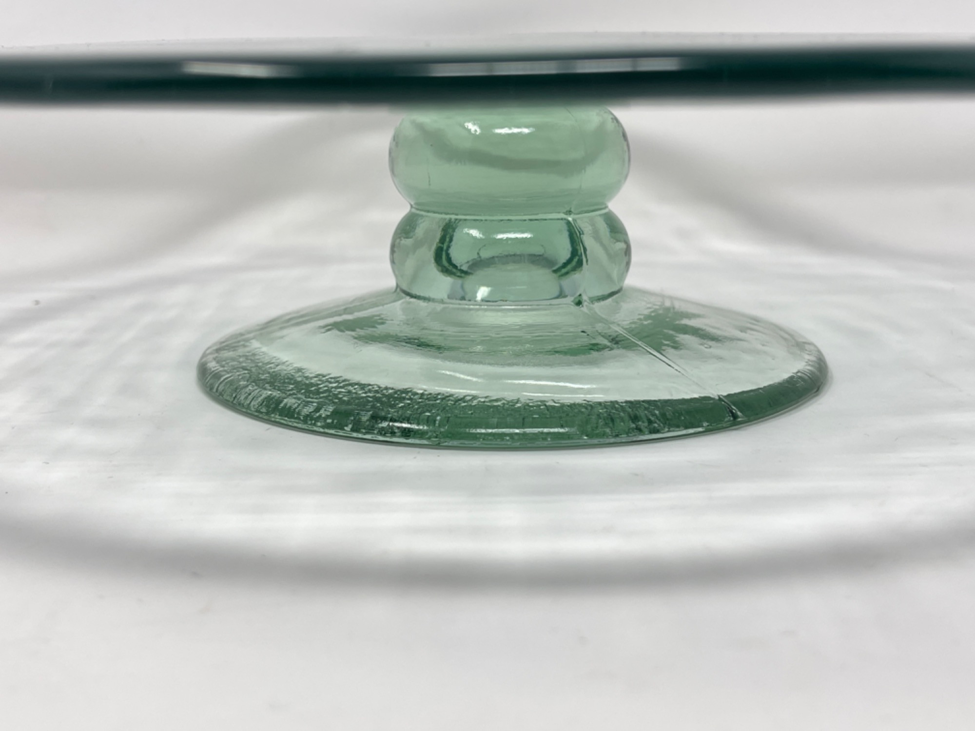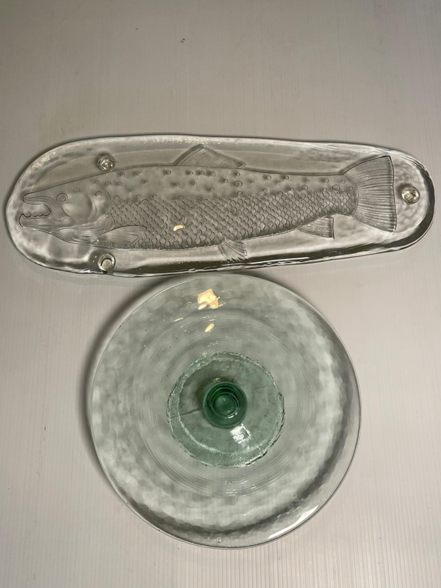 Lot # 173 - Thick Glass Clear Fish Platter and Green Cake Plate