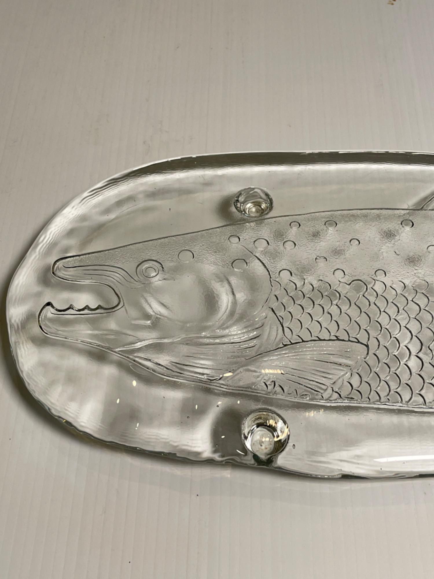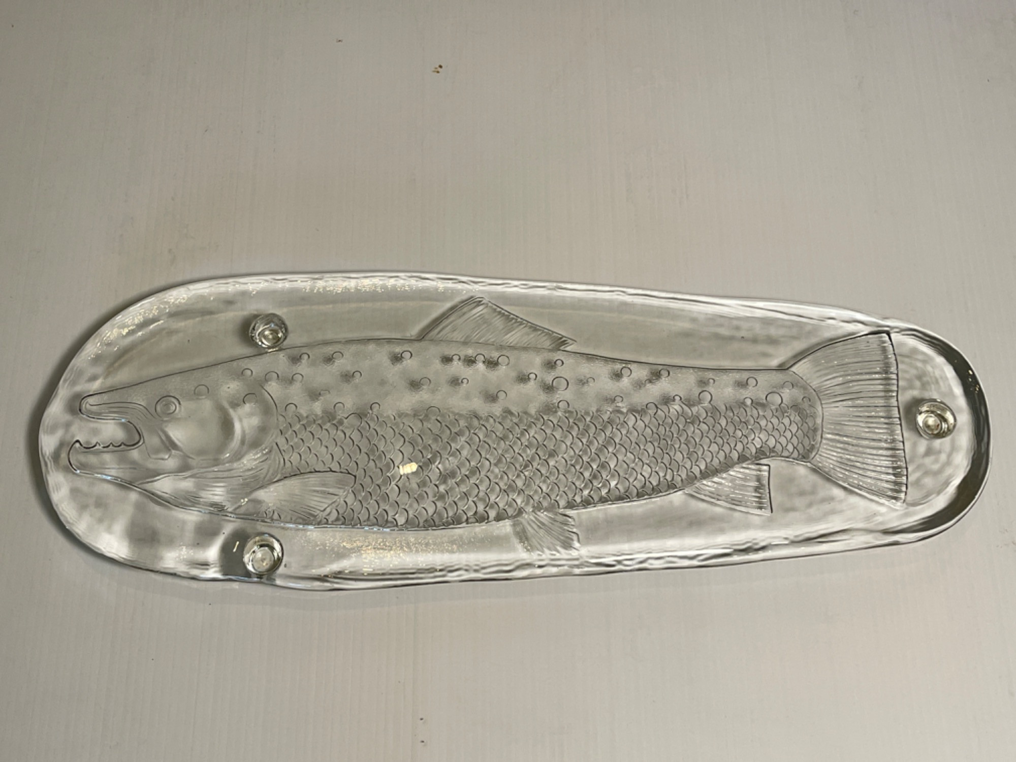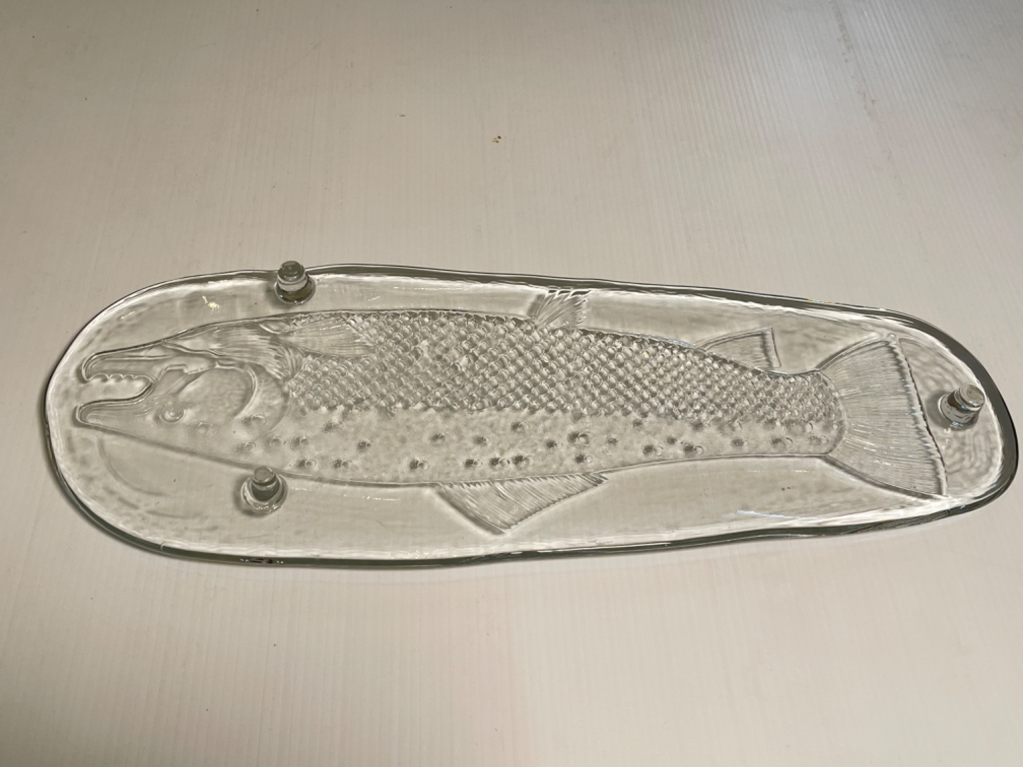 Lot # 173 - Thick Glass Clear Fish Platter and Green Cake Plate