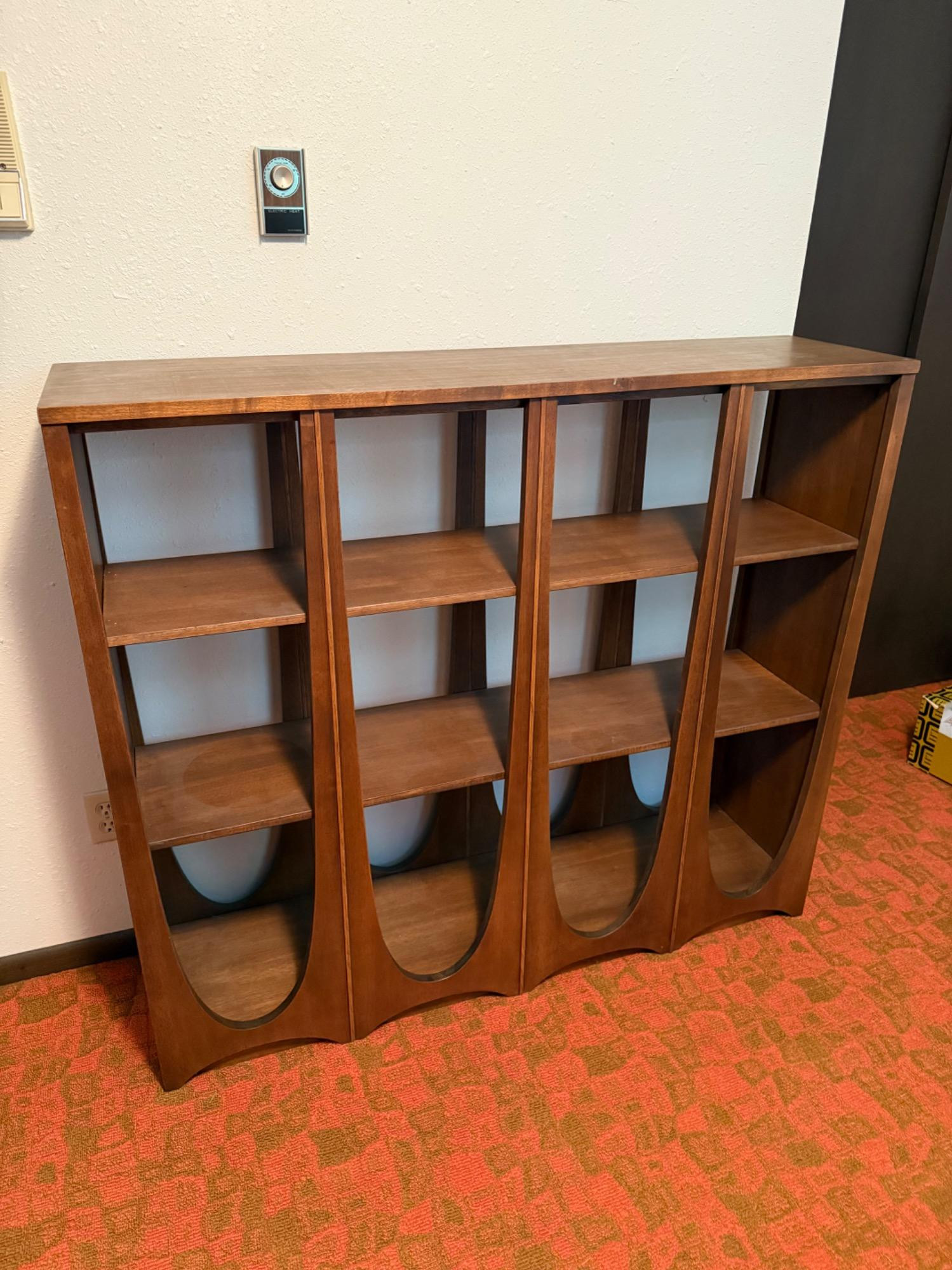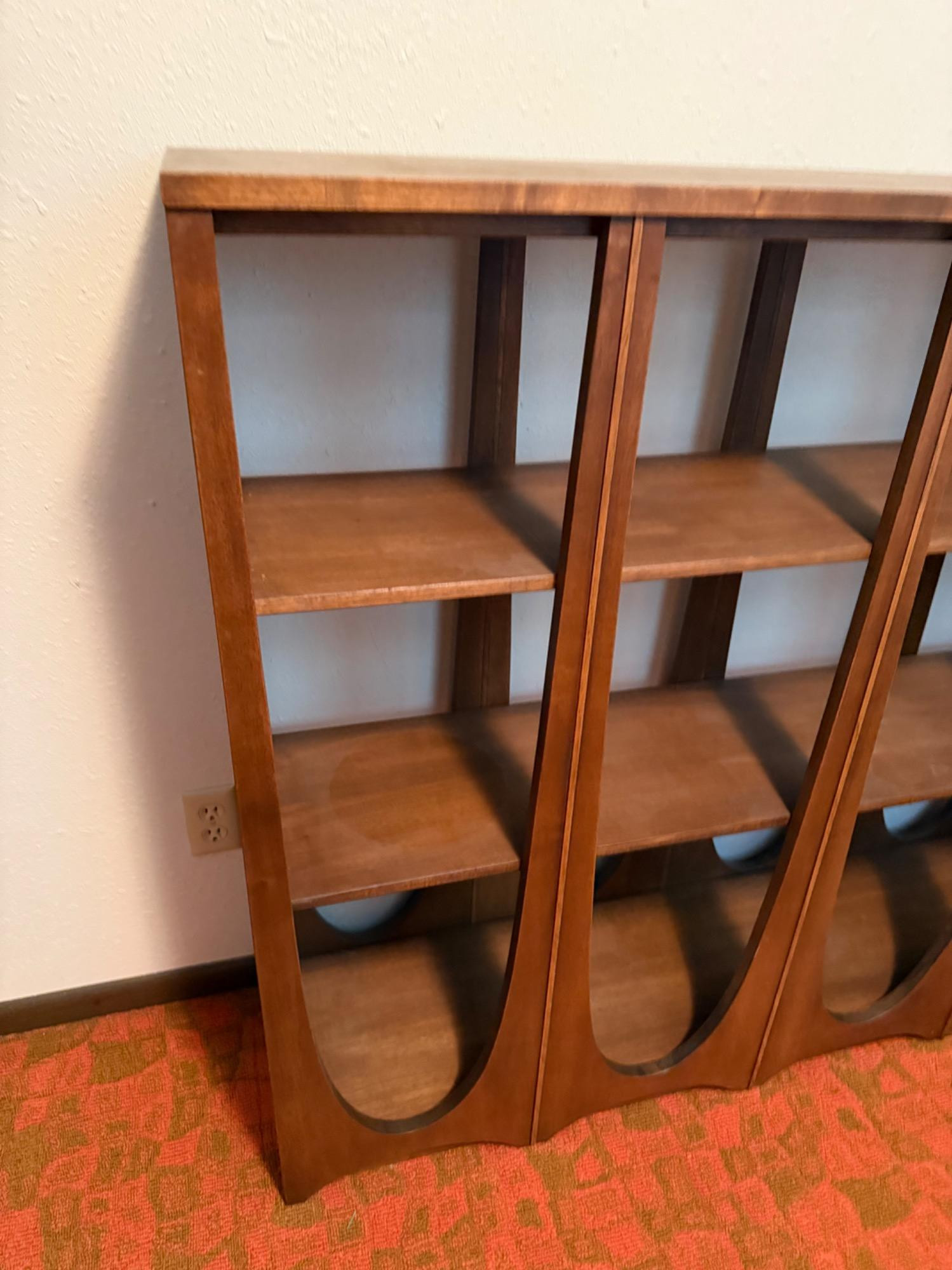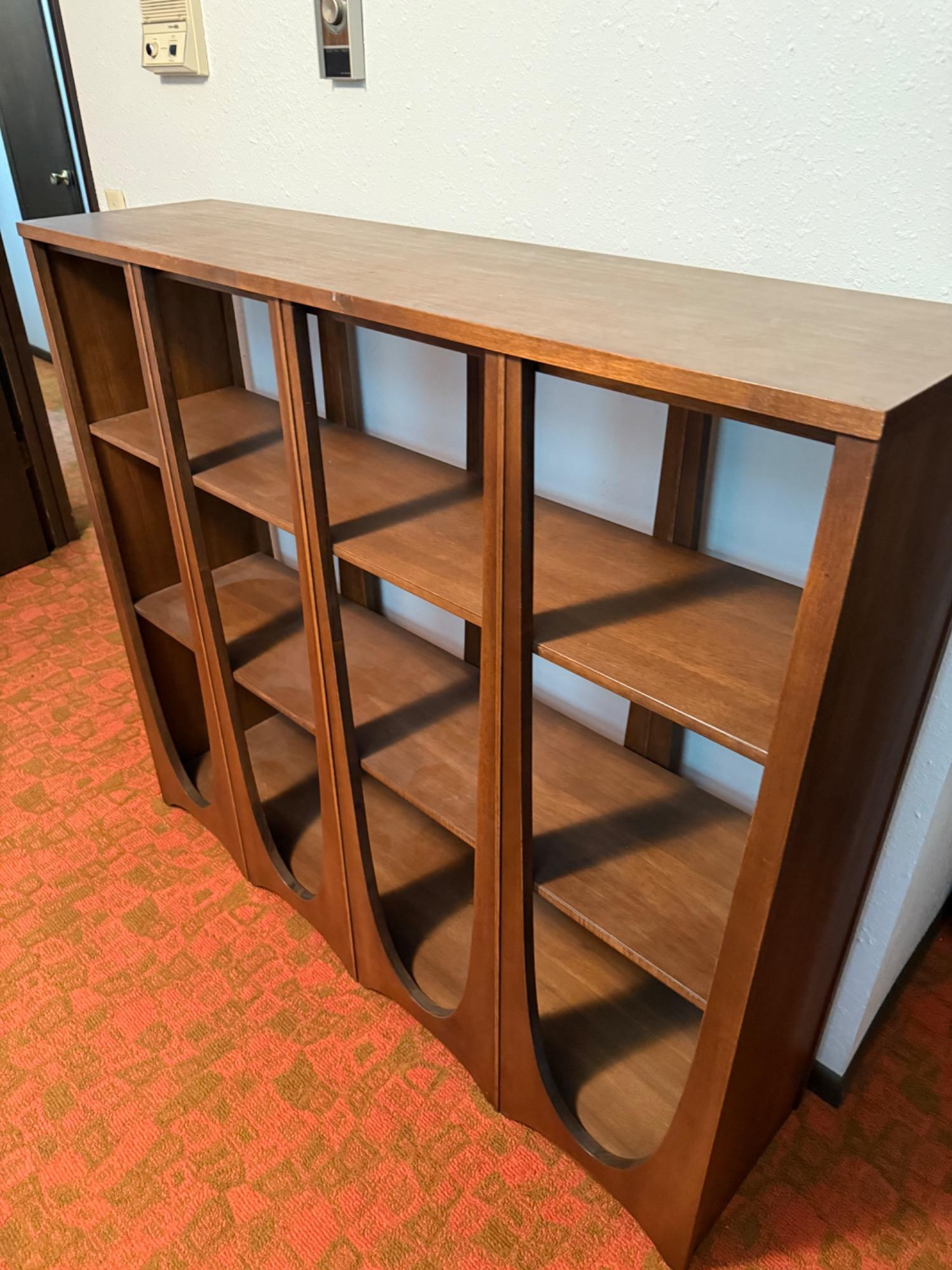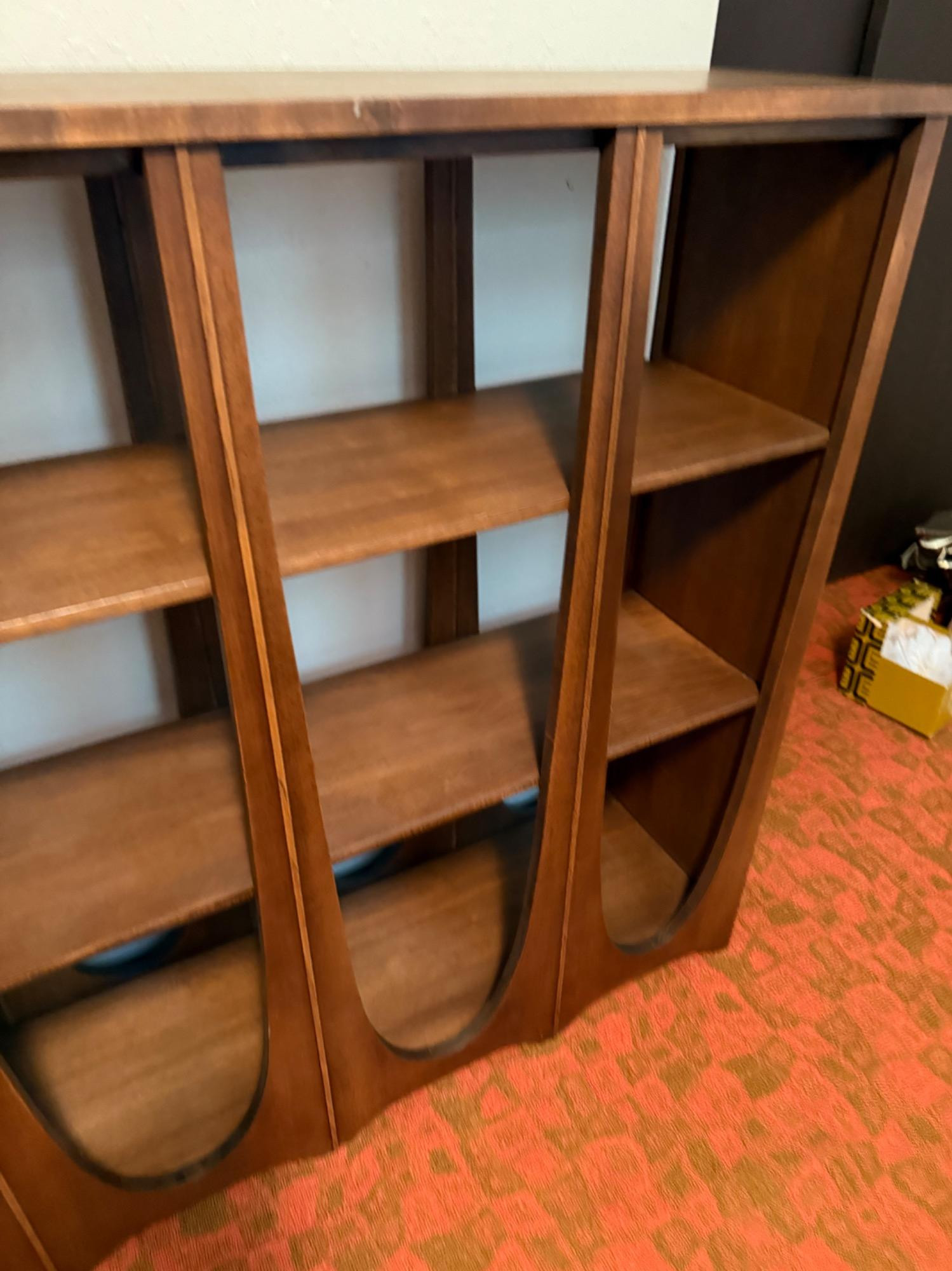 Broyhill Brasilia MCM Room Divider – Iconic Sideboard & Hutch Set. This Broyhill Brasilia Mid-Century Modern (MCM) room divider is a highly sought-after collector’s piece, featuring the signature sculptural arches that define the Brasilia collection. Crafted from rich walnut, this two-piece set seamlessly blends style and functionality. Sideboard: 54"W x 17"D x 27"T – Features louvered doors for sleek, enclosed storage. Hutch: 52"W x 46"T x 13.5"D – Open shelving with Brasilia’s iconic curved details, ideal for displaying décor or collectibles. This versatile set serves as a room divider, display hutch, or storage credenza, making it a perfect statement piece for MCM interiors. Market Value & Investment Potential: A similar piece sold on Invaluable.com for $2,900 USD Currently being offered on 1stDibs for $9,500 USD (source) Bidding on this lot is an agreement that: (1.) You will have 2 capable, able-bodied persons to lift and load at a minimum. (2.) You will bring a hand truck and/or any other tools needed to remove this item. If these steps are not followed your item will be forfeited and no refund given.
