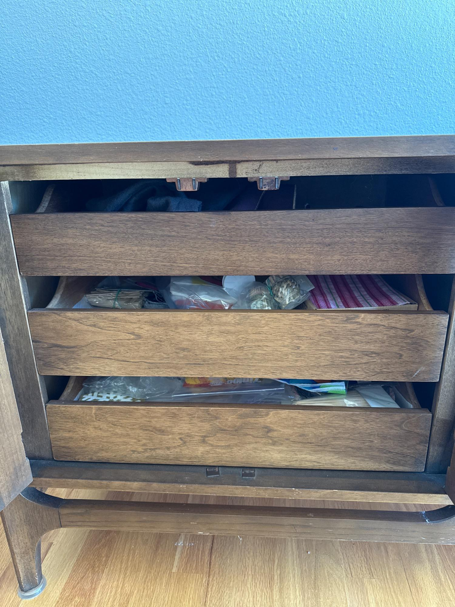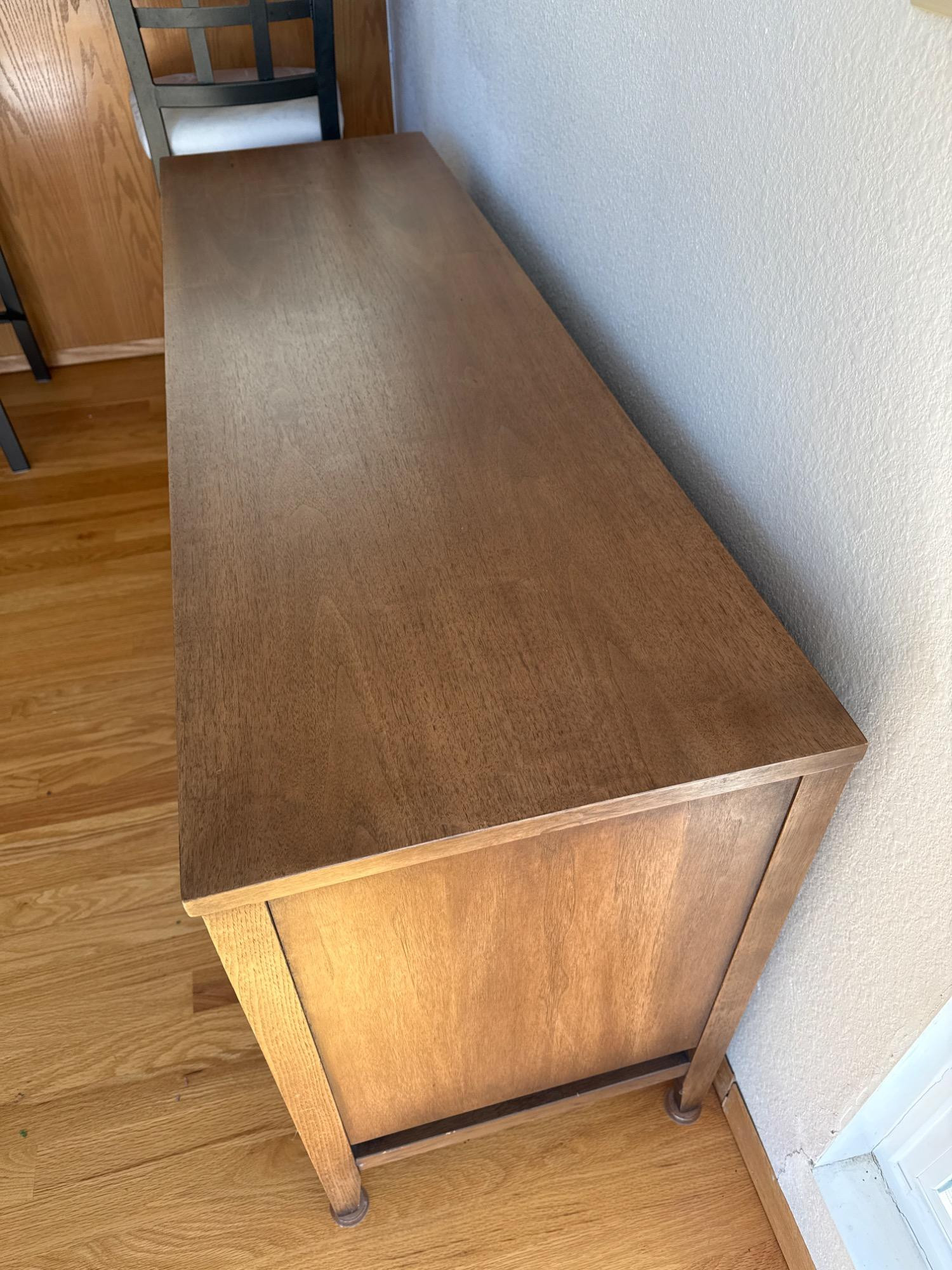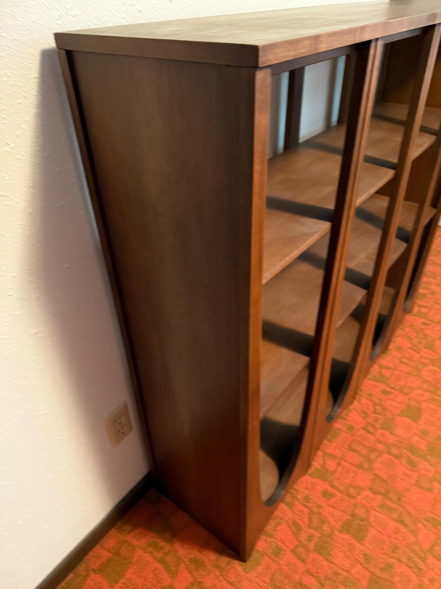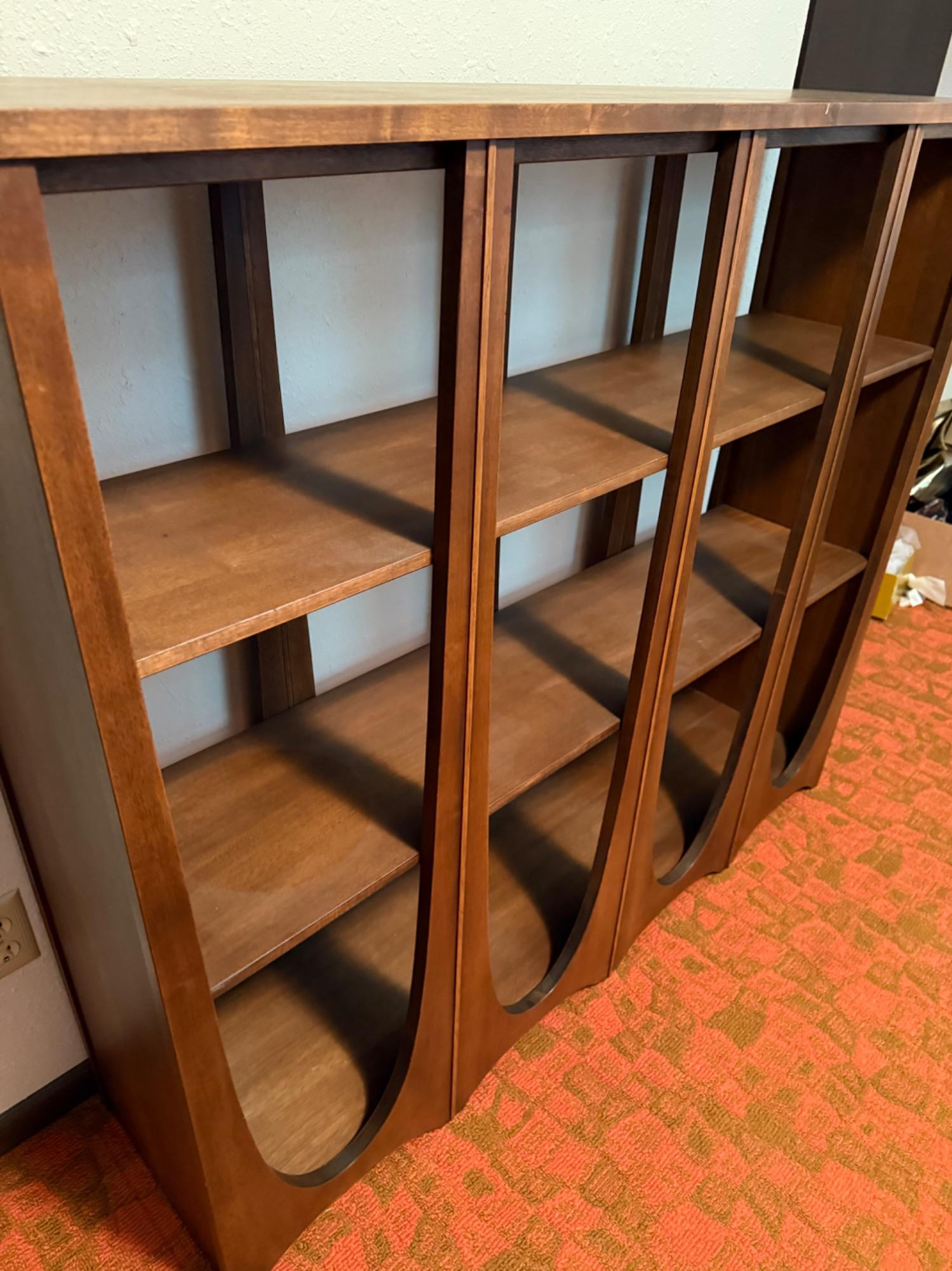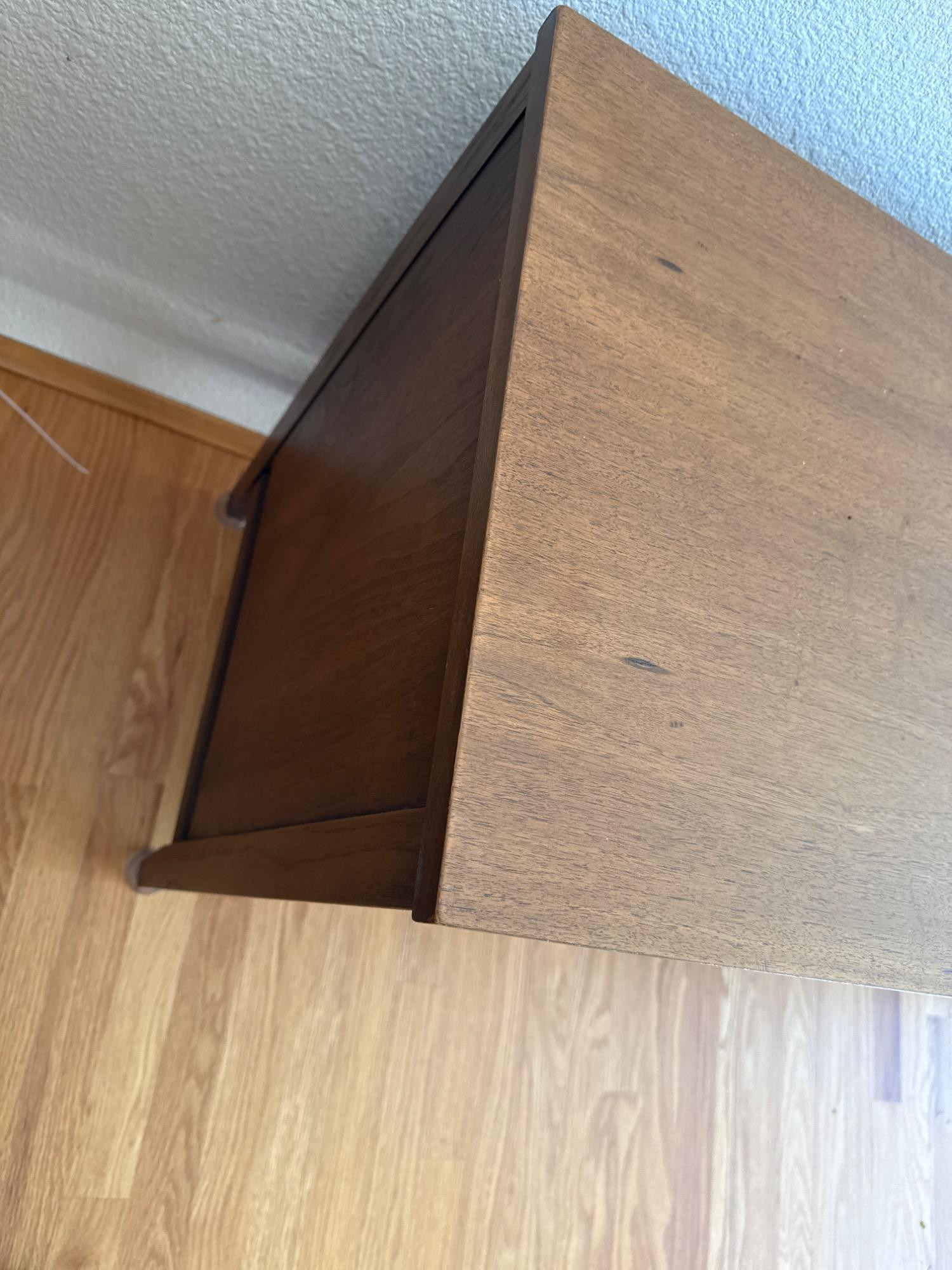 Broyhill Brasilia MCM Room Divider – Iconic Sideboard & Hutch Set. This Broyhill Brasilia Mid-Century Modern (MCM) room divider is a highly sought-after collector’s piece, featuring the signature sculptural arches that define the Brasilia collection. Crafted from rich walnut, this two-piece set seamlessly blends style and functionality. Sideboard: 54"W x 17"D x 27"T – Features louvered doors for sleek, enclosed storage. Hutch: 52"W x 46"T x 13.5"D – Open shelving with Brasilia’s iconic curved details, ideal for displaying décor or collectibles. This versatile set serves as a room divider, display hutch, or storage credenza, making it a perfect statement piece for MCM interiors. Market Value & Investment Potential: A similar piece sold on Invaluable.com for $2,900 USD Currently being offered on 1stDibs for $9,500 USD (source) Bidding on this lot is an agreement that: (1.) You will have 2 capable, able-bodied persons to lift and load at a minimum. (2.) You will bring a hand truck and/or any other tools needed to remove this item. If these steps are not followed your item will be forfeited and no refund given.