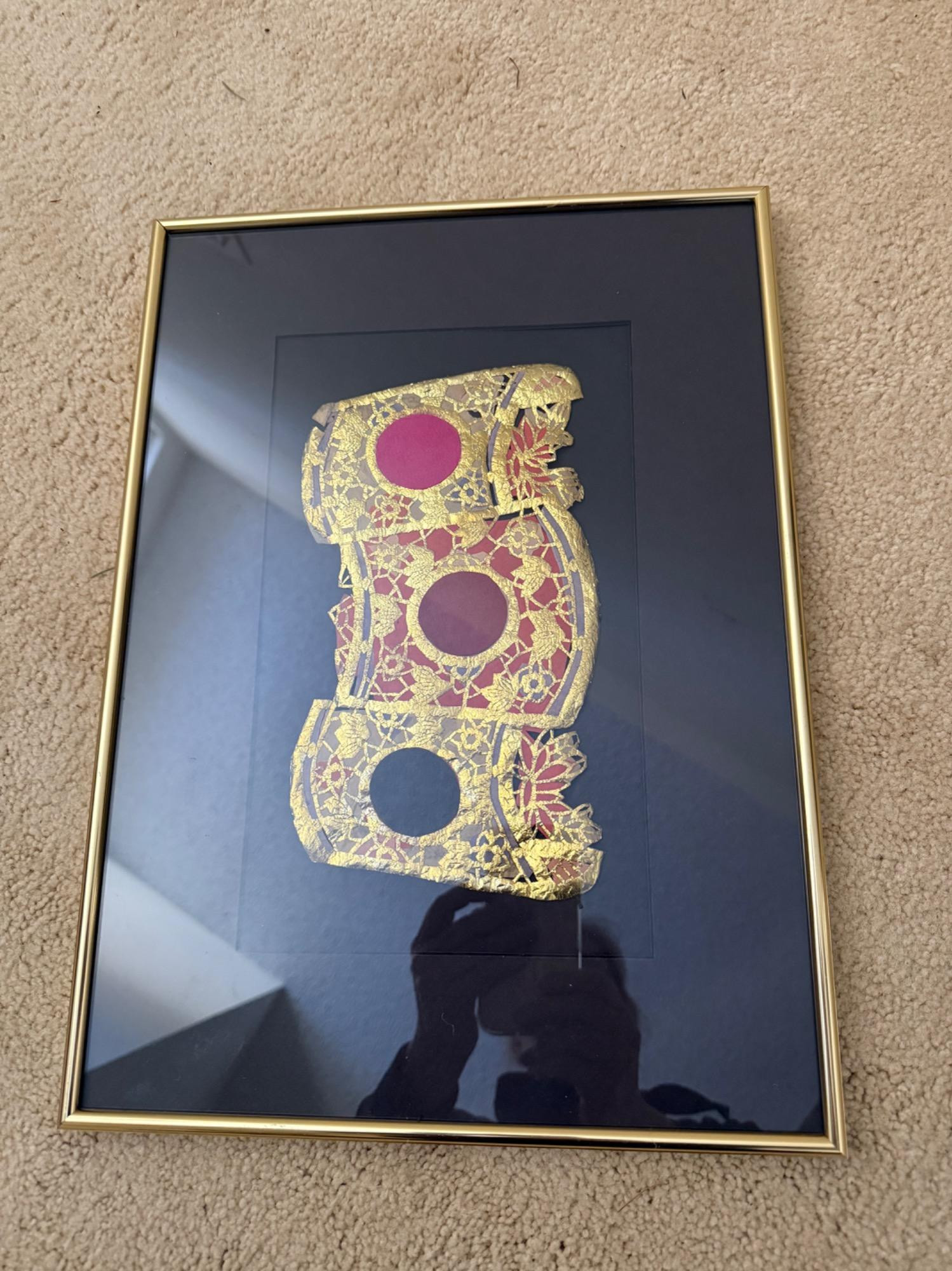 Framed Chinese Firework Label – Gold Embossed Foil (1850-1910). This handmade Chinese firework label is an ornate gold-embossed foil and painted paper artwork used between 1850 and 1910 as an advertisement for the fireworks industry. These labels were originally attached to crates of fireworks to attract buyers and were so successful that few have survived. Fireworks were commonly exploded with their packaging, making intact labels rare. The imagery reflects myth, legend, and daily life in vibrant color and shimmering gold leaf, showcasing the highly sophisticated paper craft techniques of late 19th-century China. Some workshops employed as many as 20 artisans per label, using assembly-line methods to emboss and paint these intricate designs. This framed piece serves as a historical artifact, preserving a unique aspect of Chinese cultural and artistic history. See pictures for details.