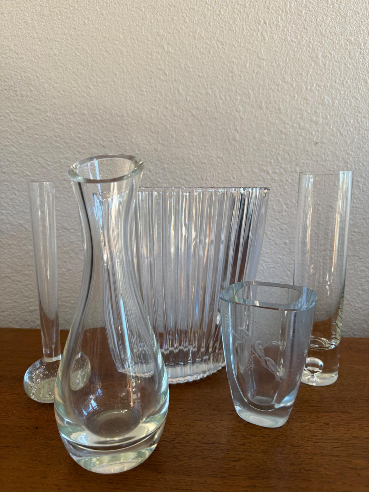 Signed Etched Glass (Kosta Boda?) and Some Other MCM Clear Glass.