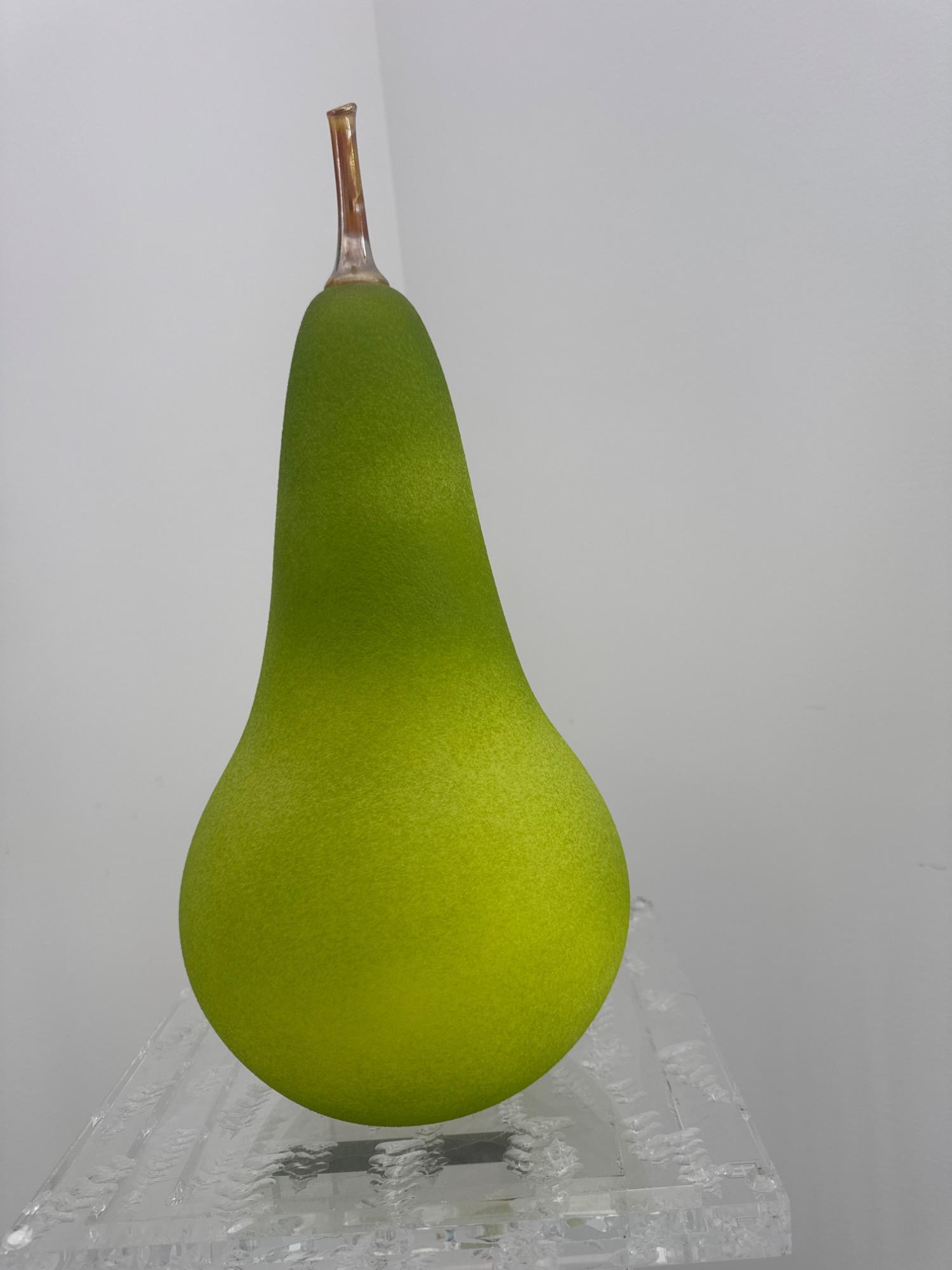 Lot # 1 - Whidbey Island Artist Robert Adamson Signed Glass Pear w/ Acryl Stand