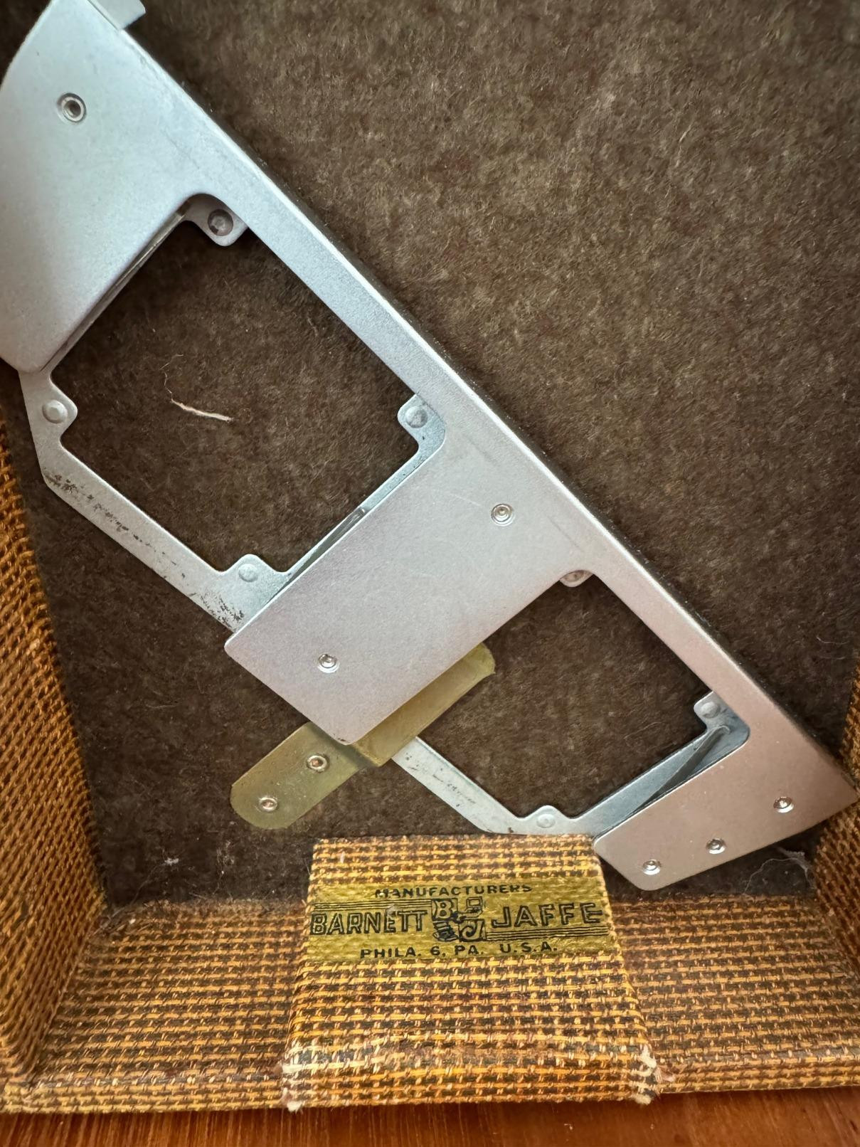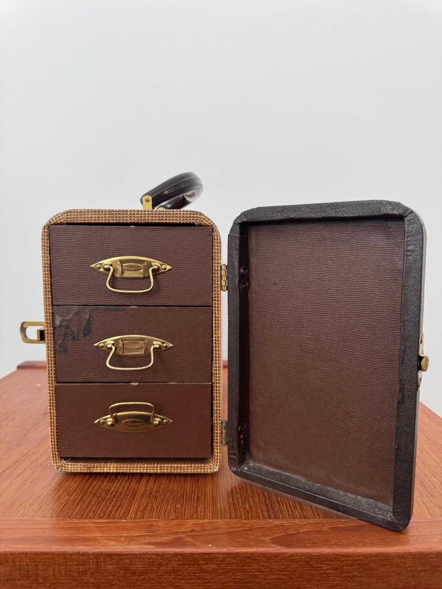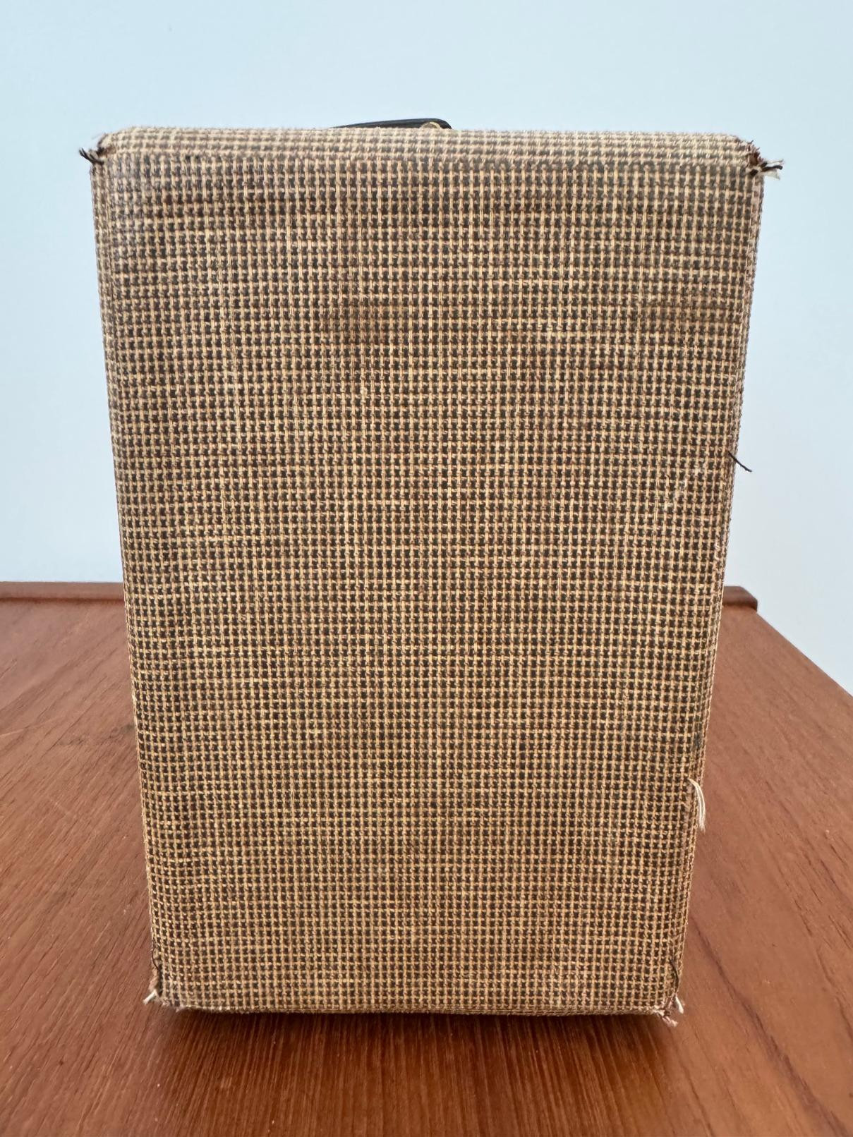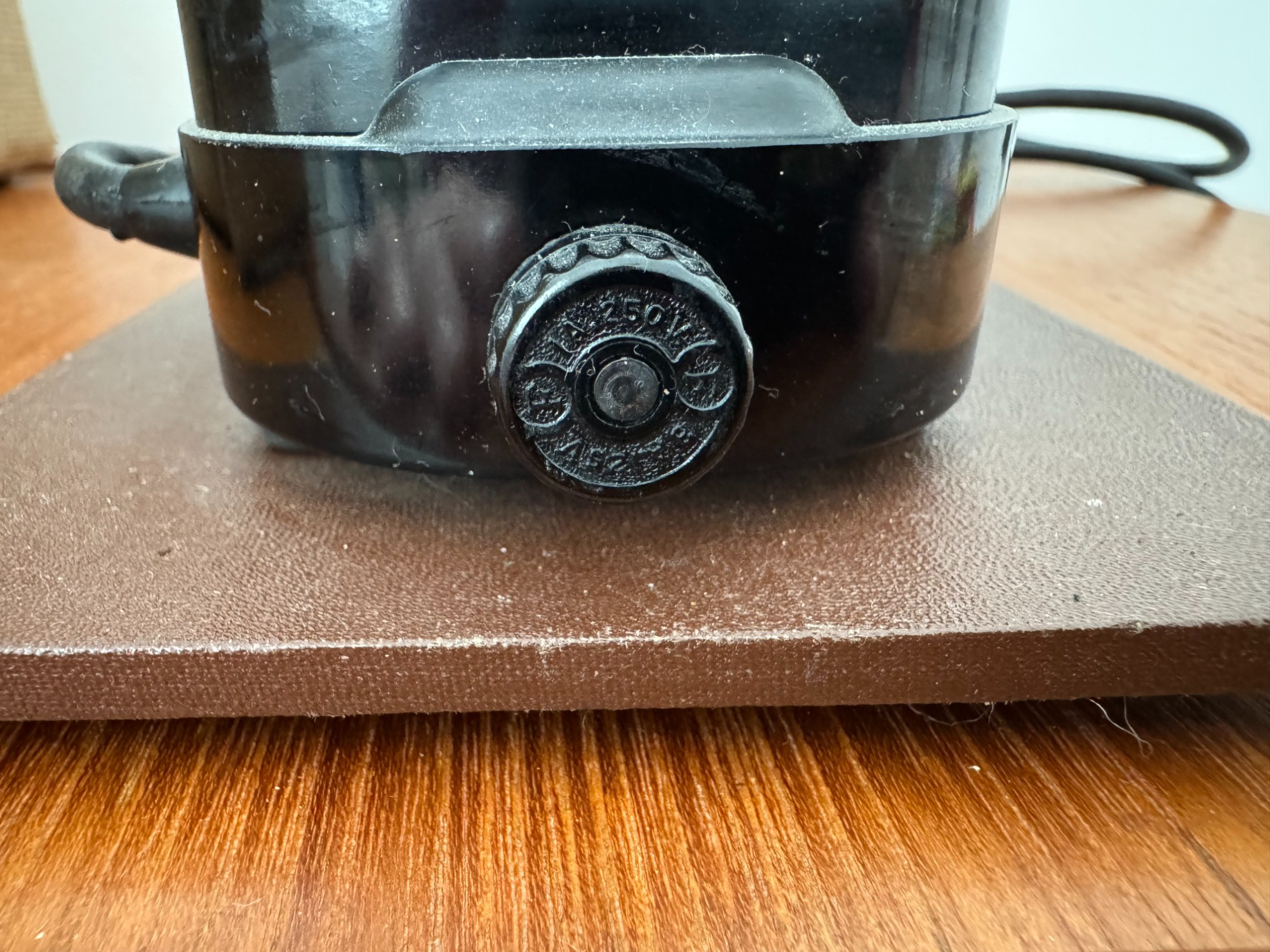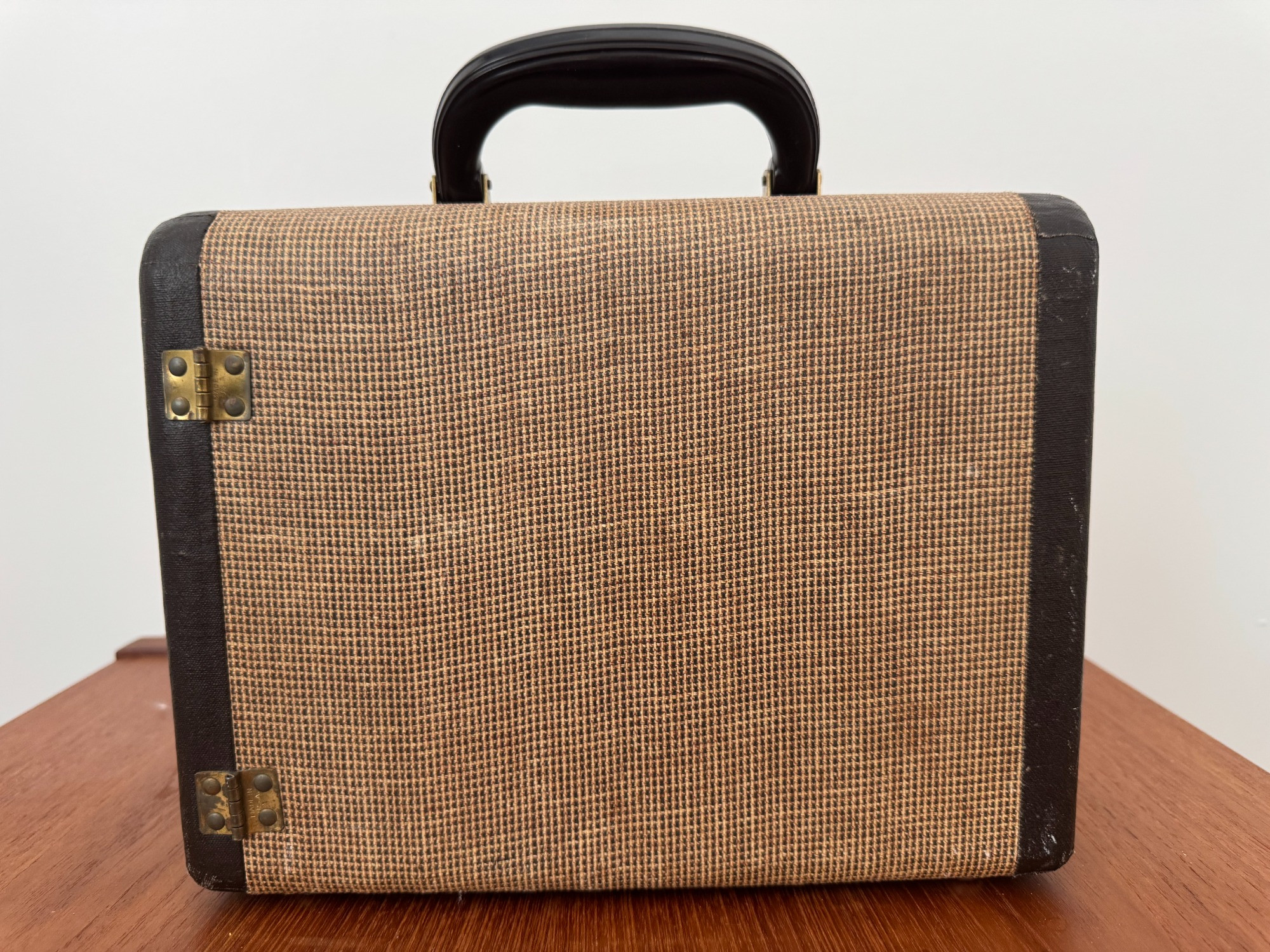The Kodaslide Projector Model 1A is a vintage slide projector produced by Eastman Kodak Company, serving as an improved version of their original Kodaslide Projector from the late 1930s. This model was designed to project 50 x 50 mm glass-mounted transparency slides, a popular format during that era. Auction includes projector with case and a case for slides. See photos for condition. Some vintage wear. Slide case has a crack on one of the drawer slides. Projector was turned on (as seen in photos) and works.