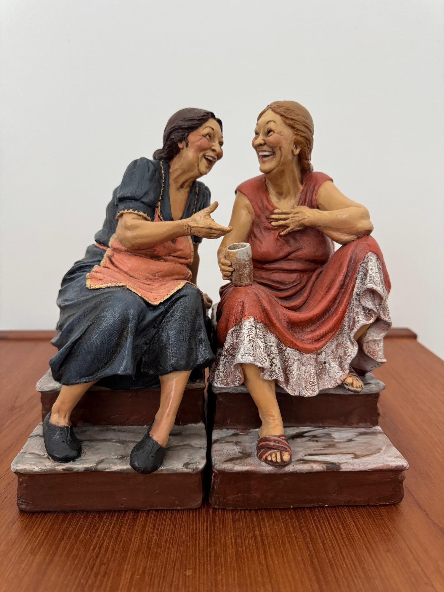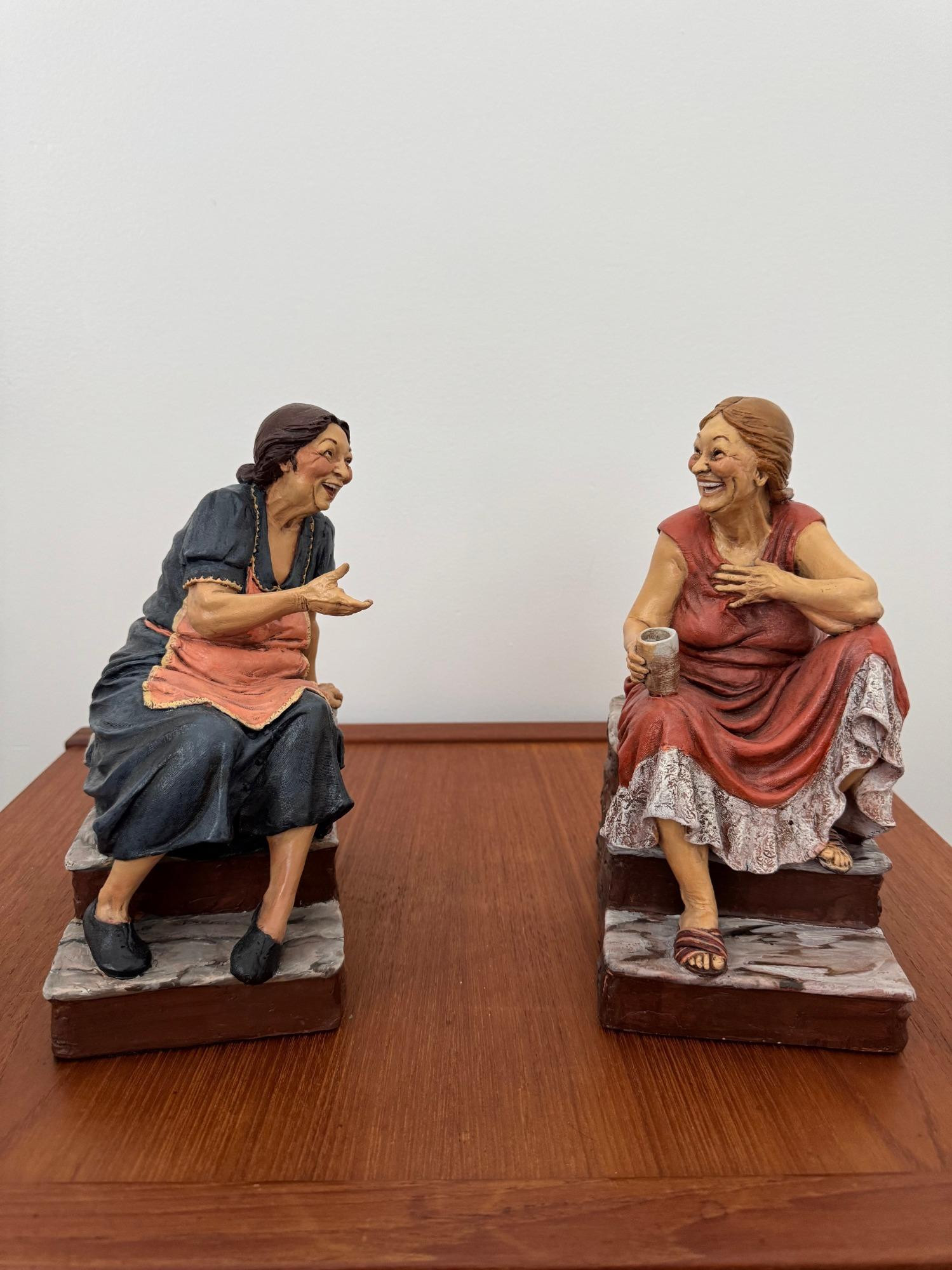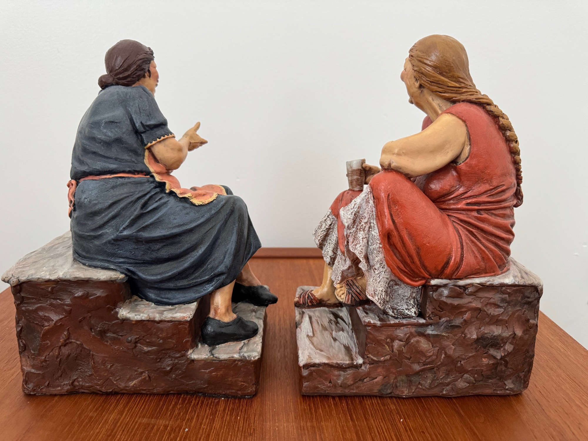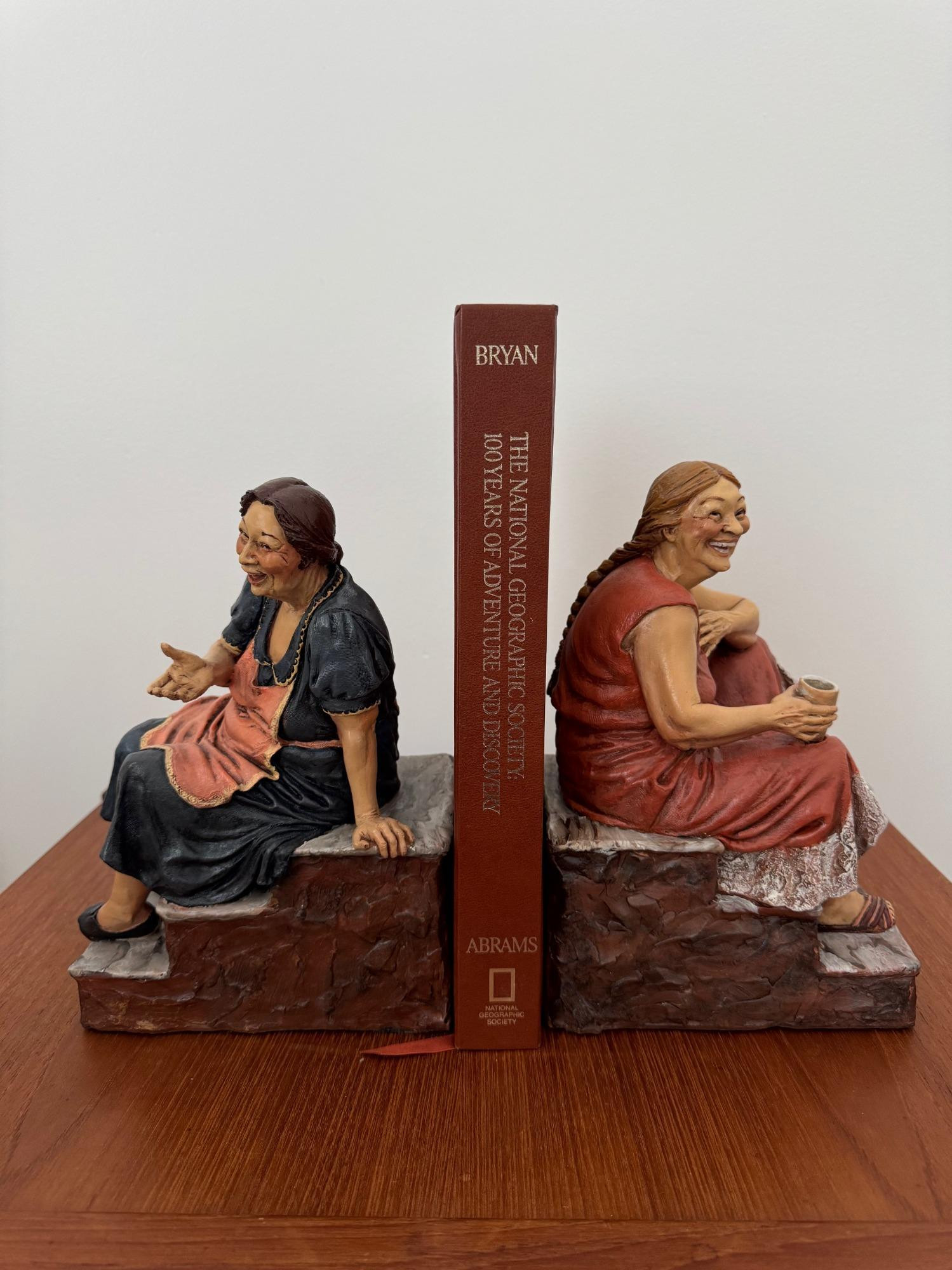 A little about the artists - Shelley and Michael Buonaiuto met while studying sculpture and painting at the University of Massachusetts in 1968. After a few vagabond years, their spiritual search led them to the study of Gurdjieff, a Greek Caucasian spiritual master, at Chardavogne Barn in New York - there Shelley began to study pottery, making creches and small figures. Sophie - Edition 179/2000 Millie - Edition 200/2000 Condition of both appear to be great. These can be used as book ends as well. https://alittlecompany.net/resin-sculpture/ https://www.studiosevenarts.com/a-little-company/sophie-on-step Retail - $215.00 a piece. Together $430.00