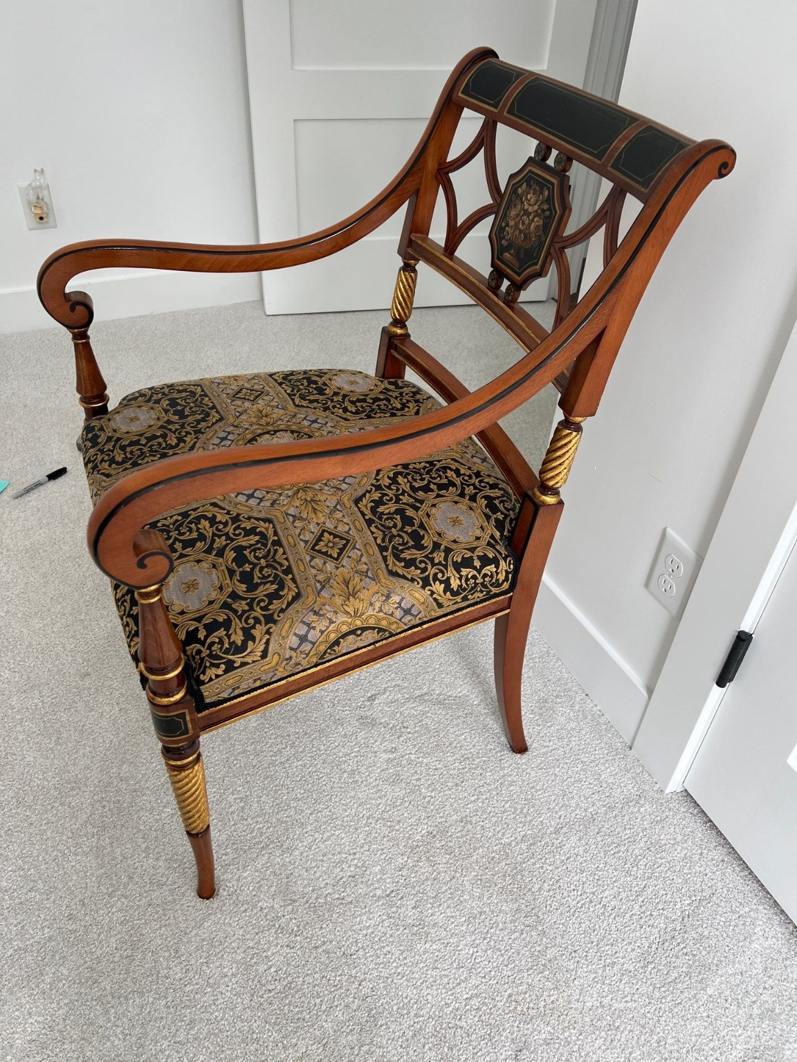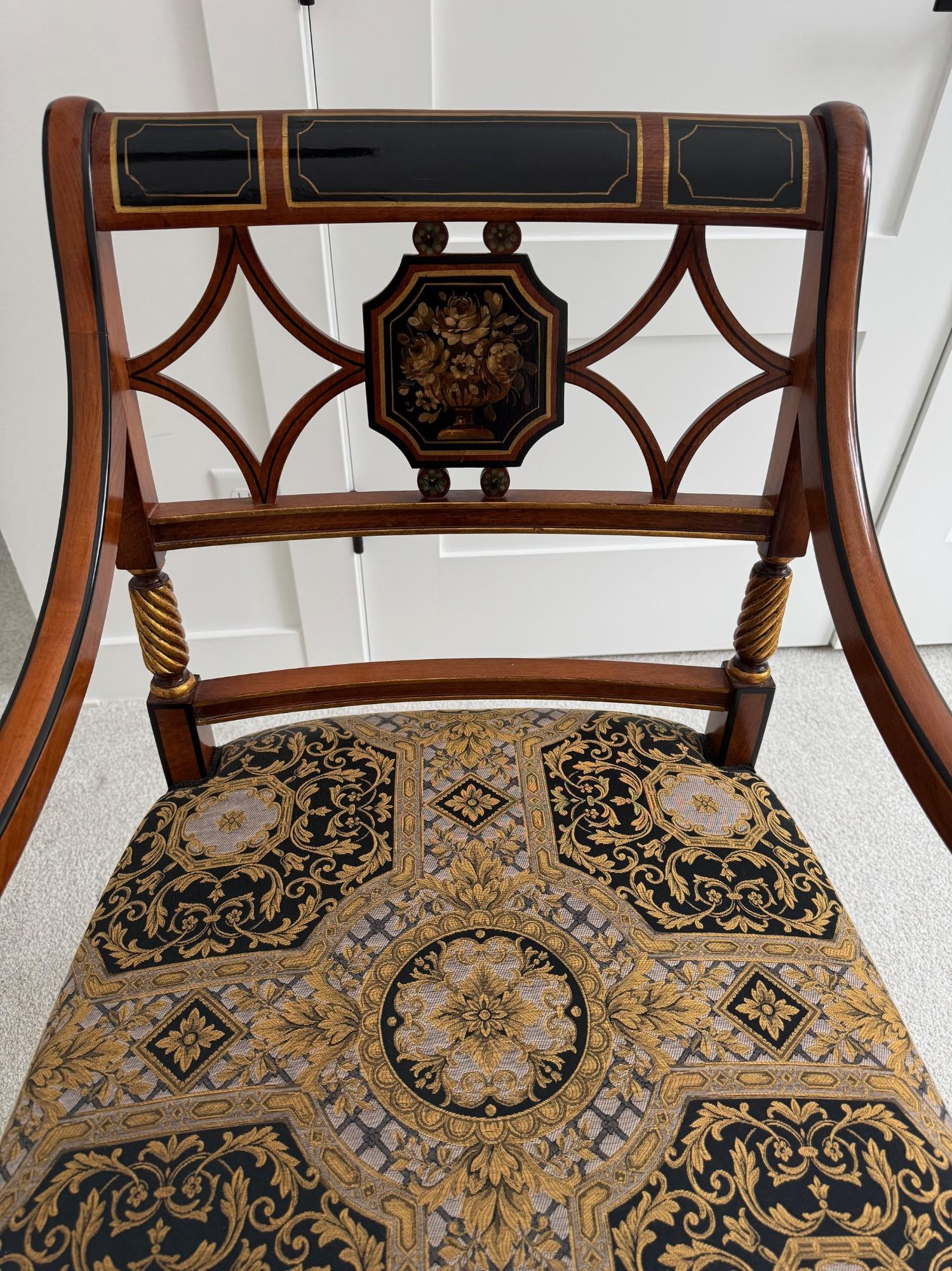 Possible Versace Chair. Please Inspect photos before bidding. Owner stated this is a Versace chair and was bought in Los Angeles. There is no provenance provided. The Versace Chair is a luxurious, high-end piece of furniture designed by the renowned Italian fashion house Versace. Known for their bold and opulent designs, Versace's furniture collection reflects the same lavish aesthetics that the brand is famous for in the world of fashion. The Versace Chair is often seen as a statement piece that combines luxury, comfort, and high art.