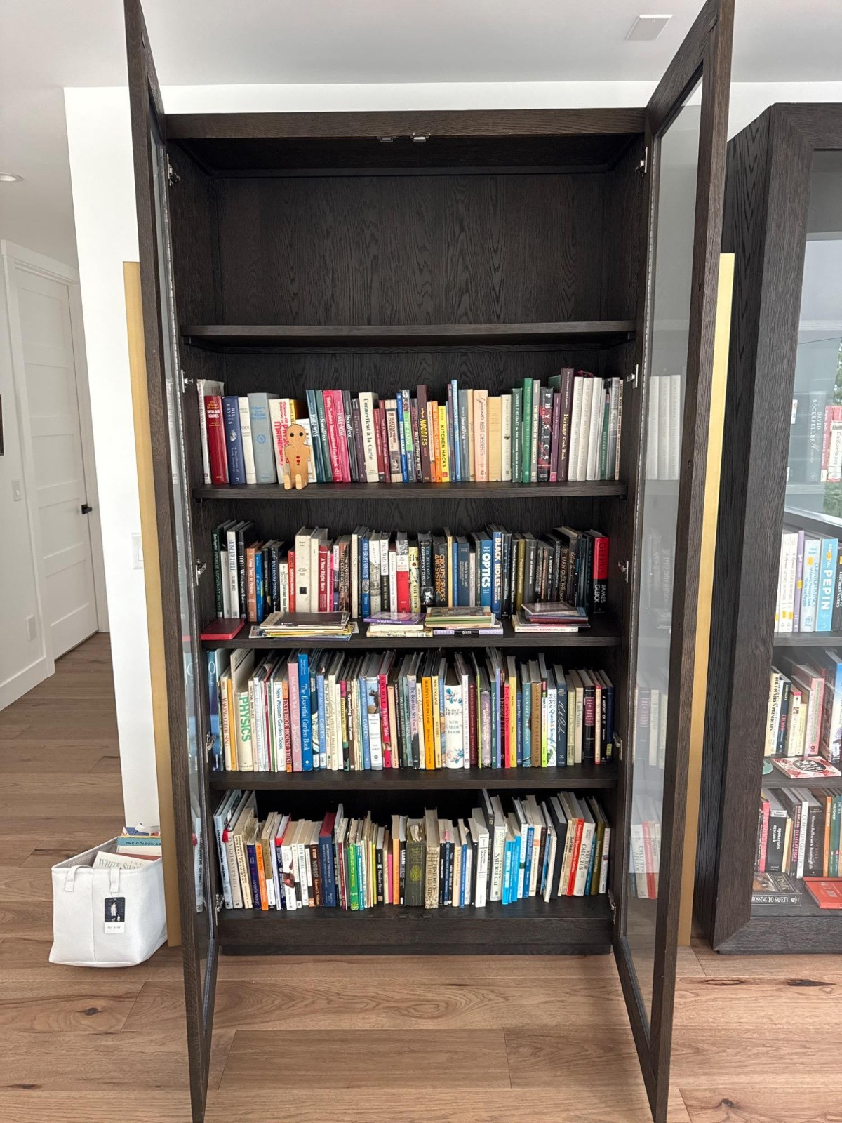 The Restoration Hardware Machinto Glass Double-Door Cabinet / Bookcase is a high-end piece of furniture known for its elegant, industrial design. Restoration Hardware (RH) is renowned for its sophisticated, timeless styles, often blending vintage influences with modern aesthetics. Contents of bookcase are NOT included, but books will be available for sale on-site at pick up. NOTE: This piece matches Lot #50.
