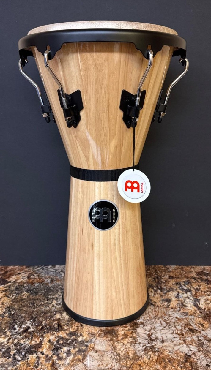 The MEINL Headliner Series 12.5" Wood Djembe is a high-quality percussion instrument designed for both beginners and experienced players. Crafted from Siam Oak, this djembe features a natural high-gloss finish and a sleek hourglass shape, enhancing both its aesthetic appeal and playing comfort. 25.25" height and 12.5" diameter Black powder coated hardware Original MEINL style tuning brackets 8mm strong tuning lugs Hand-selected goat heads 2 mm rounded rims Retail - $219.00 https://www.guitarcenter.com/MEINL/Headliner-Series-Wood-Djembe-Natural-1250-in-1363617289894.gc