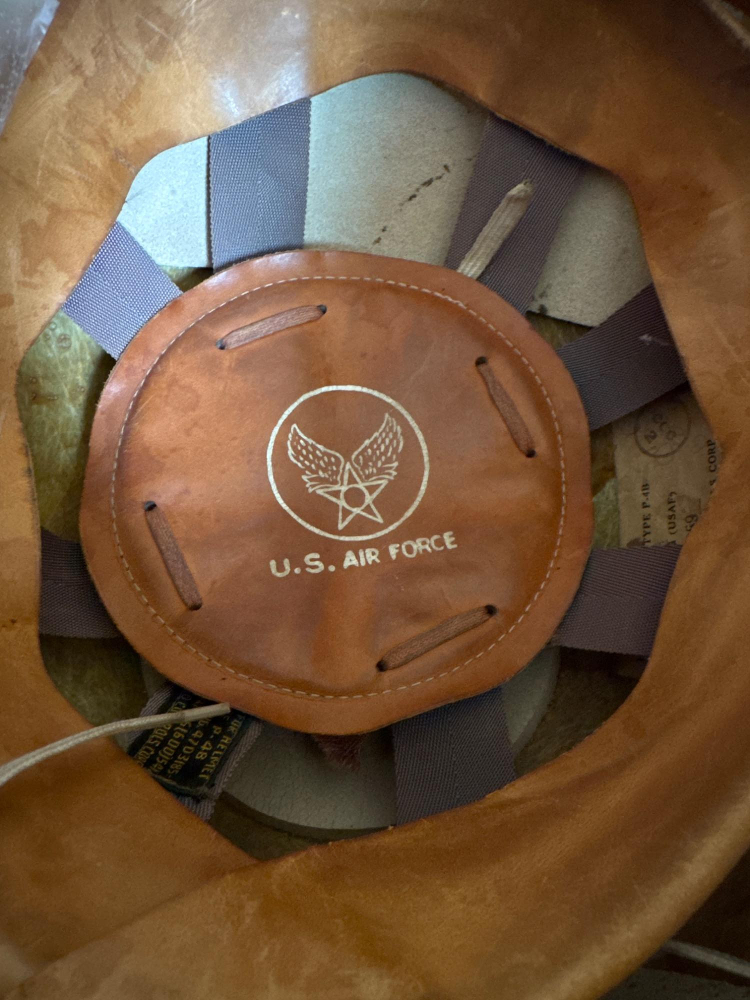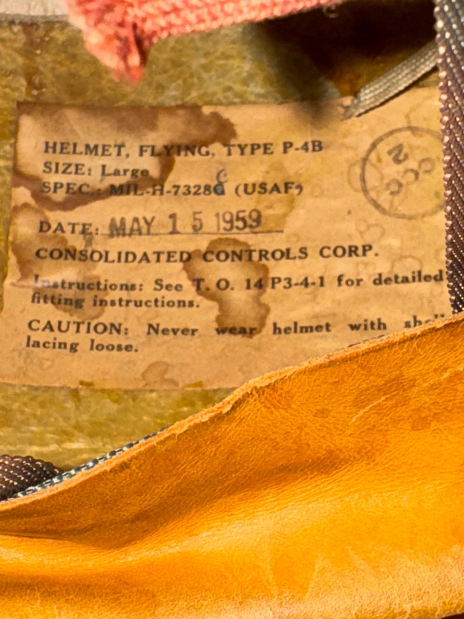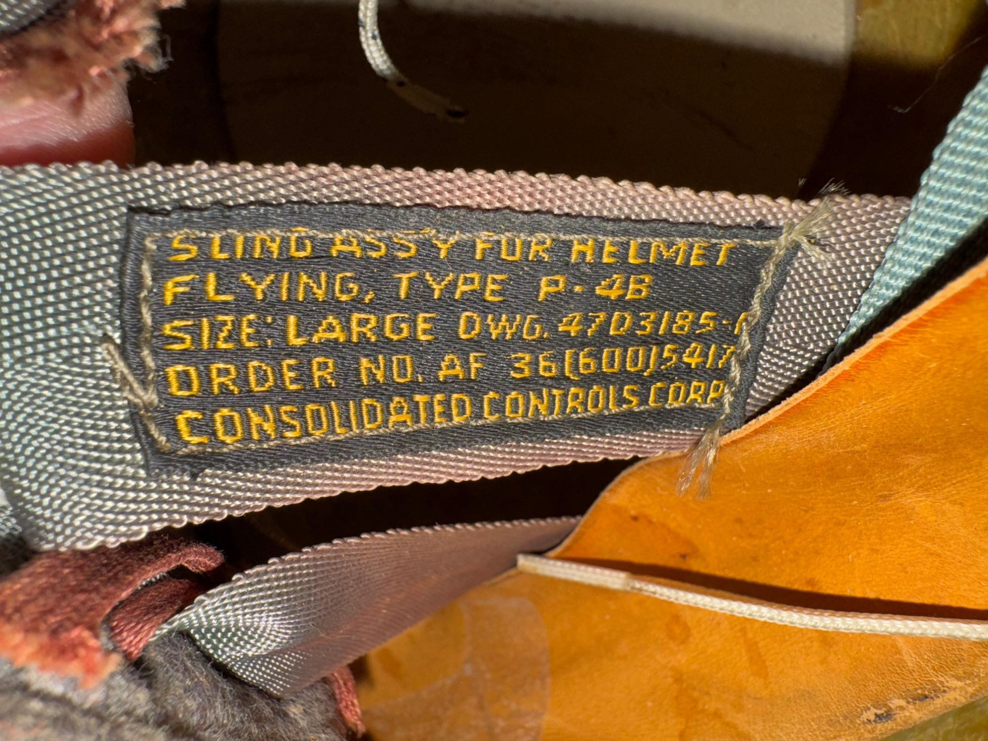 This helmet is a Type P-4B flight helmet, which was used primarily by U.S. military pilots in the 1950s and early 1960s. The P-4B helmet was a later version of the P-series helmets developed by the U.S. Air Force for jet fighter pilots during the early Cold War era. It was commonly used by fighter pilots, bomber crews, and some helicopter pilots before being replaced by more advanced models like the P-4C and later HGU-series helmets. The P-4B was an upgrade from the P-3 and earlier models, featuring improved visor mechanisms and padding for better comfort and protection. Retail - $150.00 - $300.00