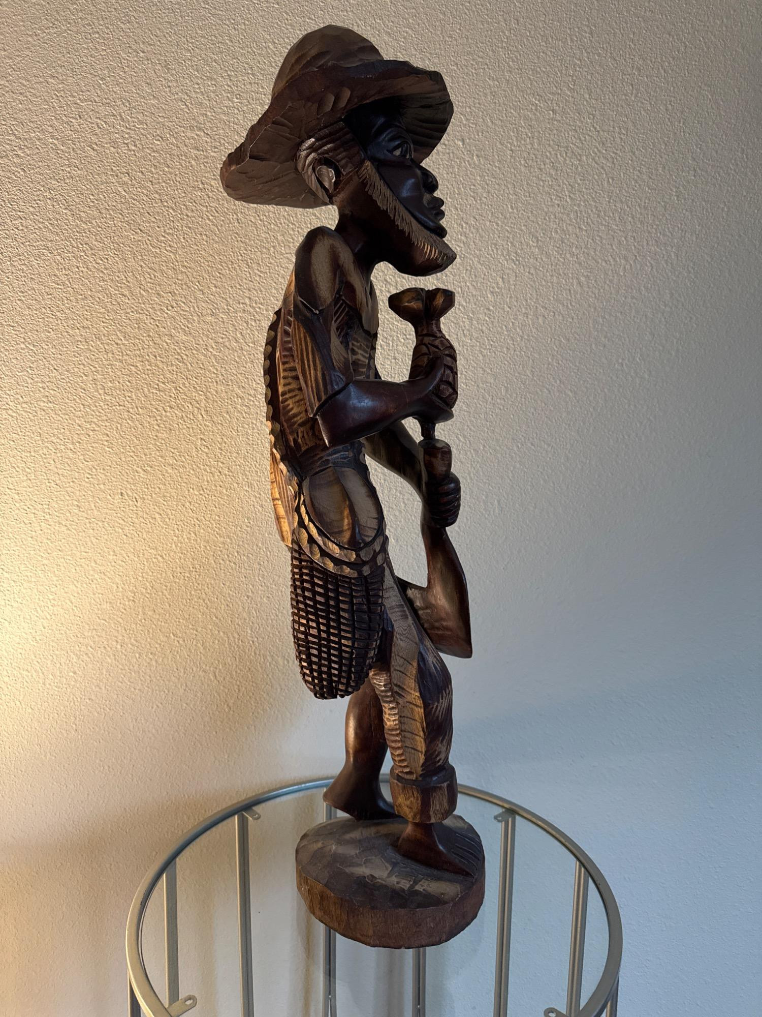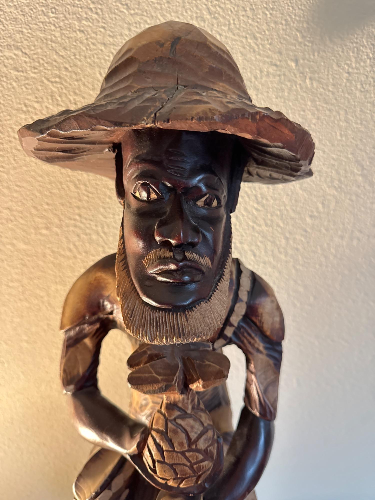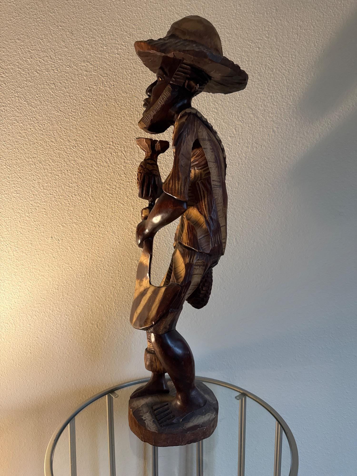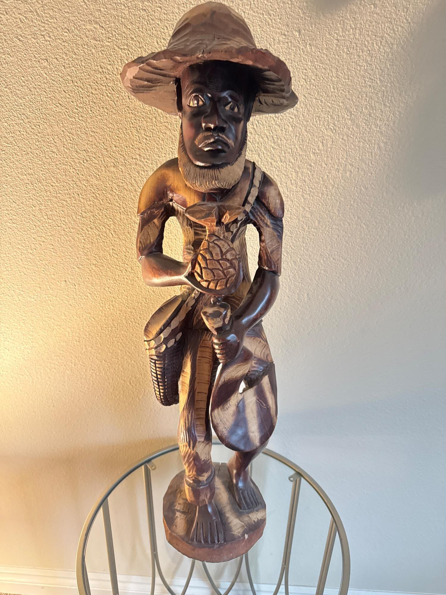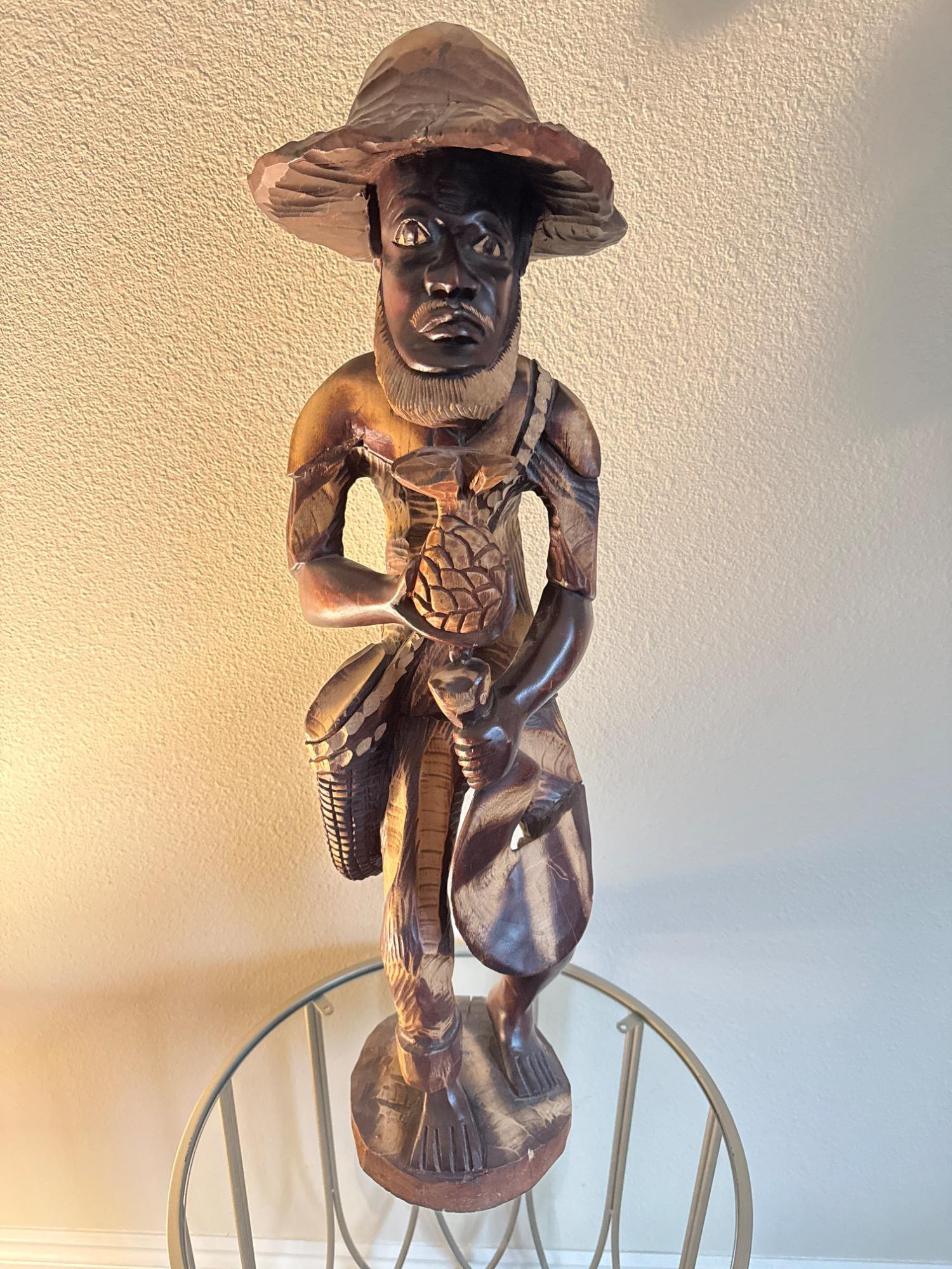 Lot # 20 - Wood Carving of An Haitian Man Holding a Pineapple