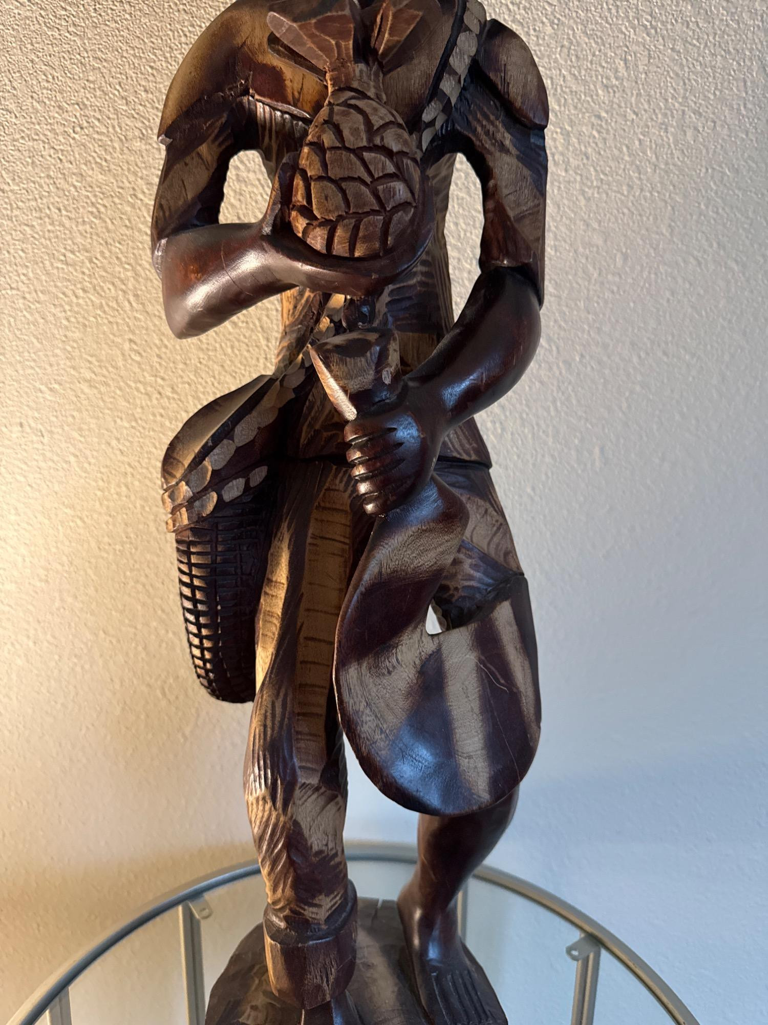 Wood Carving of An Haitian Man Holding a Pineapple that was made in Haiti. Unsure of the type of wood.