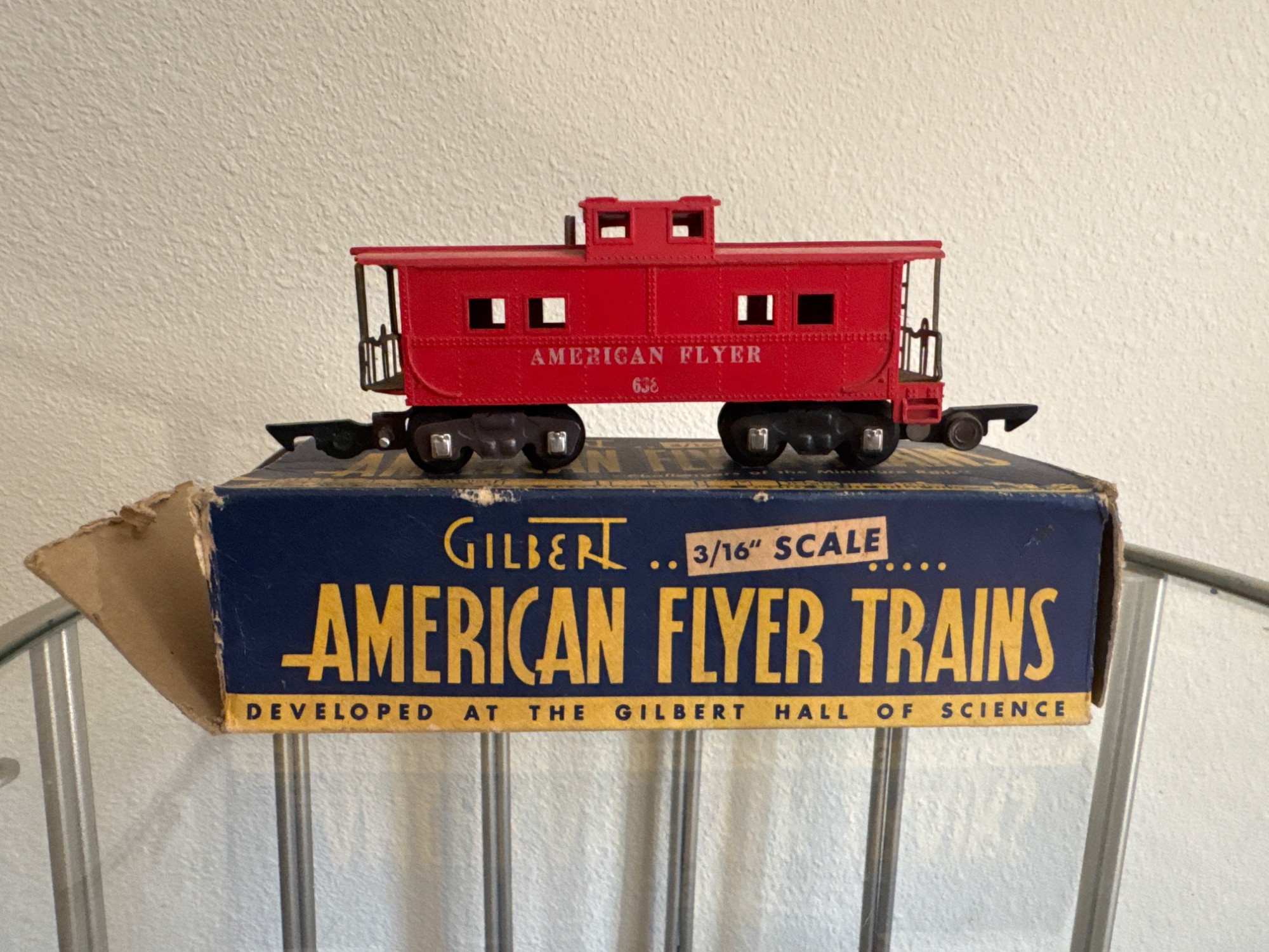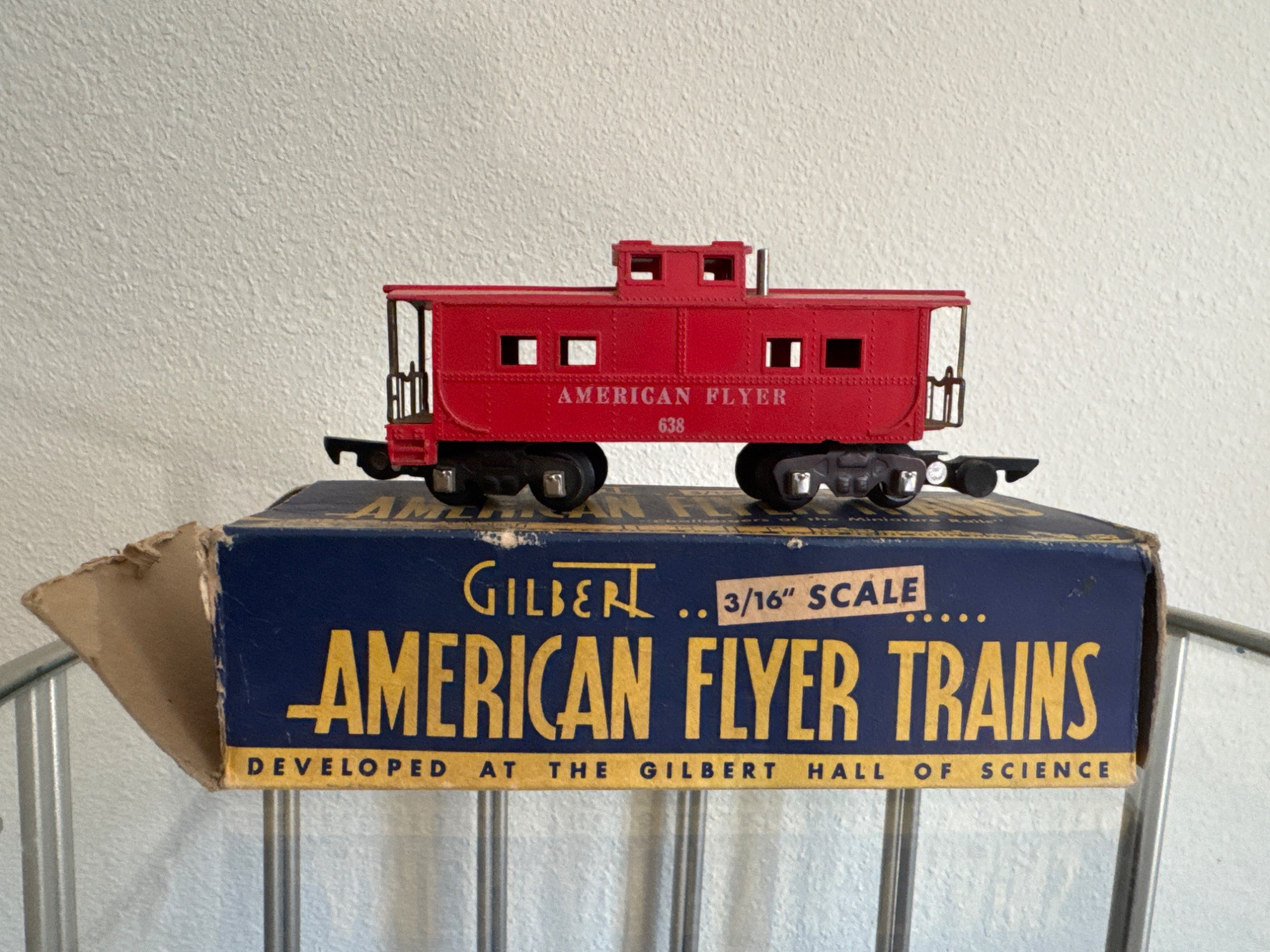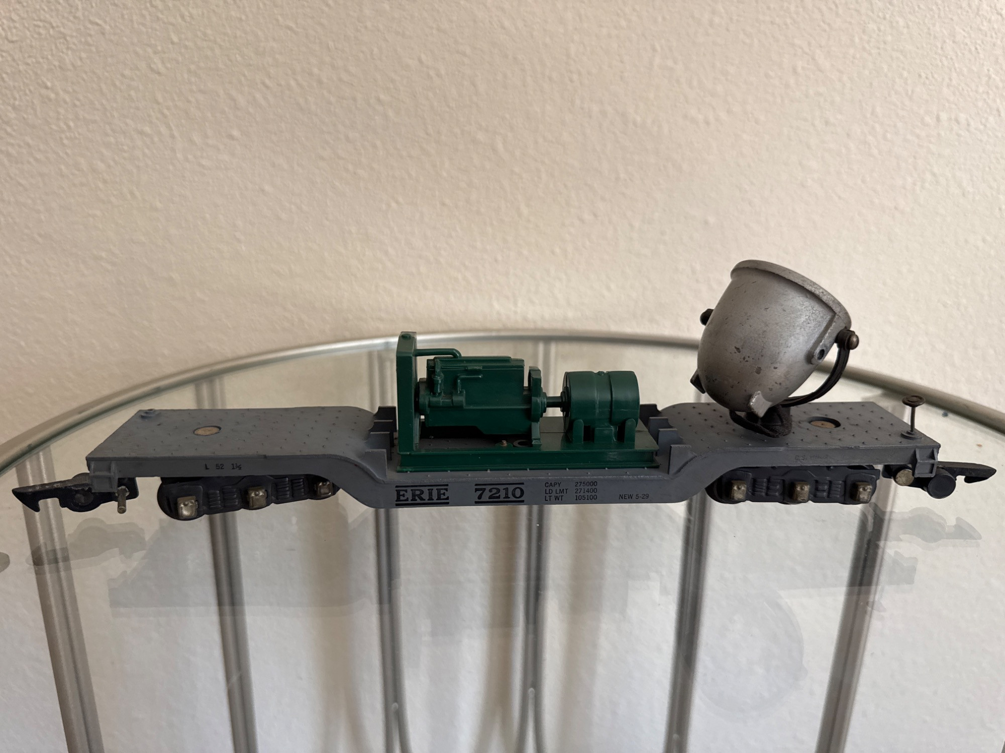 The American Flyer 638 Caboose is a classic S-Gauge train car produced by A.C. Gilbert Co. under the American Flyer brand, primarily during the 1940s and 1950s. The American Flyer 7210 Erie Searchlight is a vintage S-Gauge freight car produced under the American Flyer brand, likely in the postwar era by A.C. Gilbert Co. The American Flyer 644 Crane Car is a classic S-Gauge accessory produced by A.C. Gilbert Co. under the American Flyer brand. It is a highly sought-after piece for collectors and model railroaders.