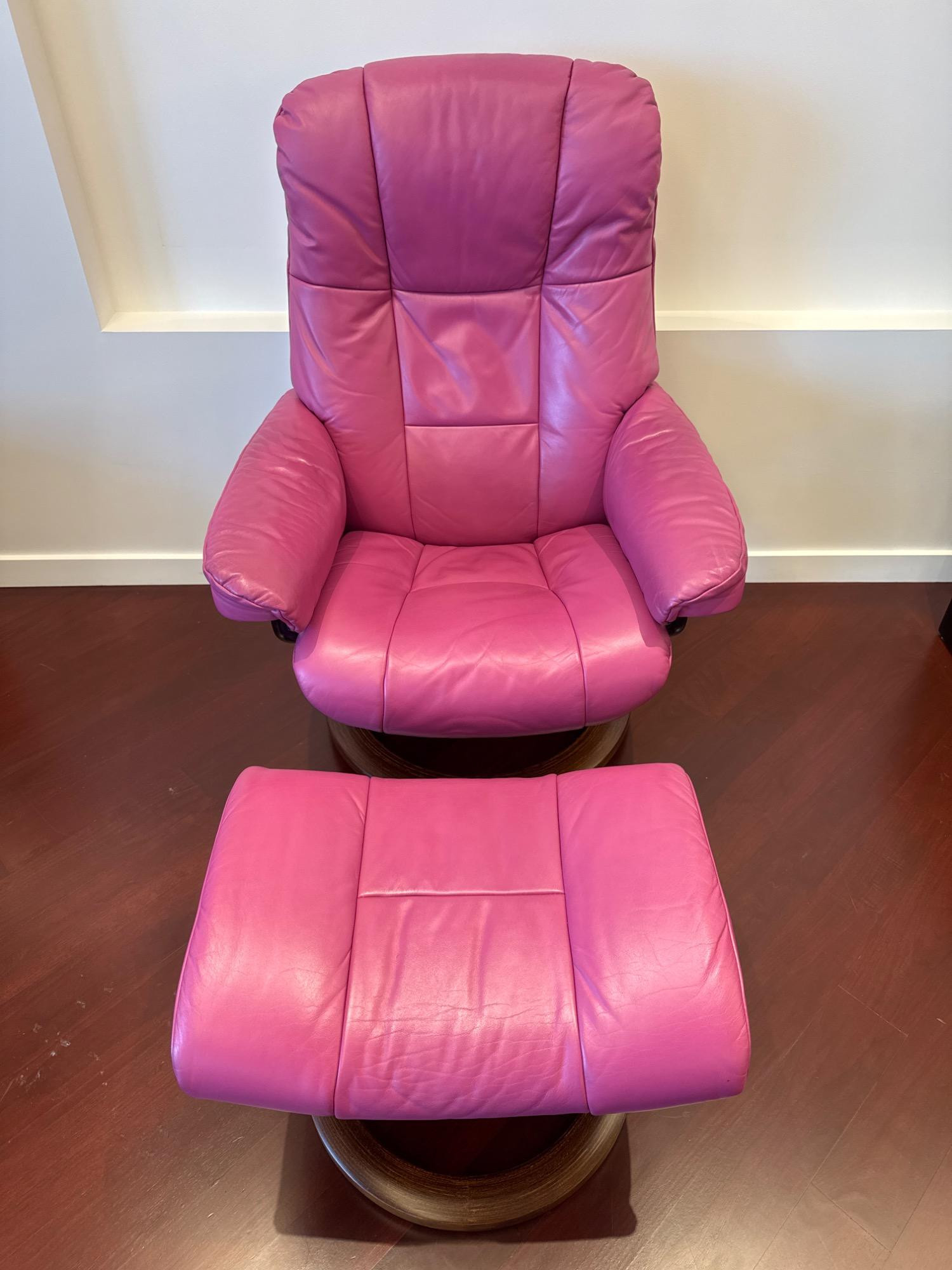 Lot # 36 - Lot #2 - Custom Pink Stressless Mayfair Classic Base w/ Ottoman