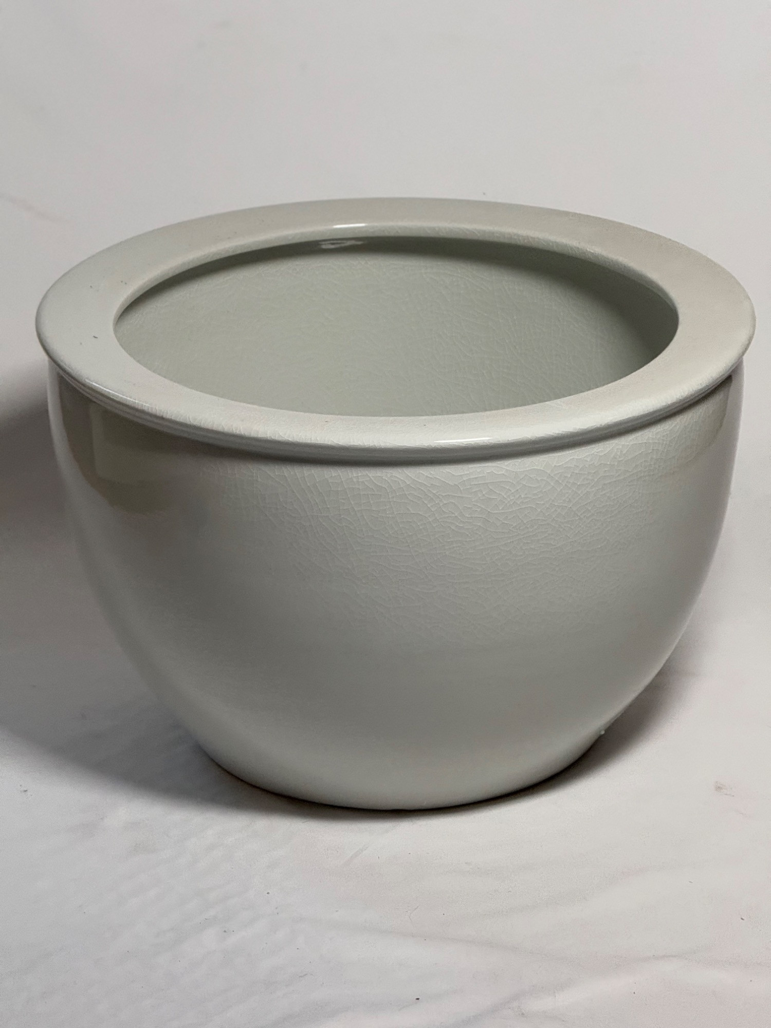 This elegant large white planter is a perfect blend of simplicity and sophistication. Its sleek design and smooth finish make it an ideal decorative piece for any home or office. The vase's generous size allows it to hold a variety of floral arrangements, adding a touch of elegance to any space. Its timeless design ensures it will complement both modern and traditional decor styles, making it a versatile addition to your collection. Materials: Ceramic. Measurement: 21" diameter x 13.5 Tall