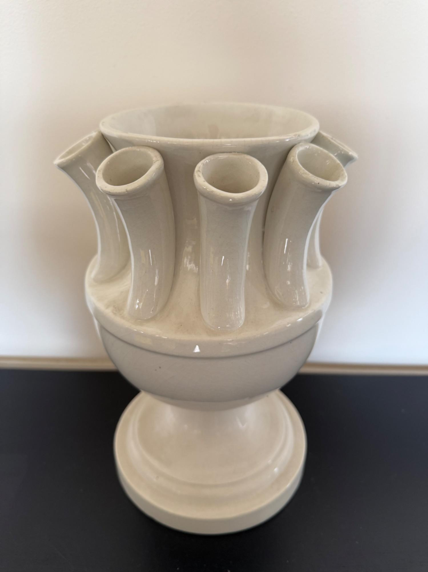 "Italian Tulip Vase" This Italian tulip vase features a classic design that highlights its elegant form. The vase is crafted to hold tulip arrangements beautifully, making it a functional and stylish addition to any space. Its timeless design ensures it complements various decor styles, from traditional to contemporary. Materials: Ceramic. 602 Made in Italy. See Pictures For Markings Measurement: 11.5" Tall x 7" W