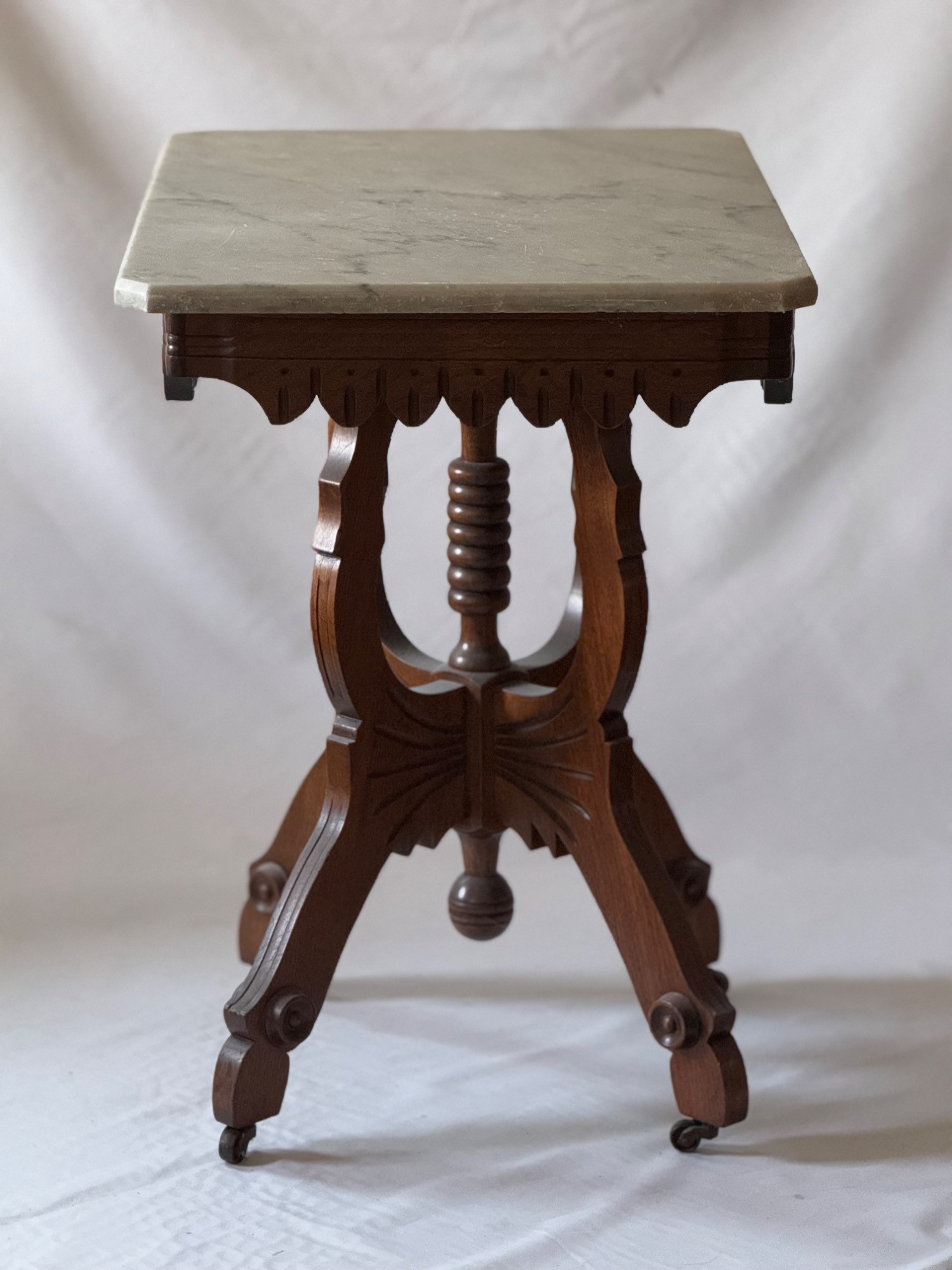 Lot # 21 - Marble Top Eastside Style Side Table-Hand Carved Details