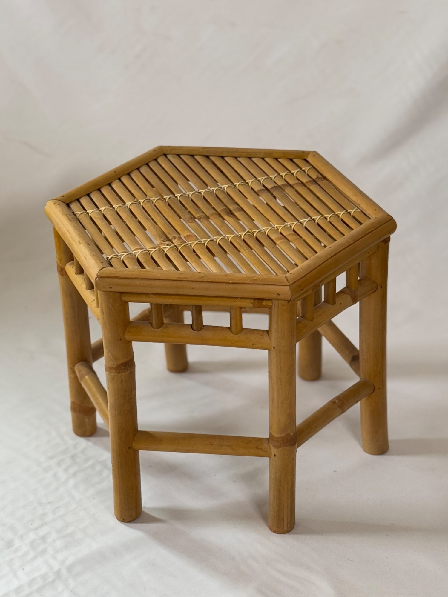 Add a touch of natural charm to your home with this beautifully handcrafted bamboo side table. Featuring a unique hexagonal shape, this vintage-inspired piece is sturdy yet lightweight, perfect as a side table or plant stand. Dimensions: 16” (Height) x 19” (Width) ⚠ Please Note: This item is not designed to support heavy weight. It is intended for decorative use only.